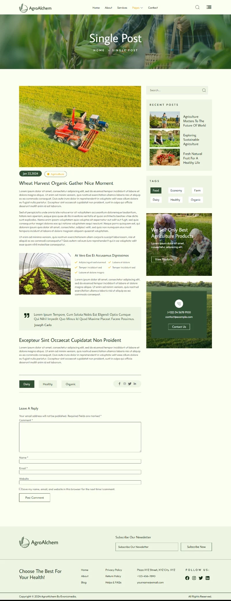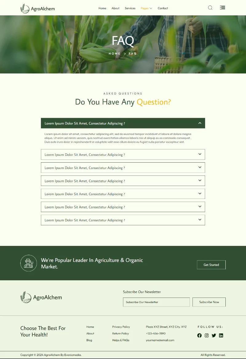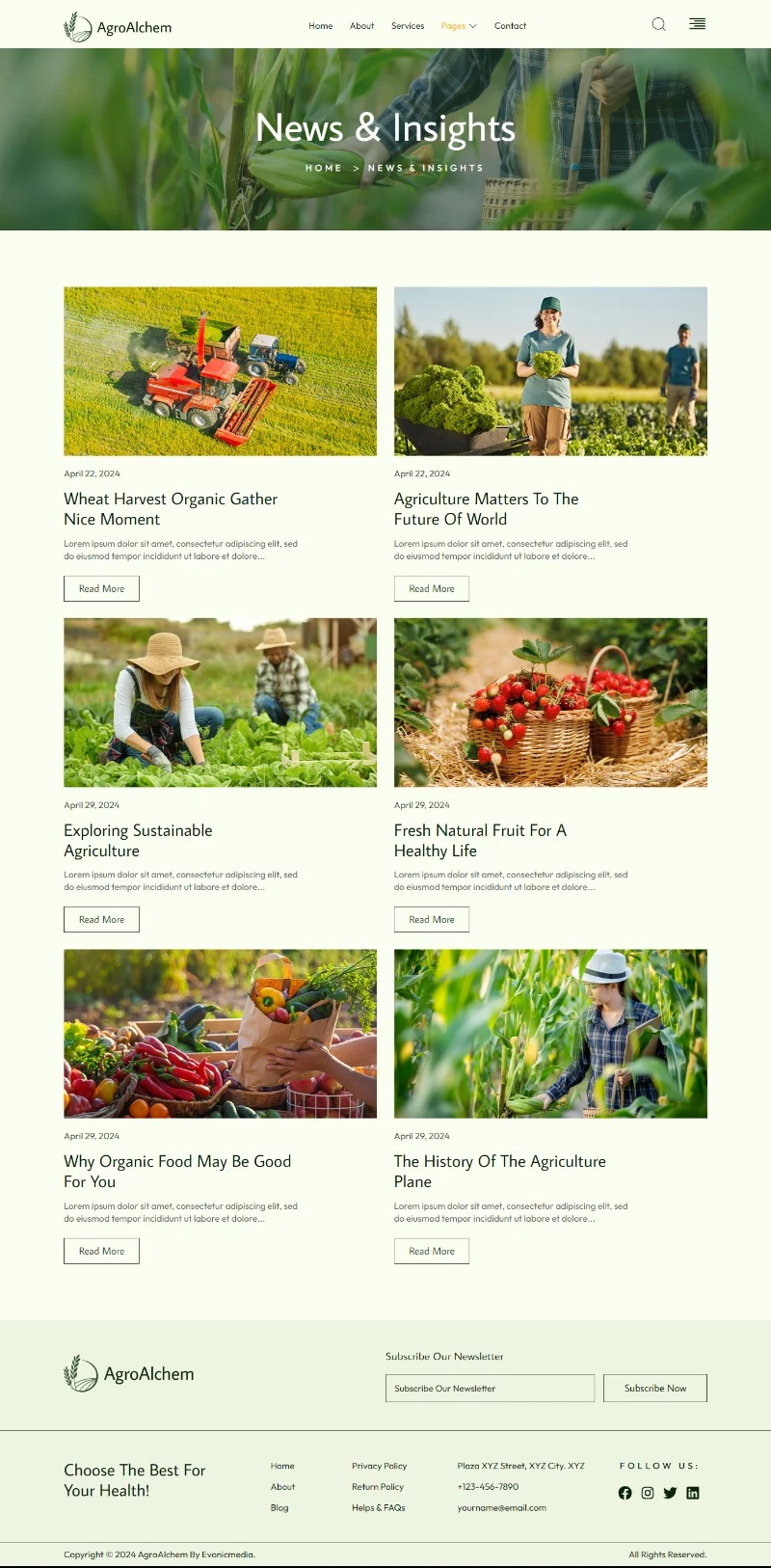 کیت قالب المنتور کشاورزی AgroAlchem با دقت برای حوزه کشاورزی طراحی شده و یک وادی دیجیتالی برای ماجراجوییهای کشاورزی شما ایجاد میکند. با استفاده از این کیت، یک چشمانداز دیجیتال بسازید که غنای مزرعههایتان را منعکس کند و با ناوبری روان، تصاویر جذاب و ویژگیهای قابل تنظیم، محصولات، خدمات و تخصص شما را به نمایش بگذارد. از قدرت طراحی مدرن برای ایجاد ارتباطات، رشد برند و دستیابی به موفقیت آنلاین استفاده کنید. با کیت قالب المنتور کشاورزی AgroAlchem، ترکیب کشاورزی و فناوری را تجربه کنید، جایی که رؤیاهای دیجیتالی شما به واقعیت میپیوندند.