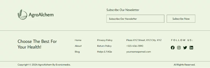 هدر، فوتر، فرم تماس، فرم خبرنامه