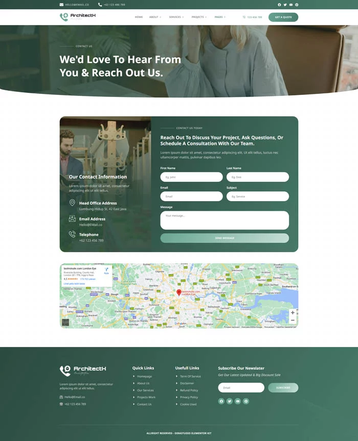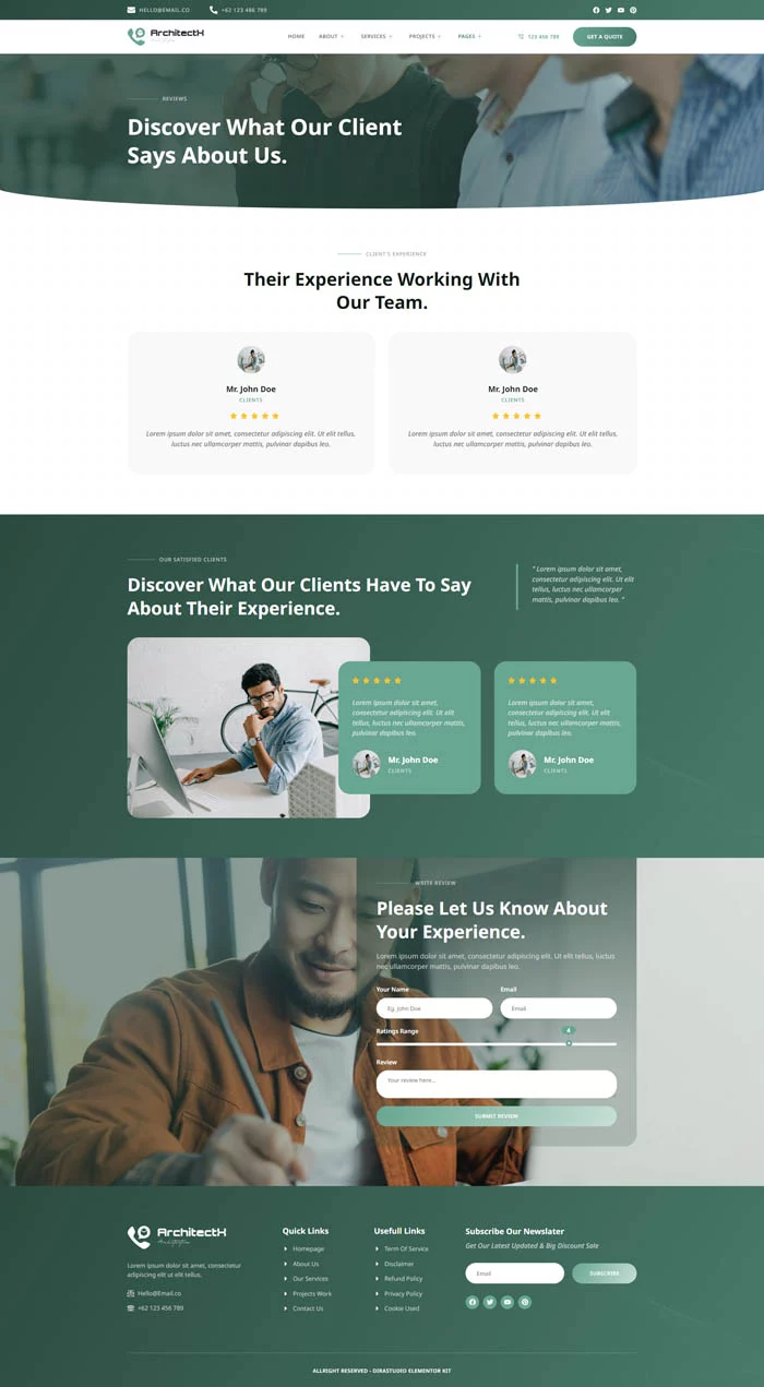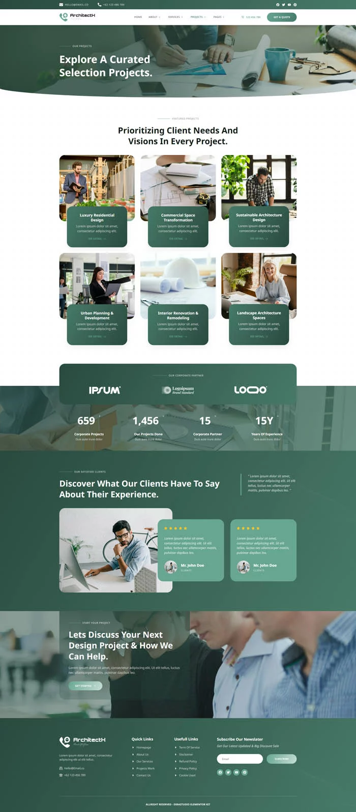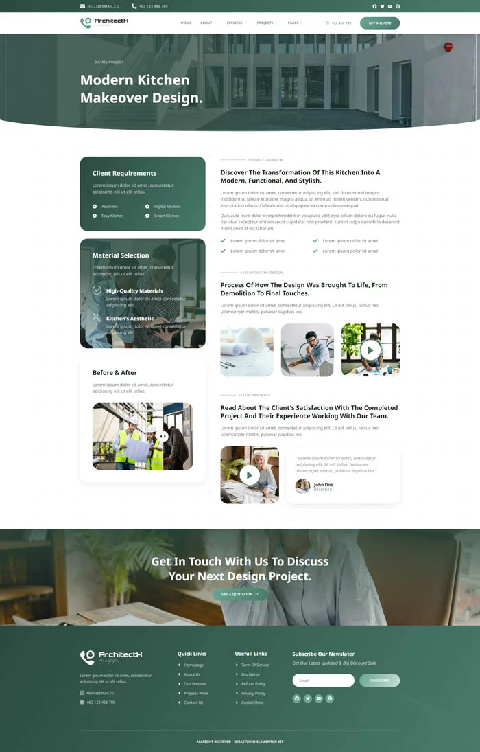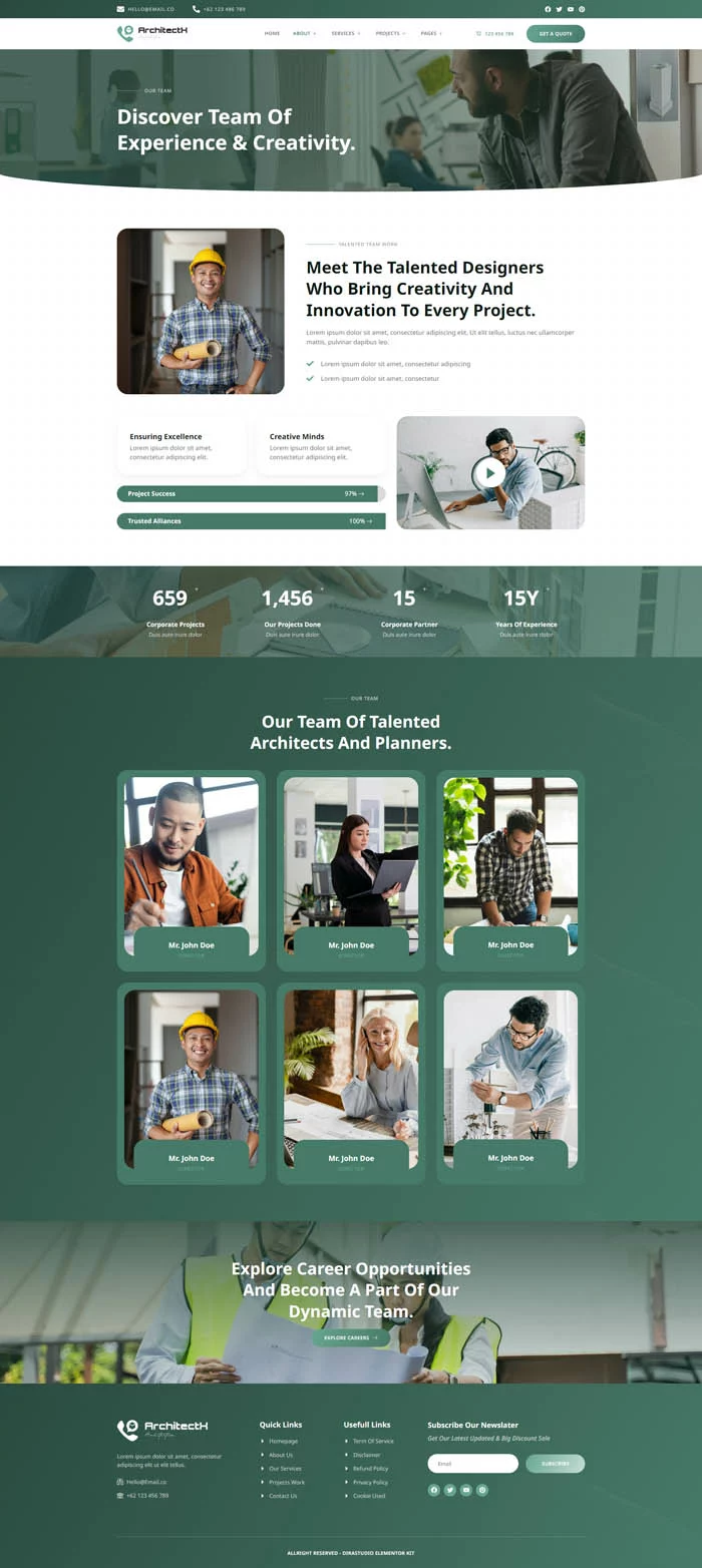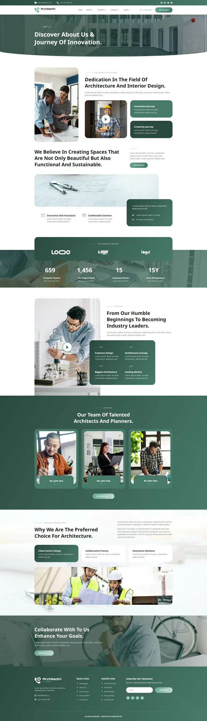 کیت قالب المنتور معماری و طراحی داخلی Architectx برای ساخت سریع و آسان وبسایتهای مربوط به معماری و طراحی داخلی با استفاده از افزونه Elementor Page Builder طراحی شده است. این کیت شامل مجموعهای از صفحات آماده است که بهطور خاص برای نمایش پروژههای معماری و طراحی داخلی، خدمات شما و جذب مشتریان طراحی شدهاند.