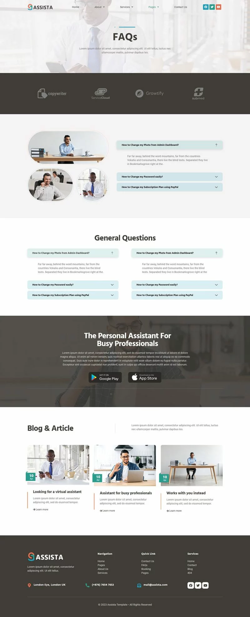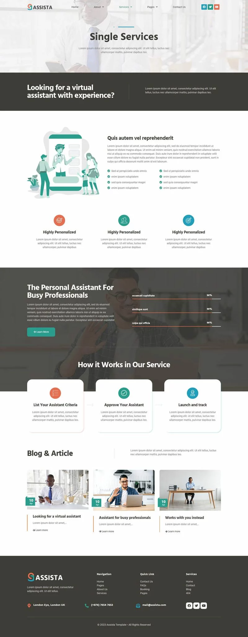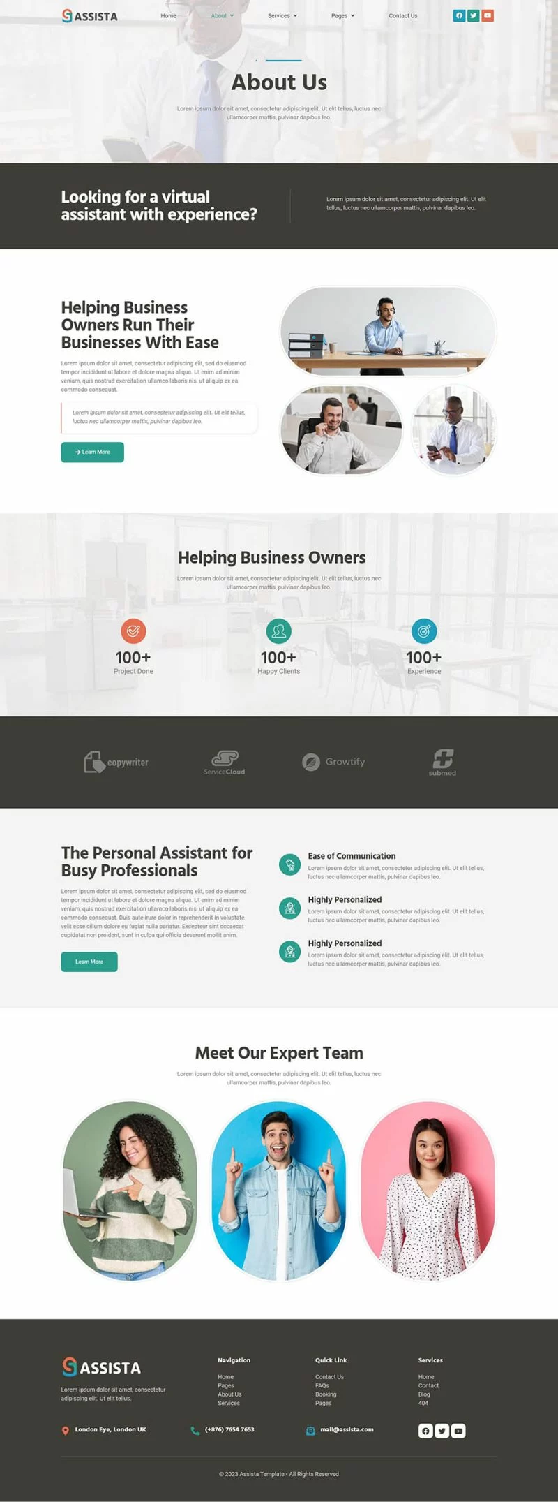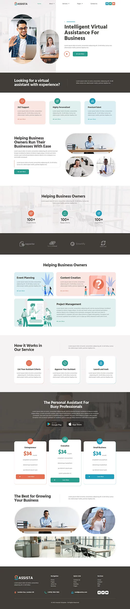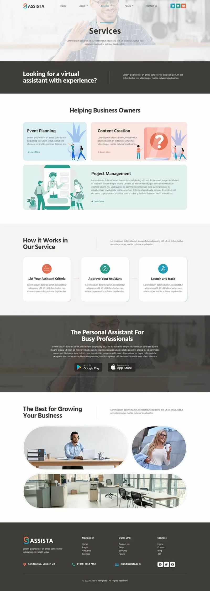 کیت قالب المنتور خدمات دستیار مجازی Assista دارای طراحی حرفهای و تمیز بوده و از عناصر رایگان استفاده میکند، بنابراین نگران امتحان کردن این قالب نباشید.