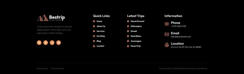 کیت قالب المنتور کوهنوردی Bestrip دارای طراحی مدرن و منحصربهفرد با یک چیدمان 100٪ کاملاً واکنشگرا است. نصب آن بسیار آسان بوده و سفارشیسازی آن نیز بهخاطر استفاده از المنتور بسیار ساده است؛ بنابراین نیازی به نوشتن حتی یک خط کدنویسی نیست!
