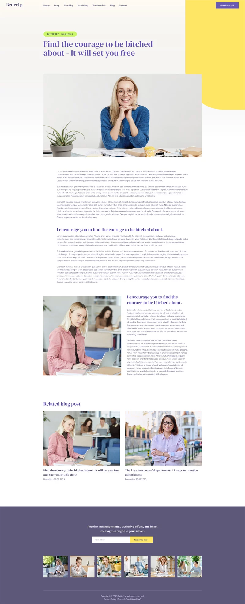 کیت قالب المنتور مربیگری کسب و کار BetterUp برای ساخت سریع و آسان وبسایت وردپرس برای مربیان زندگی، سخنرانان، منتورهای کسب و کار، مربیان شخصی، مشاوران شغلی و تسهیلکنندگان کارگاه با استفاده از افزونه سازنده صفحه المنتور طراحی شده است. این کیت دارای سیستم طراحی کاملاً سازگار و تصاویر حرفهای دستچین شده است تا شما یک شروع برندینگ و پریمیوم برای پروژه بعدی خود داشته باشید. بهینهسازی شده برای استفاده با تم رایگان Hello Elementor، این کیت دقیق و سریعبارگذاری است.