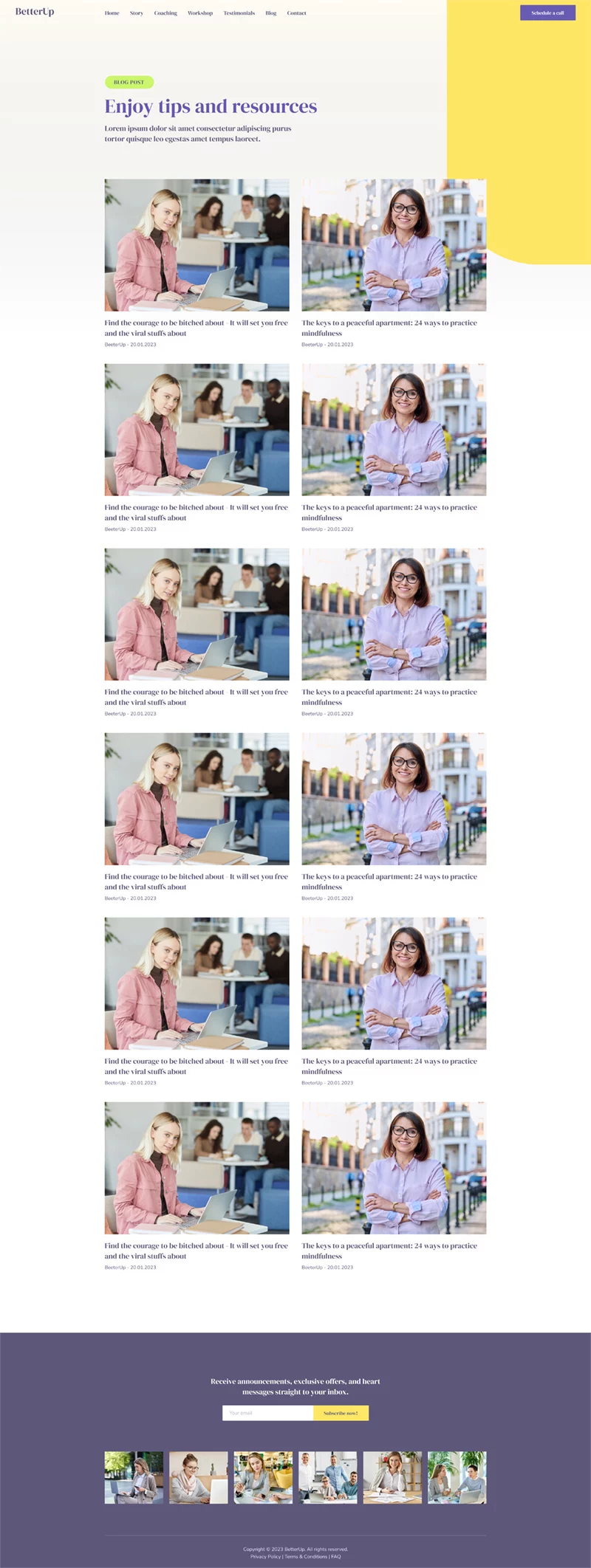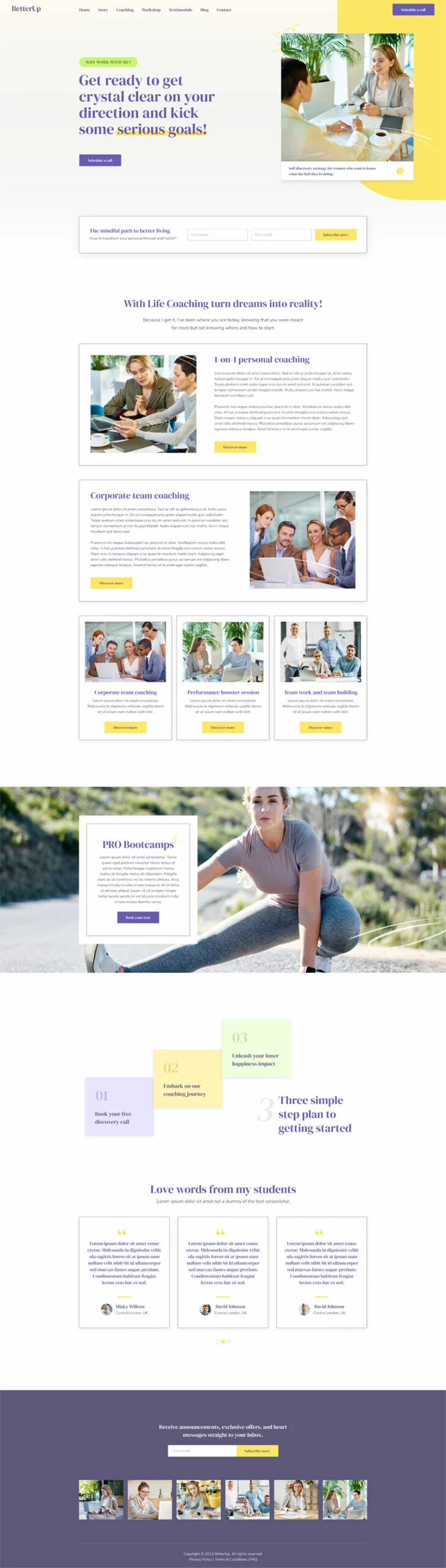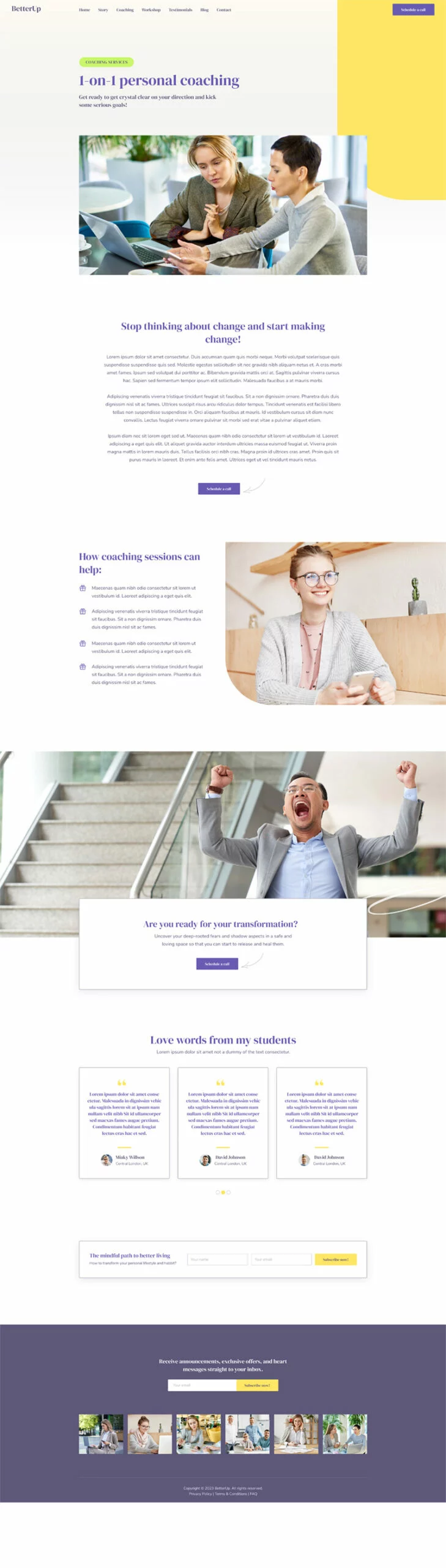 ویژگیهای کیت قالب المنتور مربیگری کسب و کار BetterUp