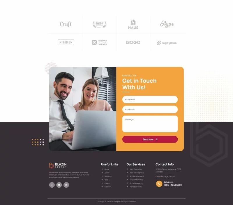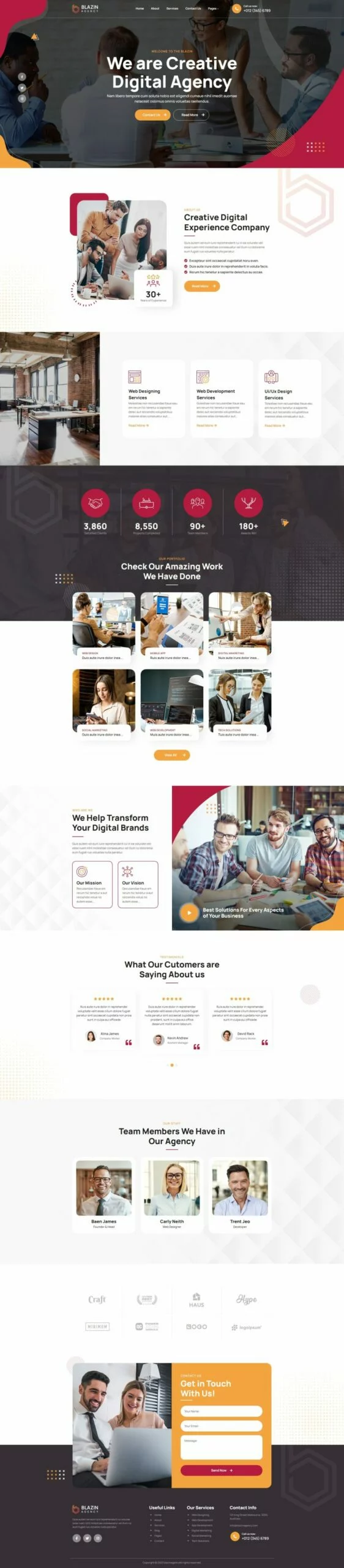 کیت قالب المنتور آژانس دیجیتال خلاق Blazin با طراحی مدرن و حرفهای به شما امکان میدهد تا وبسایتی زیبا و کاربرپسند برای آژانس دیجیتال خود ایجاد کنید. این کیت به شما کمک میکند تا خدمات و نمونه کارهای خود را به صورت آنلاین به بهترین شکل ممکن به نمایش بگذارید.