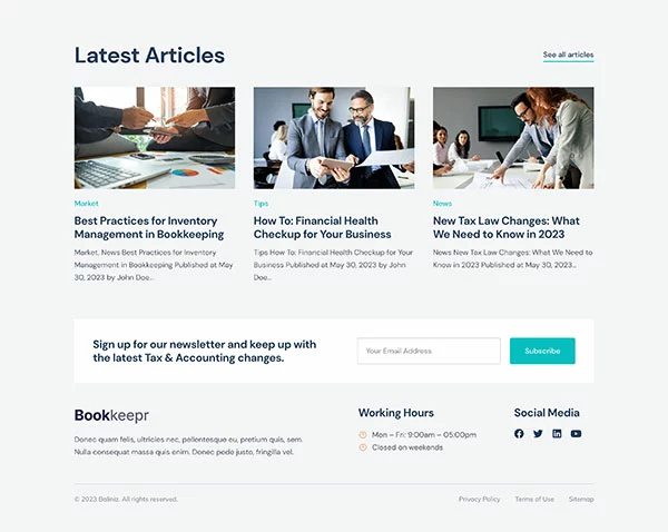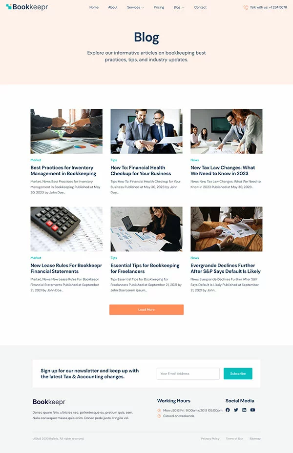 کیت قالب المنتور خدمات حسابداری و دفترداری BookKeepr شامل بیش از 15 قالب به دقت طراحی شده است که به شما امکان میدهد یک وبسایت حرفهای بسازید که کاملاً بازتابدهنده برند شما باشد و تخصص شما را به نمایش بگذارد. از برجسته کردن خدمات حسابداری خود گرفته تا تأکید بر دانش صنعت، BookKeepr ابزار کامل را برای جذب مشتریان جدید و ارتقاء کسبوکار شما ارائه میدهد. بیشتر از این صبر نکنید با BookKeepr امروز شروع کنید و پتانسیل کامل خدمات حسابداری خود را باز کنید.