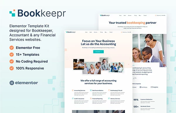 ویژگیهای کیت قالب المنتور خدمات حسابداری و دفترداری BookKeepr