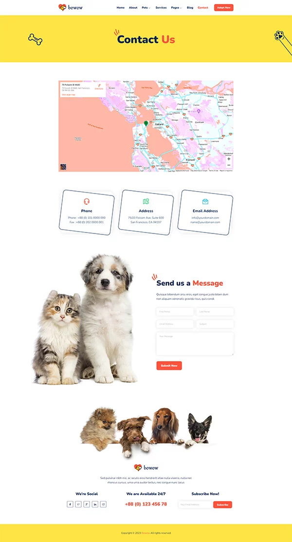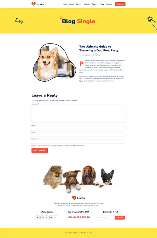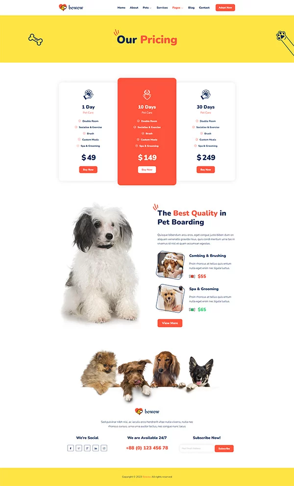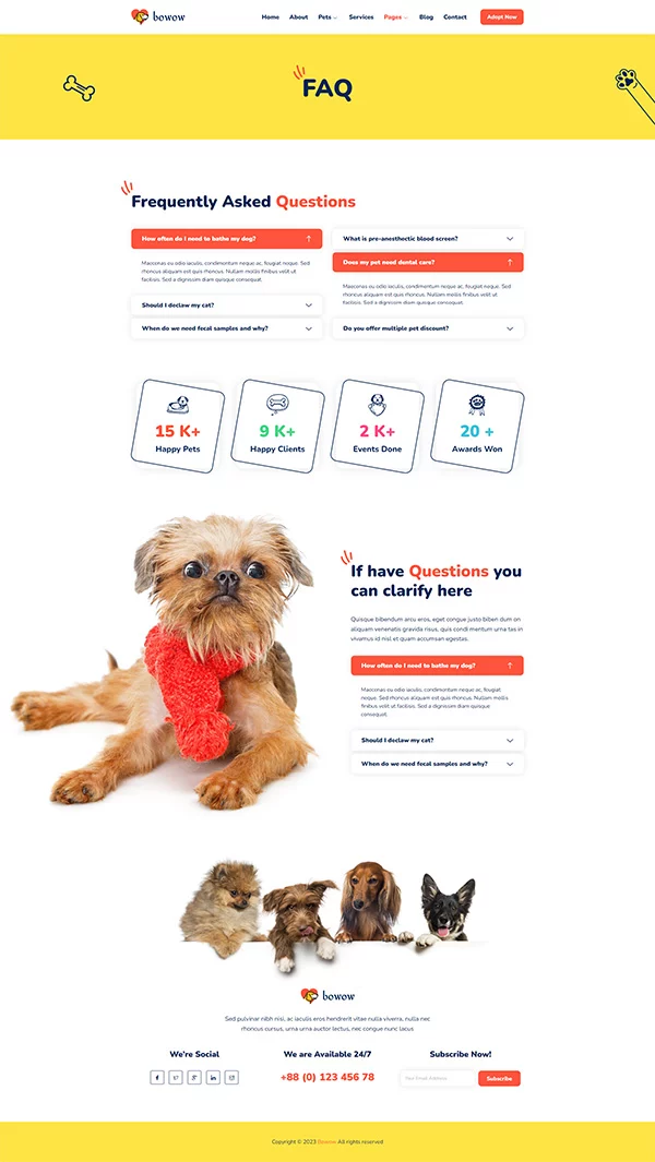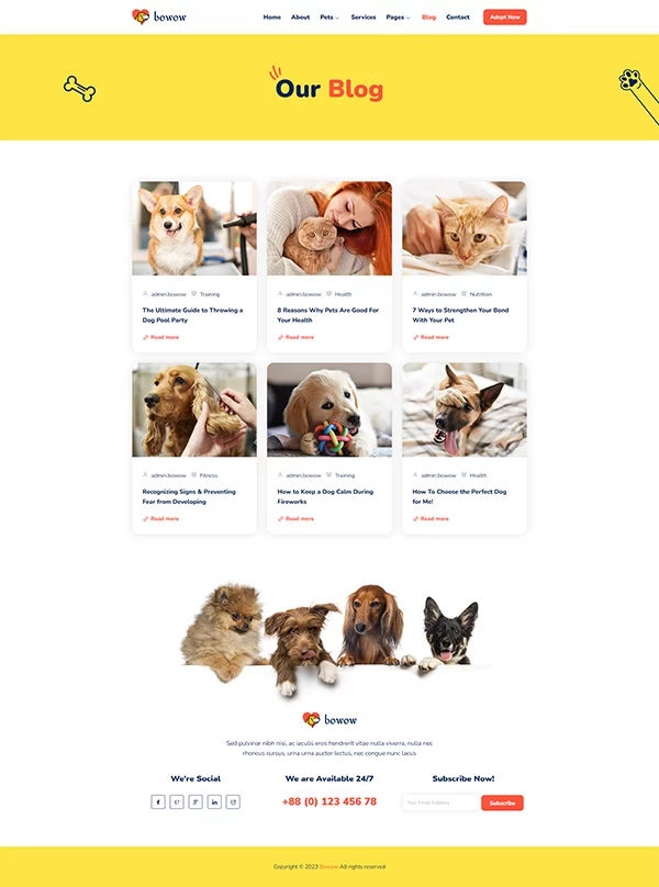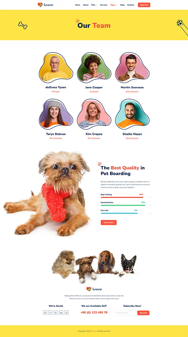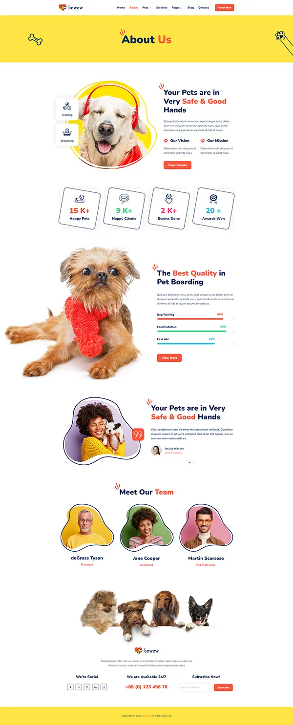 کیت قالب المنتور خدمات مراقبت از حیوانات خانگی Bowow بهترین انتخاب برای ساخت وبسایت خدمات مراقبت از حیوانات خانگی است. این قالب بهطور ویژه برای مراقبت از حیوانات، آرایش حیوانات، نگهداری حیوانات، خدمات دامپزشکی یا هر خدمات دیگری که مرتبط با حیوانات خانگی باشد، توسعه یافته است.