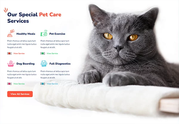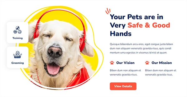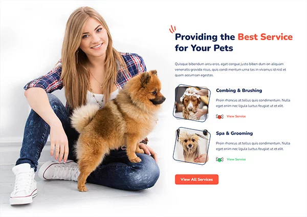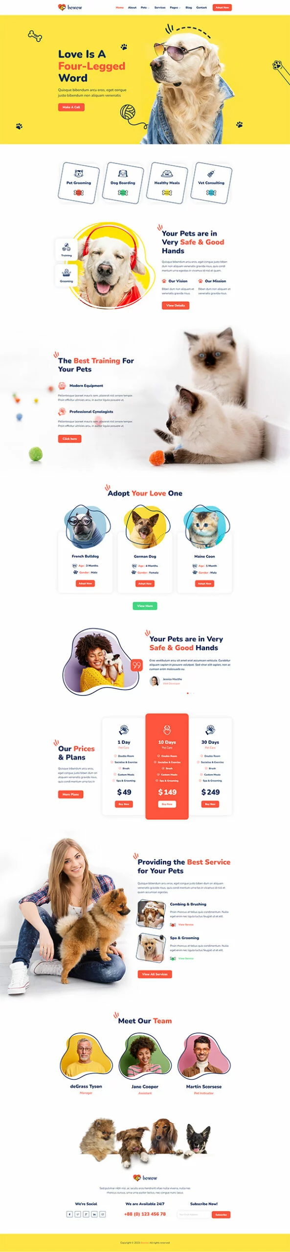با کمک این کیت قالب (حدود 29 بخش) میتوانید وبسایتهایی برای آرایشگران حیوانات، نگهدارندگان حیوانات، گردانندگان سگ، دامپزشکان، مراکز آموزش حیوانات و مراکز نگهداری حیوانات بسازید.