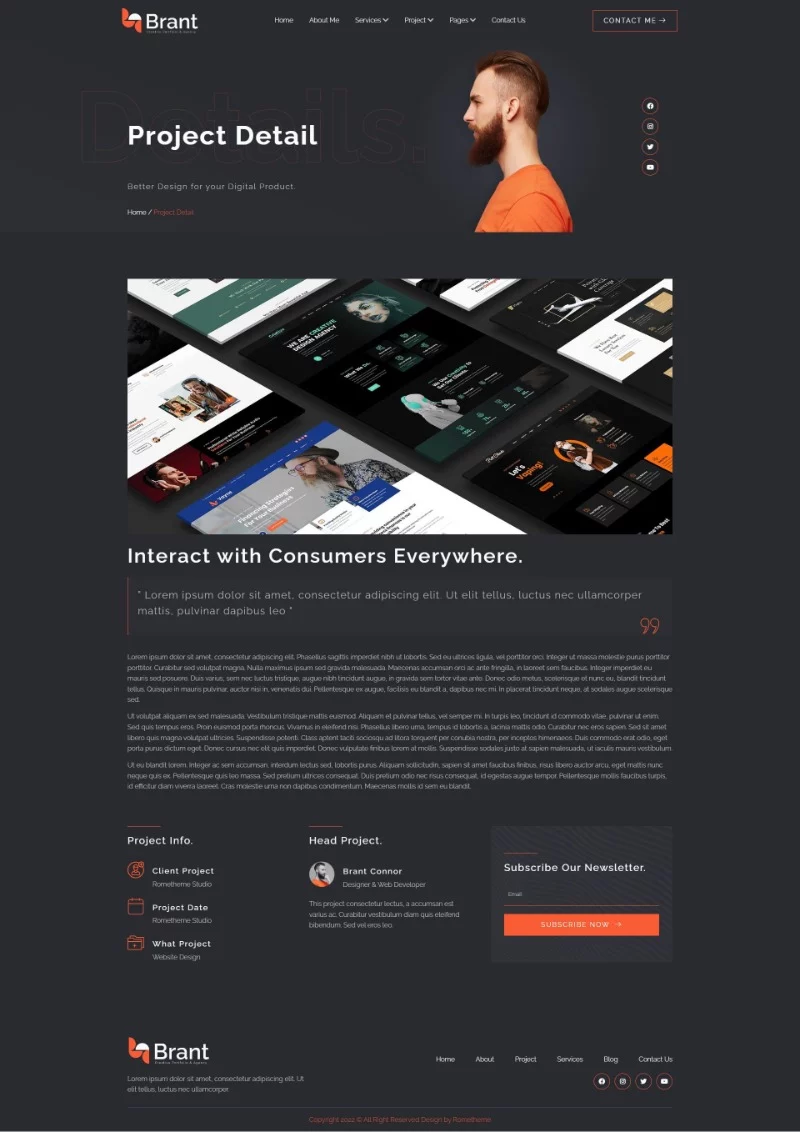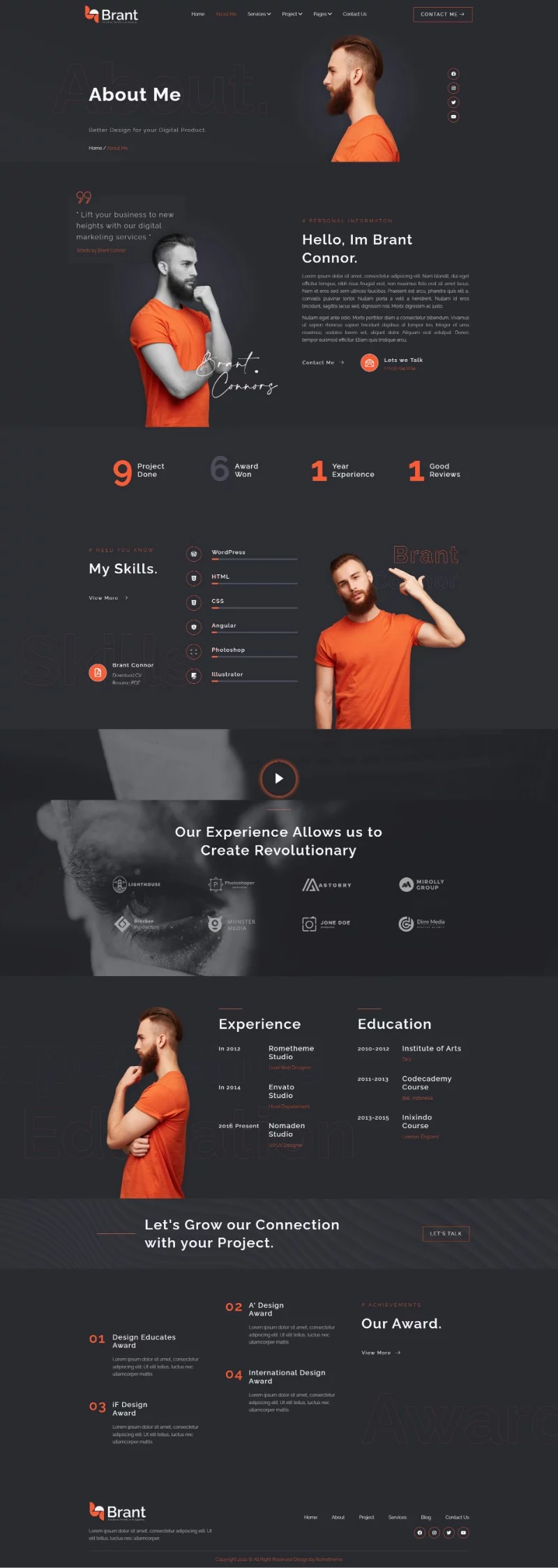 کیت قالب المنتور نمونه کار و رزومه Brant شامل بیش از 14 قالب از پیش ساخته شده با طراحی تمیز، واکنشگرا و قابل تنظیم است. این کیت میتواند برای نمونه کارها، آژانسها و کسبوکارهای دیجیتال استفاده شود. کیت قالب المنتور نمونه کار و رزومه Brant همچنین شامل قالبهایی برای نمایش پروژههای خلاقانه، زیبا و شگفتانگیز شما است.