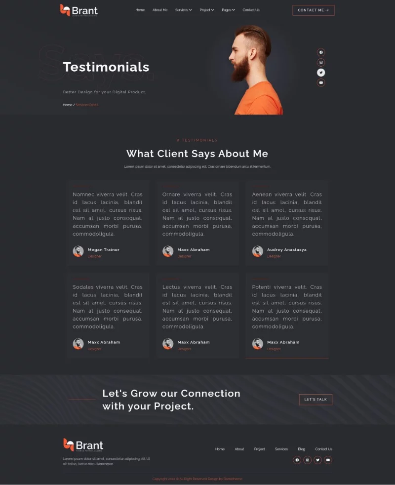 ویژگیهای کیت قالب المنتور نمونه کار و رزومه Brant