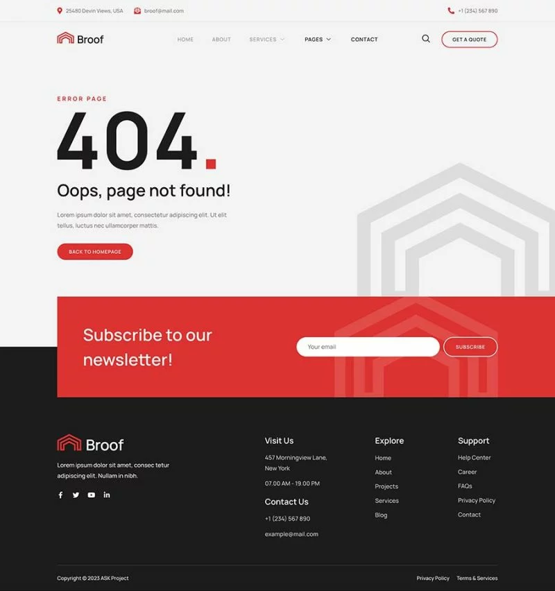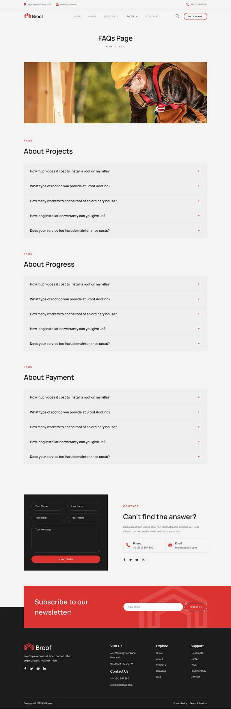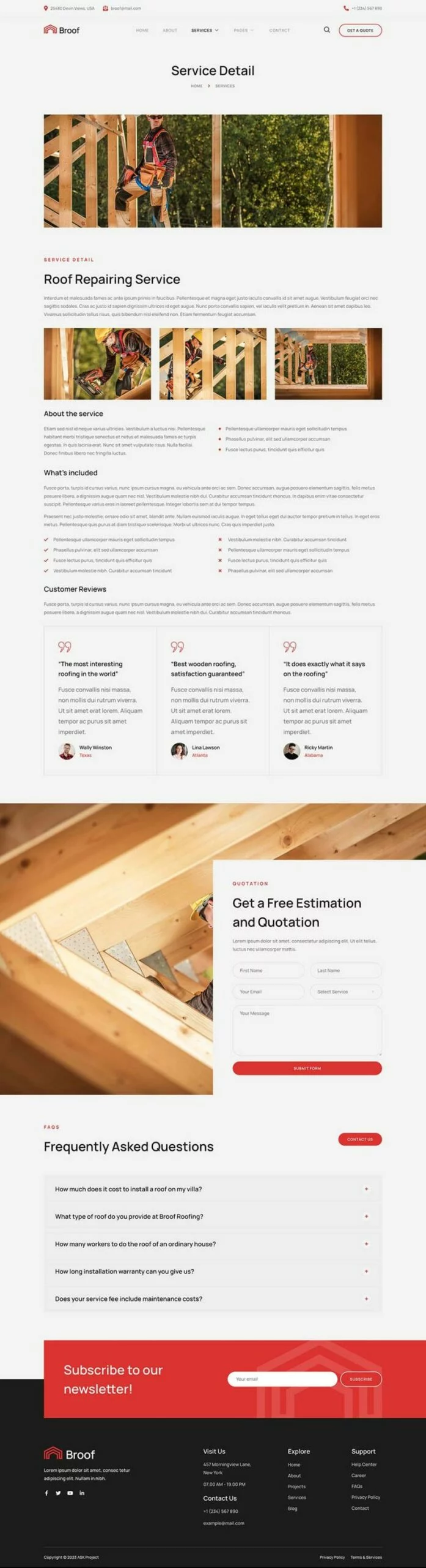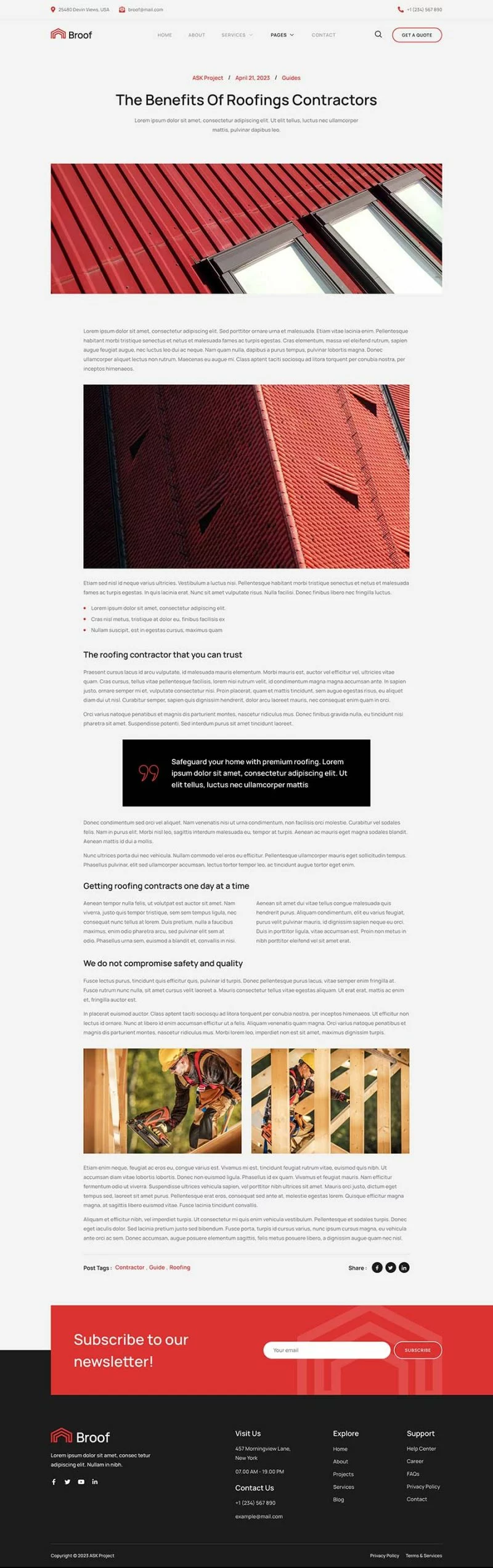 کیت قالب المنتور خدمات سقف سازی Broof به شما این امکان را میدهد که یک وبسایت حرفهای و زیبا برای خدمات سقفسازی خود ایجاد کنید. با استفاده از افزونههای مورد نیاز، شما میتوانید به راحتی صفحات وبسایت خود را طراحی کنید و آنها را به صورت سفارشی و کاربرپسند بسازید. این قالب با طراحی مدرن و تمیز خود باعث میشود که وبسایت شما در هر دستگاهی به خوبی نمایش داده شود و تجربه کاربری بهتری را برای بازدیدکنندگان فراهم کند.
