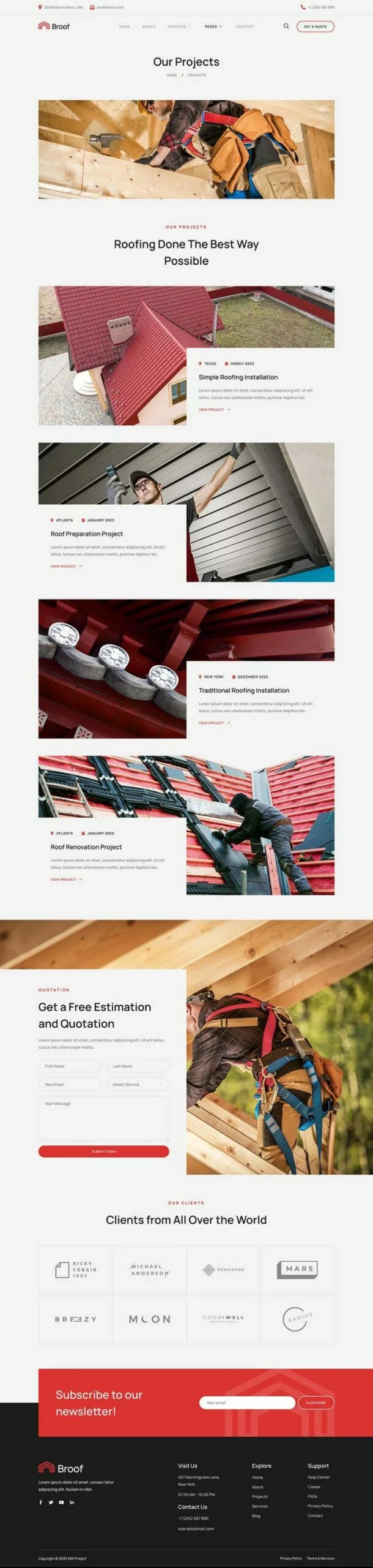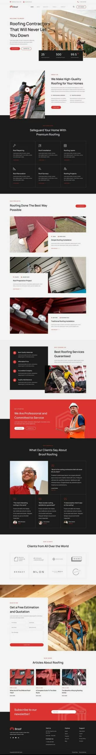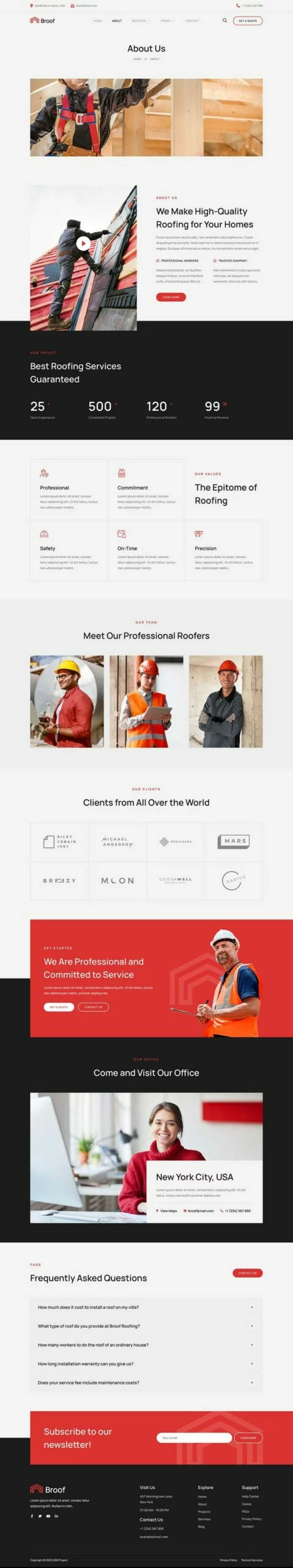 کیت قالب المنتور Broof برای خدمات سقفسازی مانند تعمیر سقف، خدمات سقف، پوشش سقف، بازرسی سقف، نوسازی سقف و غیره طراحی شده است. Broof دارای طراحی ساده، مدرن و تمیز با طرحبندی 100٪ پاسخگو است و بسیار آسان برای سفارشیسازی بوده و میتواند توسط هر کسی بدون نیاز به درک کدنویسی استفاده شود. این کیت قالب شامل 13 صفحه و 19 قالب آماده است که شما میتوانید به راحتی وبسایت حرفهای خود را تنها با چند کلیک ایجاد کنید.