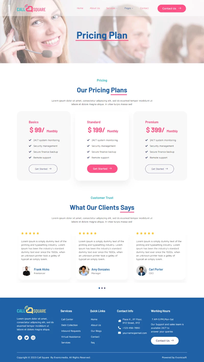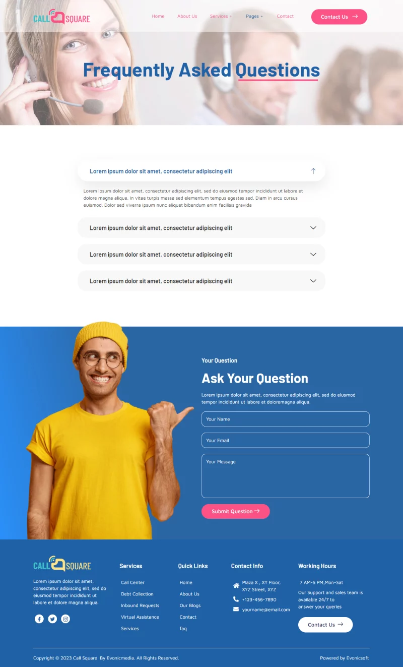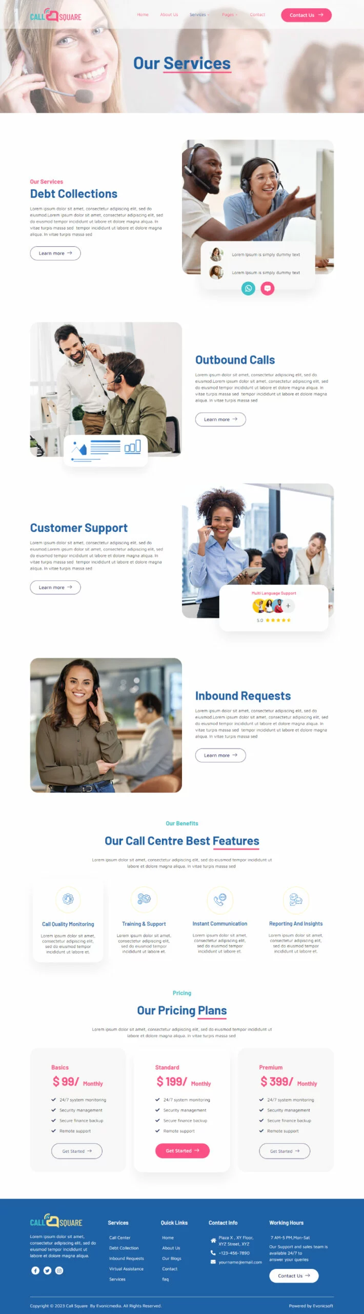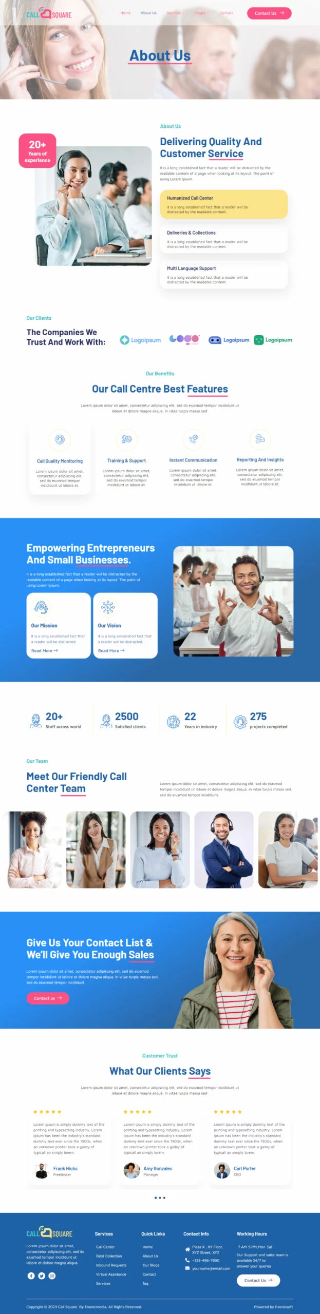 کیت قالب المنتور مرکز تماس و شرکت پشتیبانی Call Square به طور انحصاری برای مراکز تماس، خدمات پشتیبانی مشتری و شرکتهای مخابراتی طراحی شده است. با طراحی شیک و حرفهای، ویژگیهای کاربرپسند و گزینههای قدرتمند سفارشیسازی، Call Square به شما امکان میدهد تا یک وبسایت خیرهکننده ایجاد کنید که برتری عملیات مرکز تماس شما را منعکس کند.
