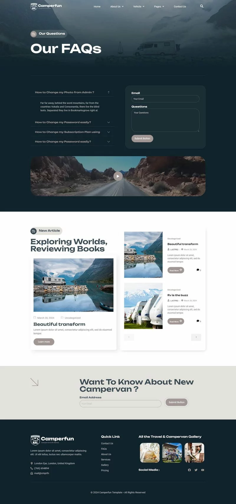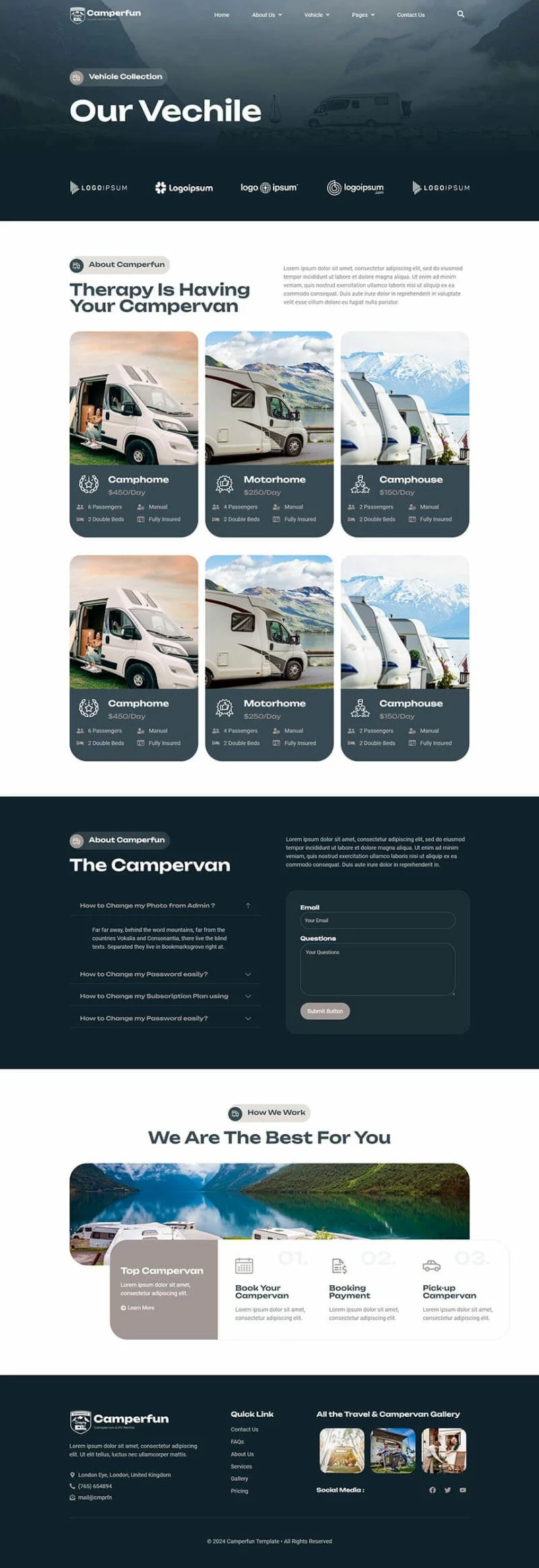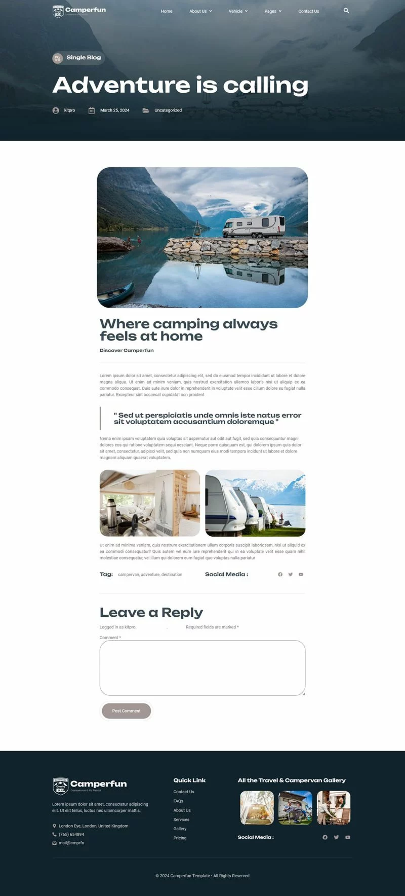 کیت قالب المنتور کمپینگ و اجاره Camperfun برای ساخت سریع و آسان وبسایتهای تجاری شما با استفاده از افزونه صفحهساز المنتور برای وردپرس است. این یک تم وردپرس نیست. کیتهای قالب حاوی محتوای صفحه برای سازنده صفحه المنتور هستند. این کیت برای استفاده با قالب رایگان Hello Elementor بهینه شده است اما میتواند با اکثر قالبهایی که از المنتور پشتیبانی میکنند، استفاده شود.