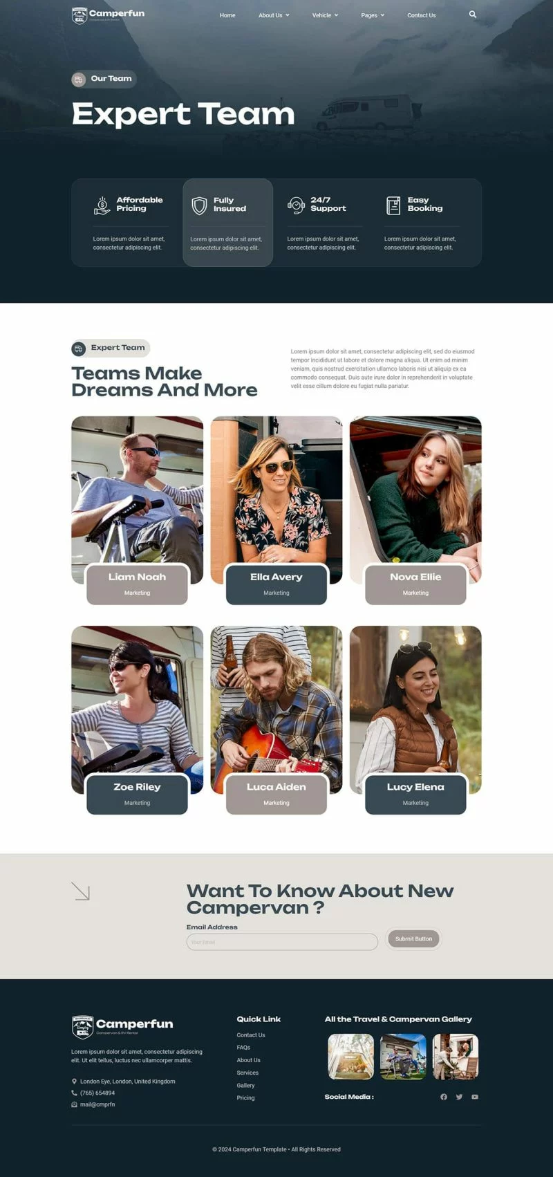 صفحه اصلی، درباره ما، تیم، وسایل نقلیه، جزئیات وسایل نقلیه، سوالات متداول، وبلاگ، پست تکی، صفحه 404، تماس با ما