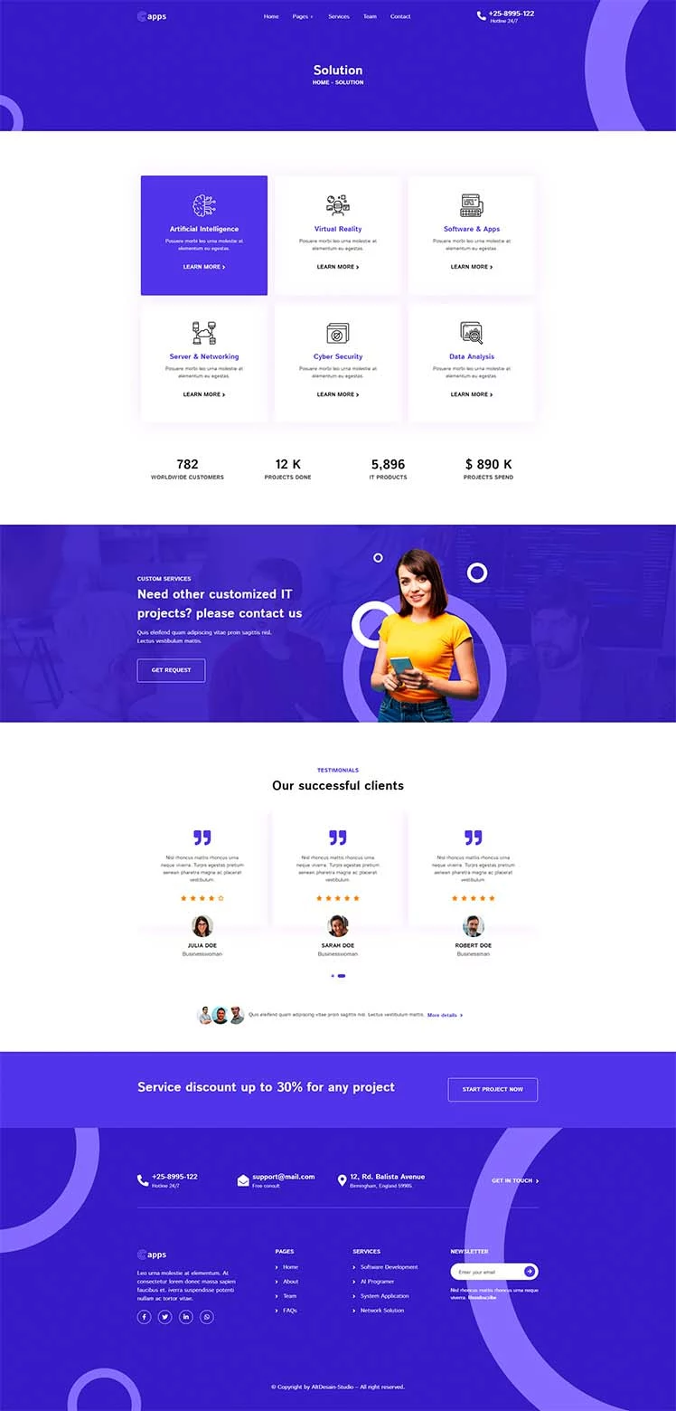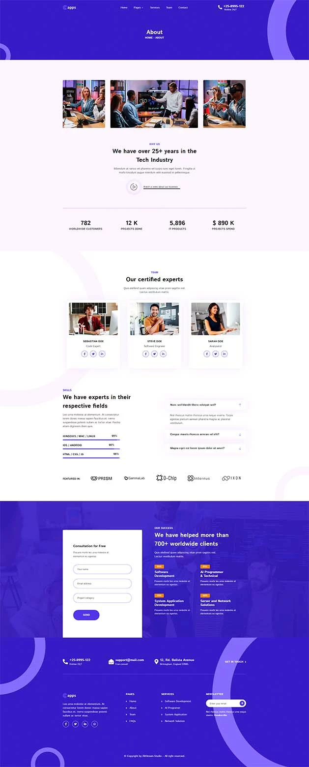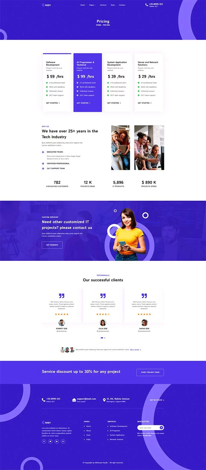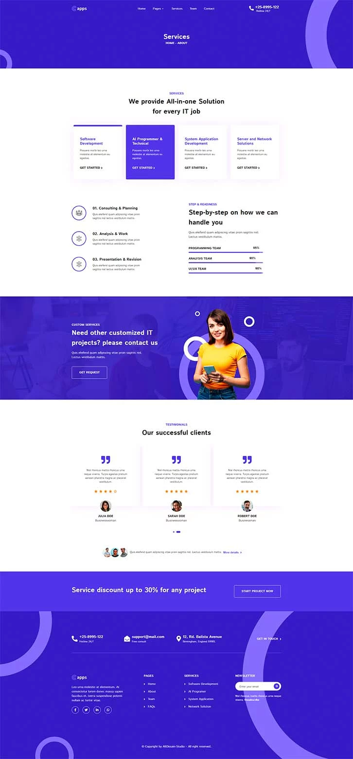 کیت قالب المنتور راهکار های فناوری اطلاعات Capps به طور کامل واکنشگرا، تمیز و قابل سفارشیسازی است. این قالب برای استفاده در کسبوکارهای مختلفی همچون شرکتهای IT، توسعهدهندگان نرمافزار، فریلنسرهای IT، کسبوکارهای IT و غیره مناسب است.