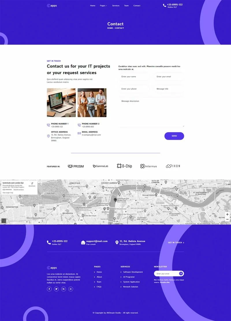 هدر، فوتر، فرم تماس، فرم مشاوره، فرم خبرنامه، فرم درخواست تماس، صفحه اصلی، درباره ما، خدمات، راهحلها، تیم، قیمتگذاری، تماس با ما، پروژهها، جزئیات پروژه، بلاگ، تکبلاگ