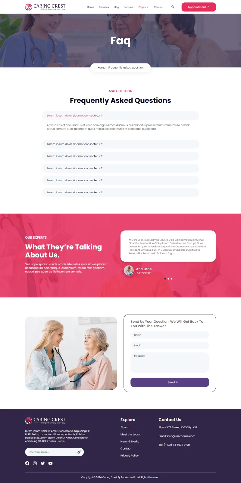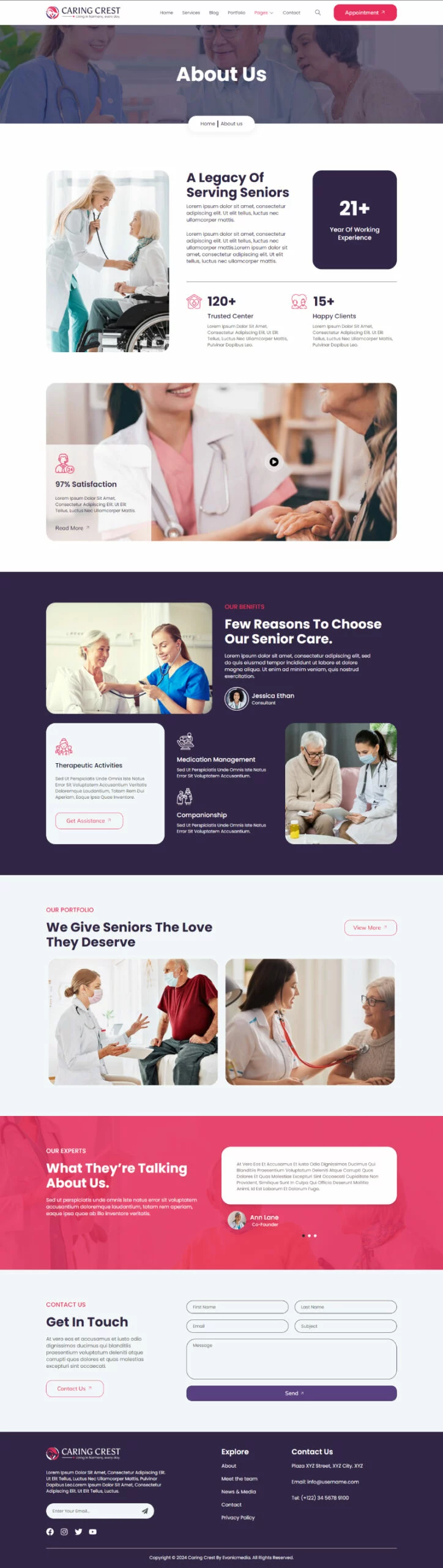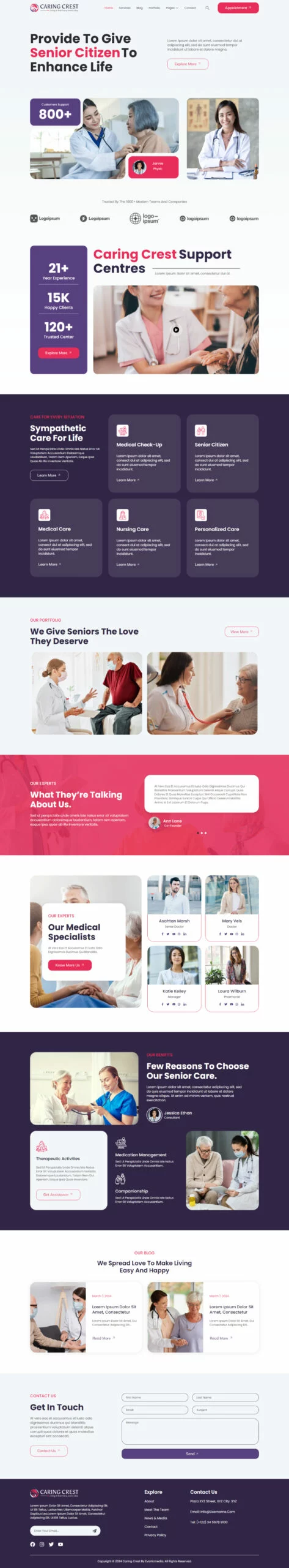 کیت قالب المنتور خدمات مراقبت سالمندان Caring Crest با توجه به نیازهای خاص خدمات مراقبت از سالمندان طراحیشده است. این کیت با استفاده از طراحی مدرن و قابلیتهای سفارشیسازی، به شما امکان میدهد تا وبسایتی حرفهای و دلنشین ایجاد کنید که تجربهای آرام و دوستانه را برای کاربران فراهم کند. این قالب شامل بخشها و صفحات متنوعی است که به شما کمک میکند تا خدمات، تیم و تجربیات خود را به نمایش بگذارید و به راحتی با بازدیدکنندگان وبسایت خود ارتباط برقرار کنید.
