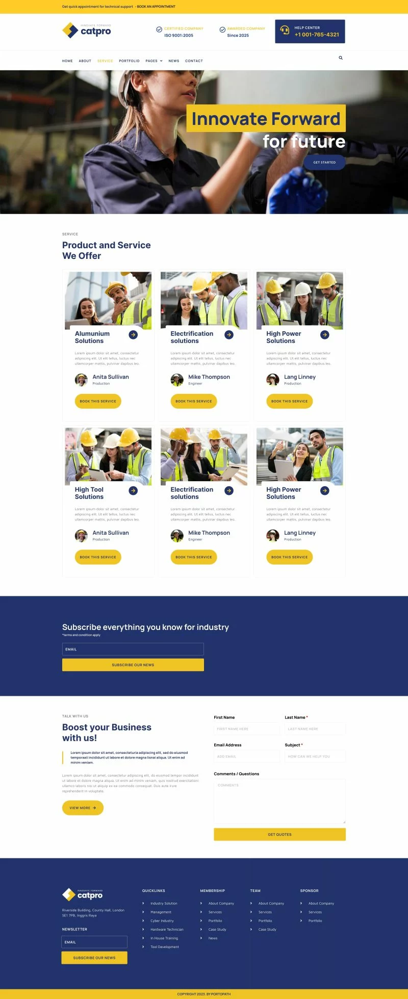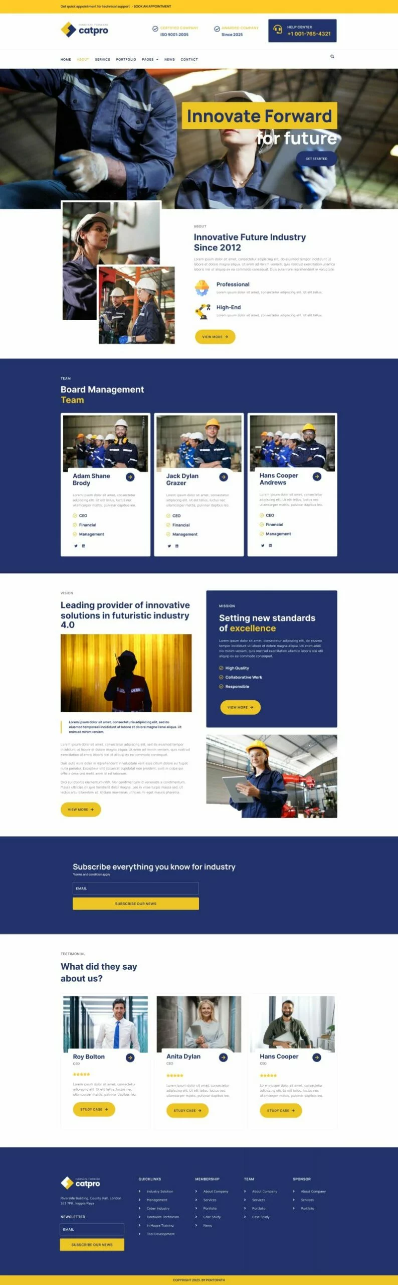 با استفاده از کیت قالب المنتور شرکتی Catpro، شما میتوانید به سرعت و به سادگی یک وبسایت حرفهای و واکنشگرا برای کسبوکار خود ایجاد کنید. این کیت با طراحی مدرن و حرفهای خود، تمامی ابزارهای لازم برای نمایش خدمات، نمونه کارها، تیم و تماس با ما را در اختیار شما قرار میدهد. با قابلیت سفارشیسازی آسان و بدون نیاز به کدنویسی، Catpro انتخابی عالی برای ایجاد یک حضور آنلاین حرفهای برای کسبوکار شما است.