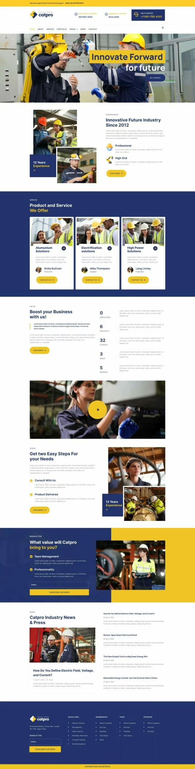 کیت قالب المنتور شرکتی Catpro شامل 8 صفحه اساسی است که برای نمایش کسبوکار شما به صورت آنلاین ایدهآل هستند. از یک صفحه اصلی جذاب گرفته تا یک نمونه کار جامع، صفحه درباره ما اطلاعرسانی و فرم تماس آسان، همه چیز را در اختیار شما قرار میدهد.