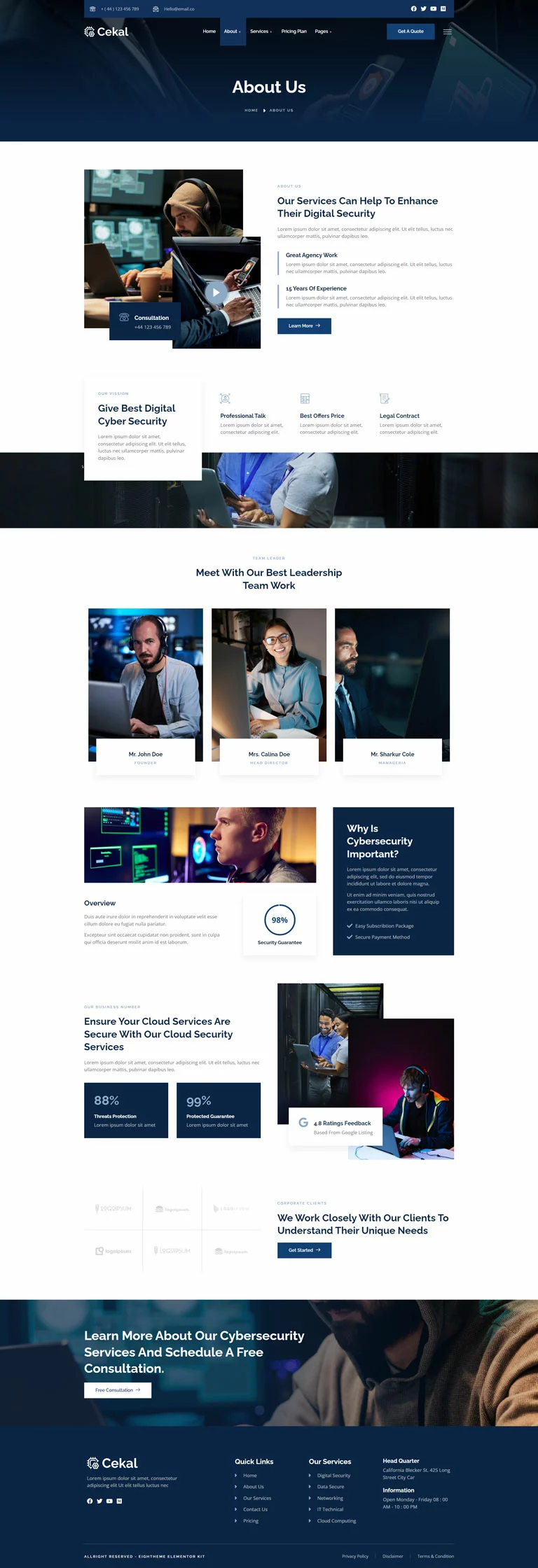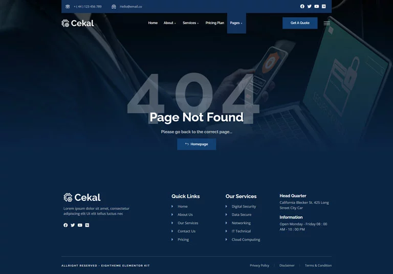 با قابلیت سفارشیسازی آسان و بدون نیاز به کدنویسی، کیت قالب المنتور امنیت سایبری Cekal انتخابی عالی برای ایجاد یک حضور آنلاین حرفهای برای کسبوکار امنیت سایبری و IT شما است.