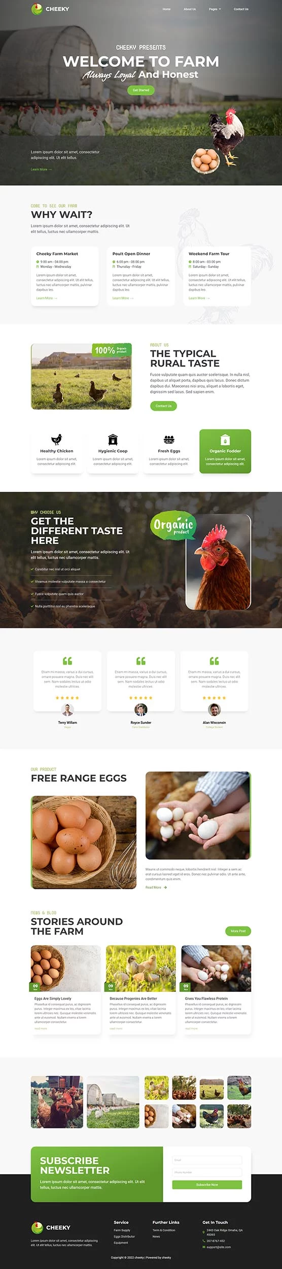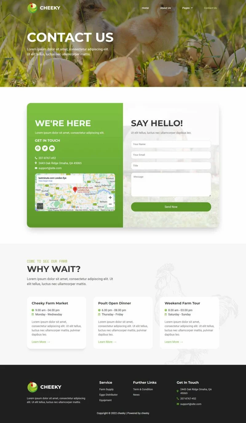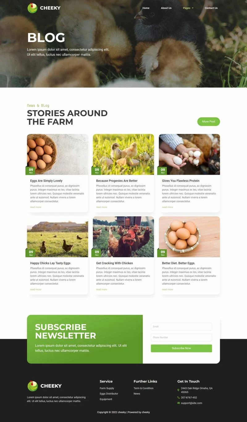 کیت قالب المنتور مزرعه طیور Cheeky به شما امکان میدهد به سرعت و به سادگی وبسایتهای مربوط به کسبوکار مزرعه طیور خود را با استفاده از افزونه صفحهساز Elementor برای وردپرس ایجاد کنید. این یک قالب وردپرس نیست. کیتهای قالب شامل محتوای صفحه برای صفحهساز المنتور هستند. این کیت برای استفاده با قالب رایگان Hello Elementor بهینهسازی شده است اما میتواند با بیشتر قالبهایی که از المنتور پشتیبانی میکنند استفاده شود.