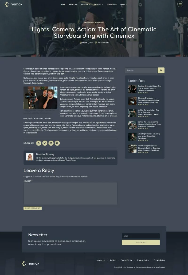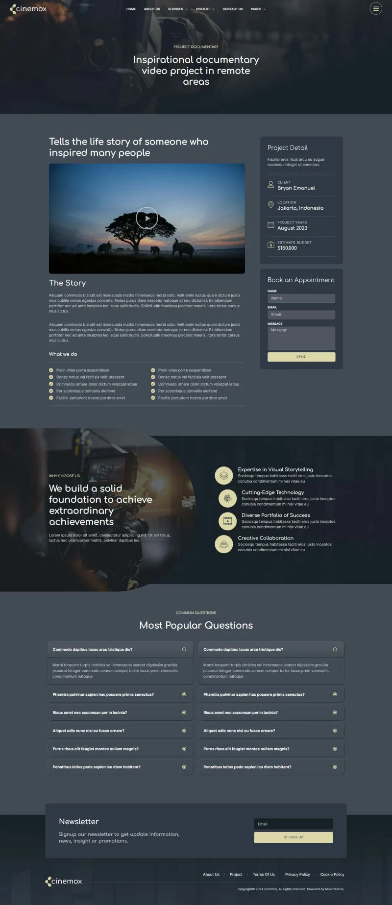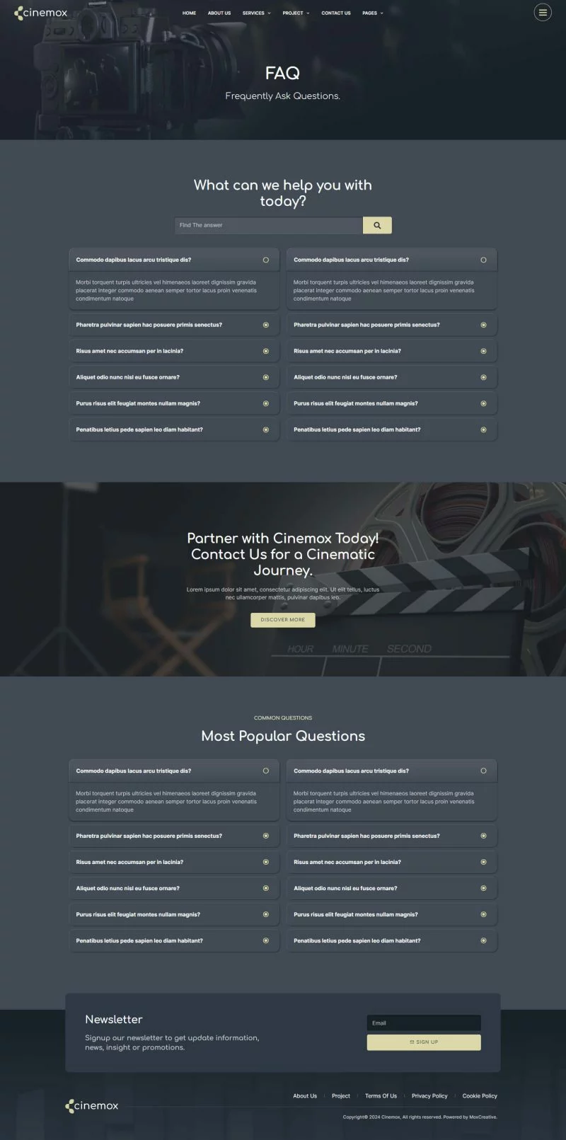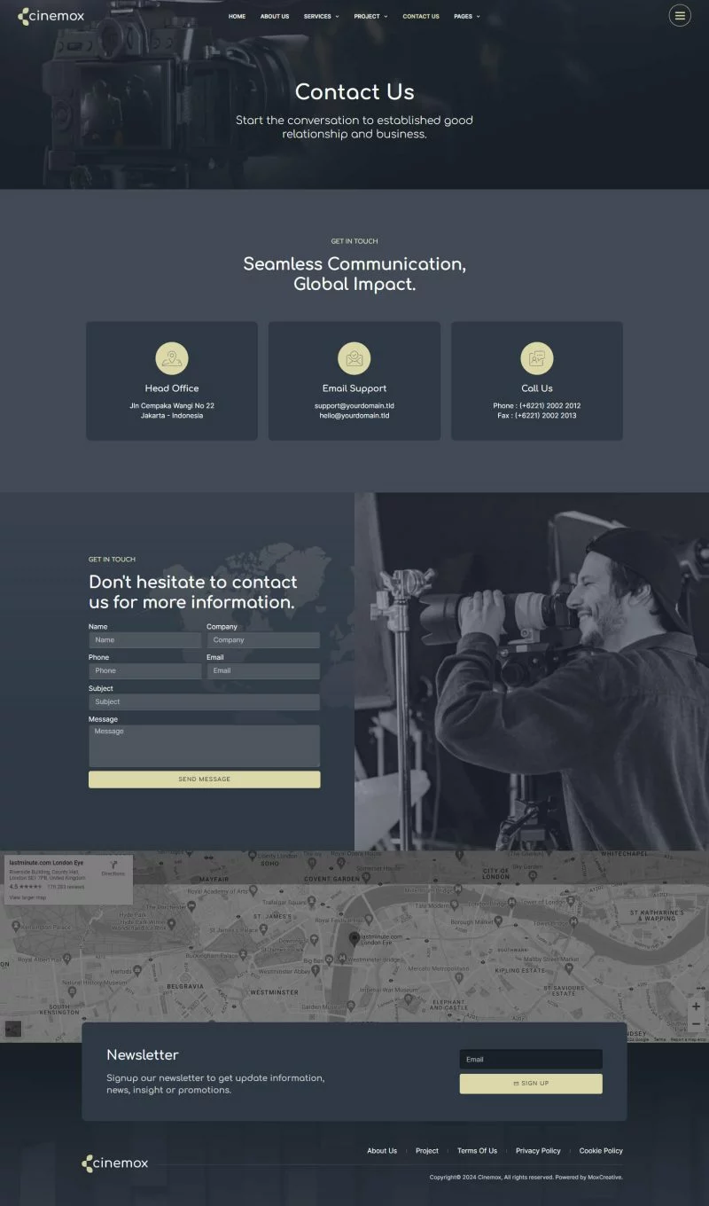 کیت قالب المنتور شرکت تولید ویدئو Cinemox دارای طراحی مدرن، تمیز و حرفهای است. با استفاده از این کیت، میتوانید به راحتی وبسایتی شگفتانگیز برای خدمات تولید ویدئو و خدمات مرتبط با آن مانند فیلم، ویدئوهای کوتاه، فریلنسری، تئاتر، فیلمسازی، ویدئوهای بازی، ولاگ، ویدئوهای مستند، تبلیغات و انواع تولیدات ویدئویی ایجاد کنید.