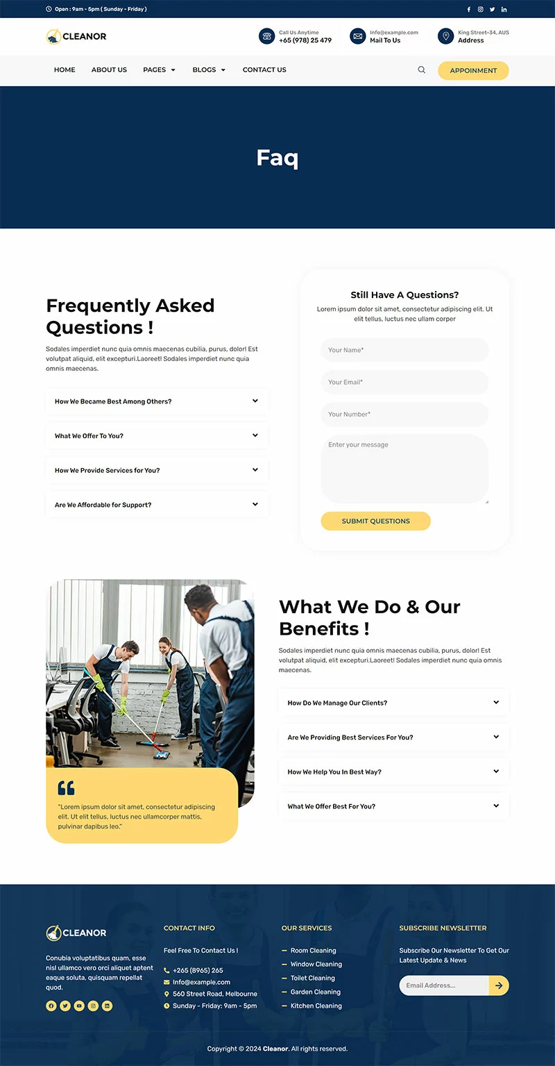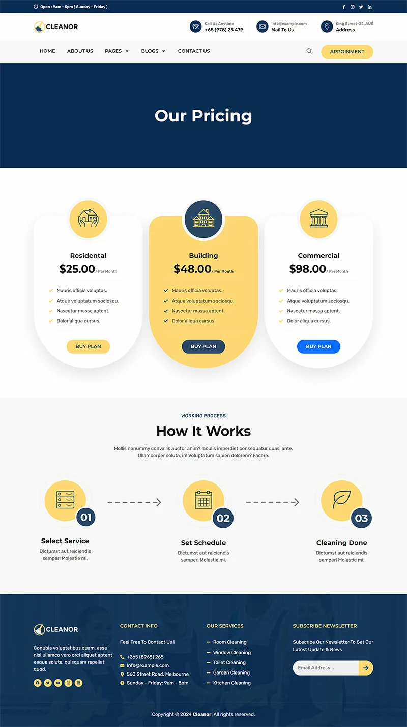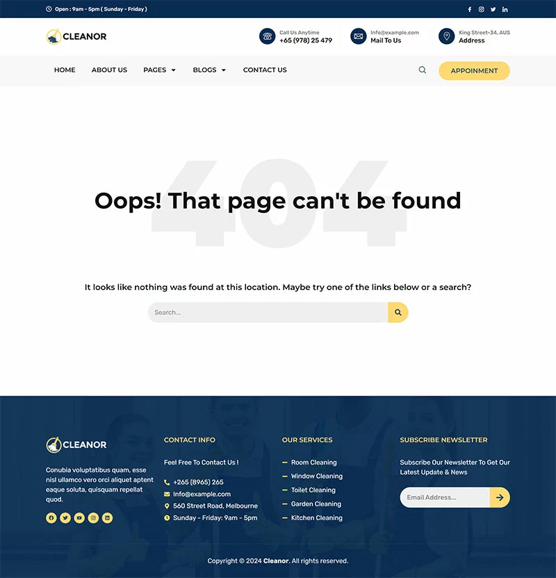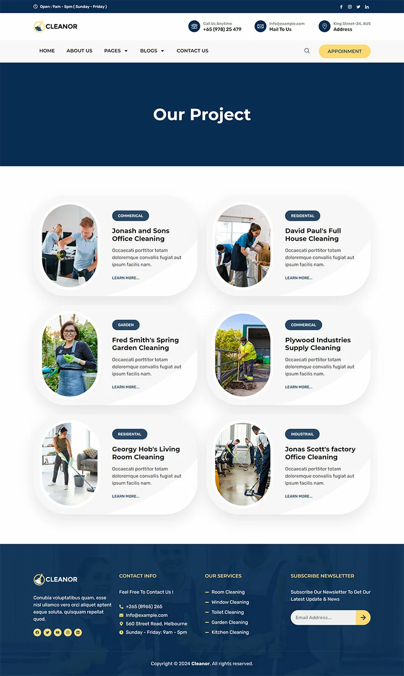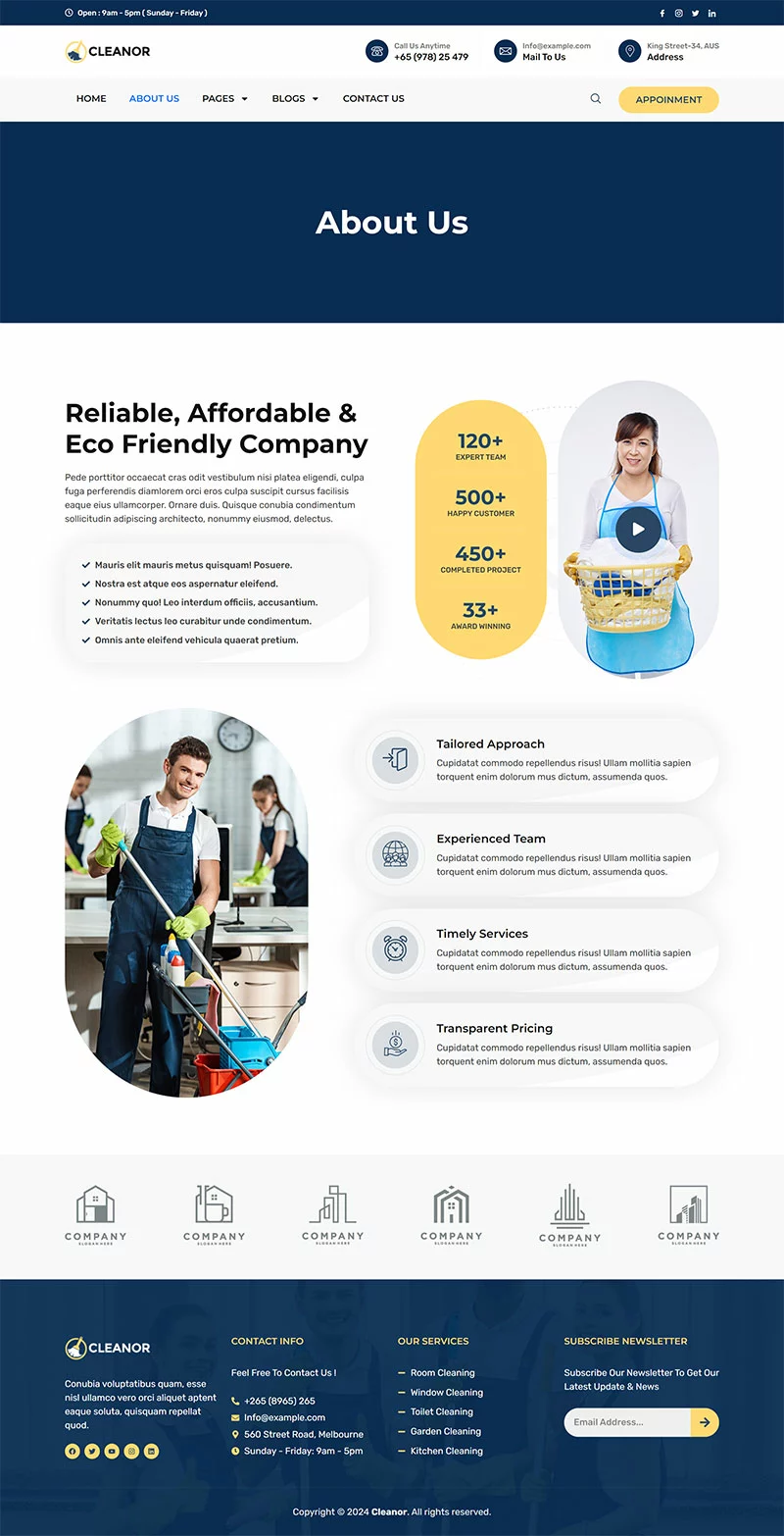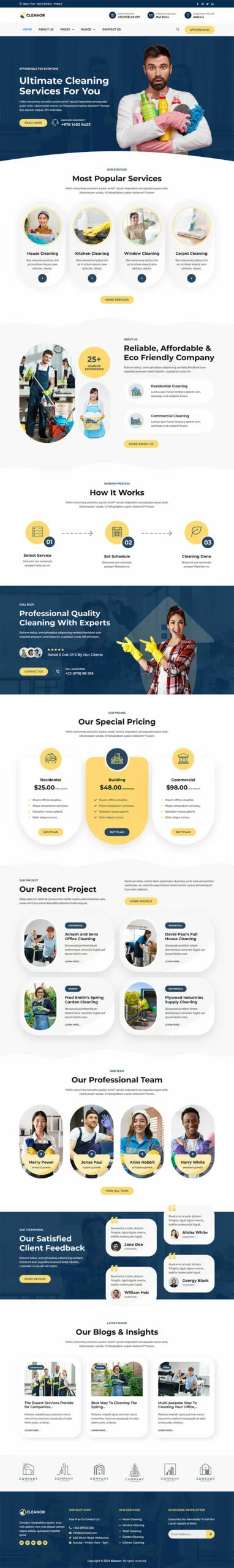 کیت قالب المنتور خدمات نظافتی Cleanor مخصوصاً برای ساخت سایتهای مختلف نظافتی مانند آژانس نظافتی، رزرو نظافت، کسبوکار نظافتی، خدمات نظافتی، نظافت تجاری، نظافت کف، نظافت بیمارستان، نظافت خانه، خشکشویی، ضدعفونی، نظافت پنجره و تمام کسبوکارهای نظافتی دیگر بدون نیاز به یک خط کدنویسی ایجاد شده است!