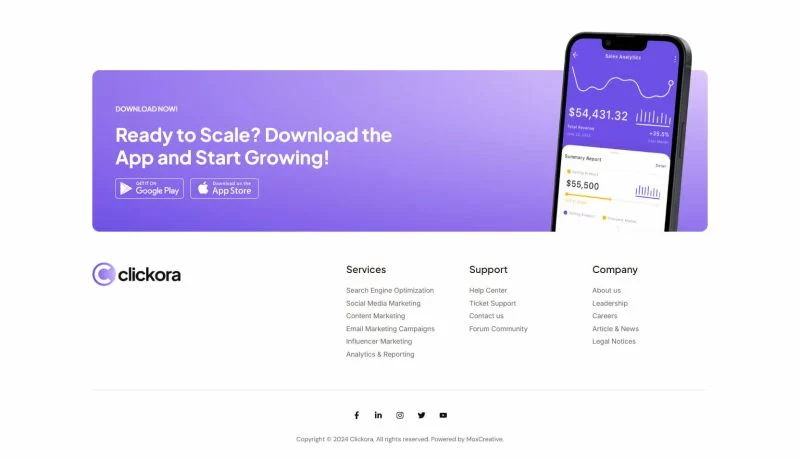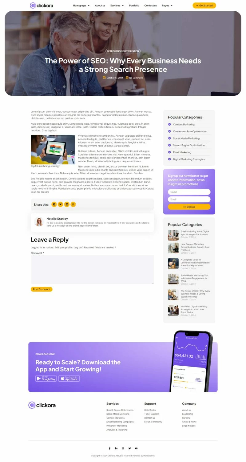 کلیکورا با طراحی مدرن و بهروز خود، فضایی جذاب برای نمایش خدمات دیجیتال مارکتینگ و خلاقیتها فراهم میکند. این طراحی بهگونهای است که هم حس اعتماد به مشتریان القا میکند و هم بازدیدکنندگان را جذب میکند. ترکیب رنگها، تایپوگرافی خوانا، و استفاده از فضاهای خالی بهدرستی به بهبود تجربه کاربری کمک میکند.