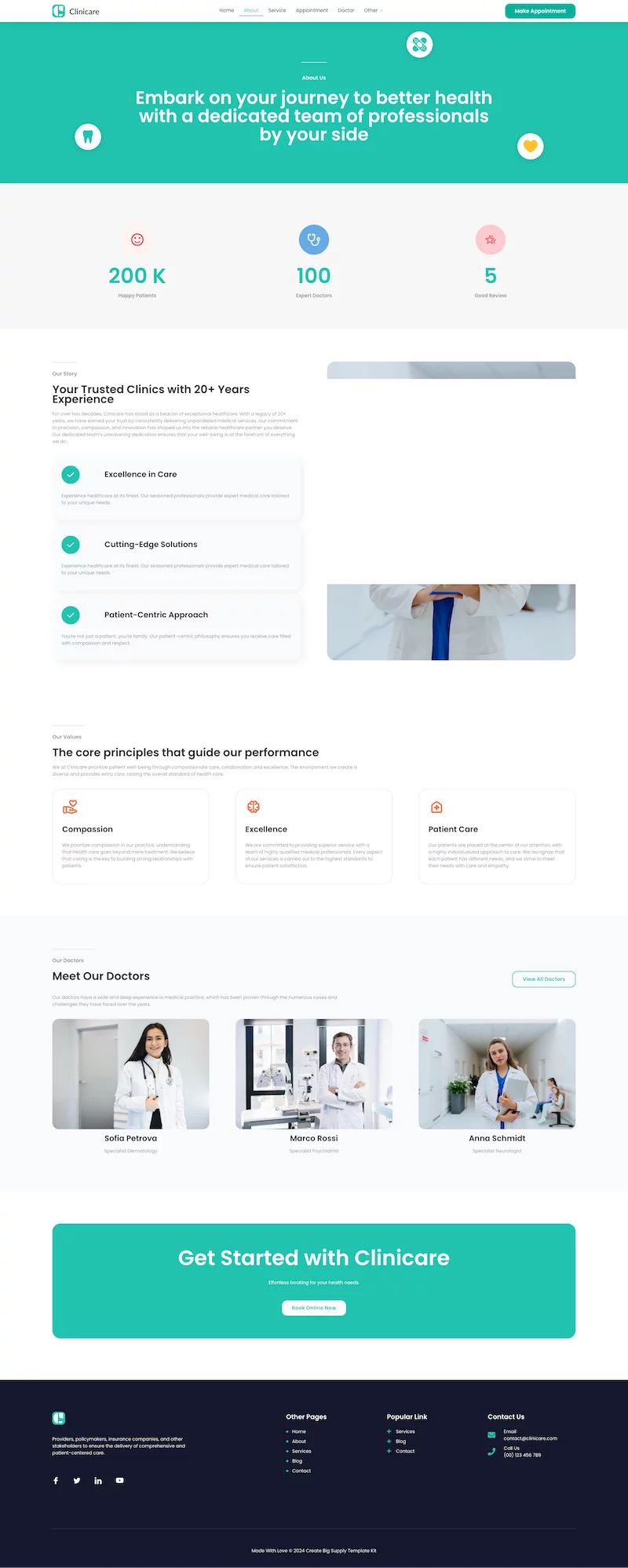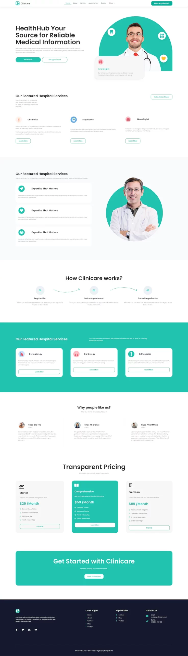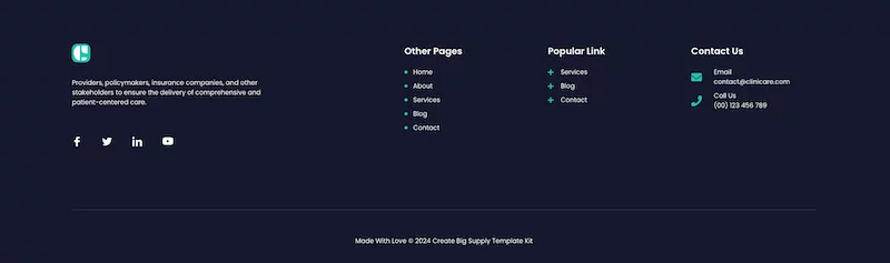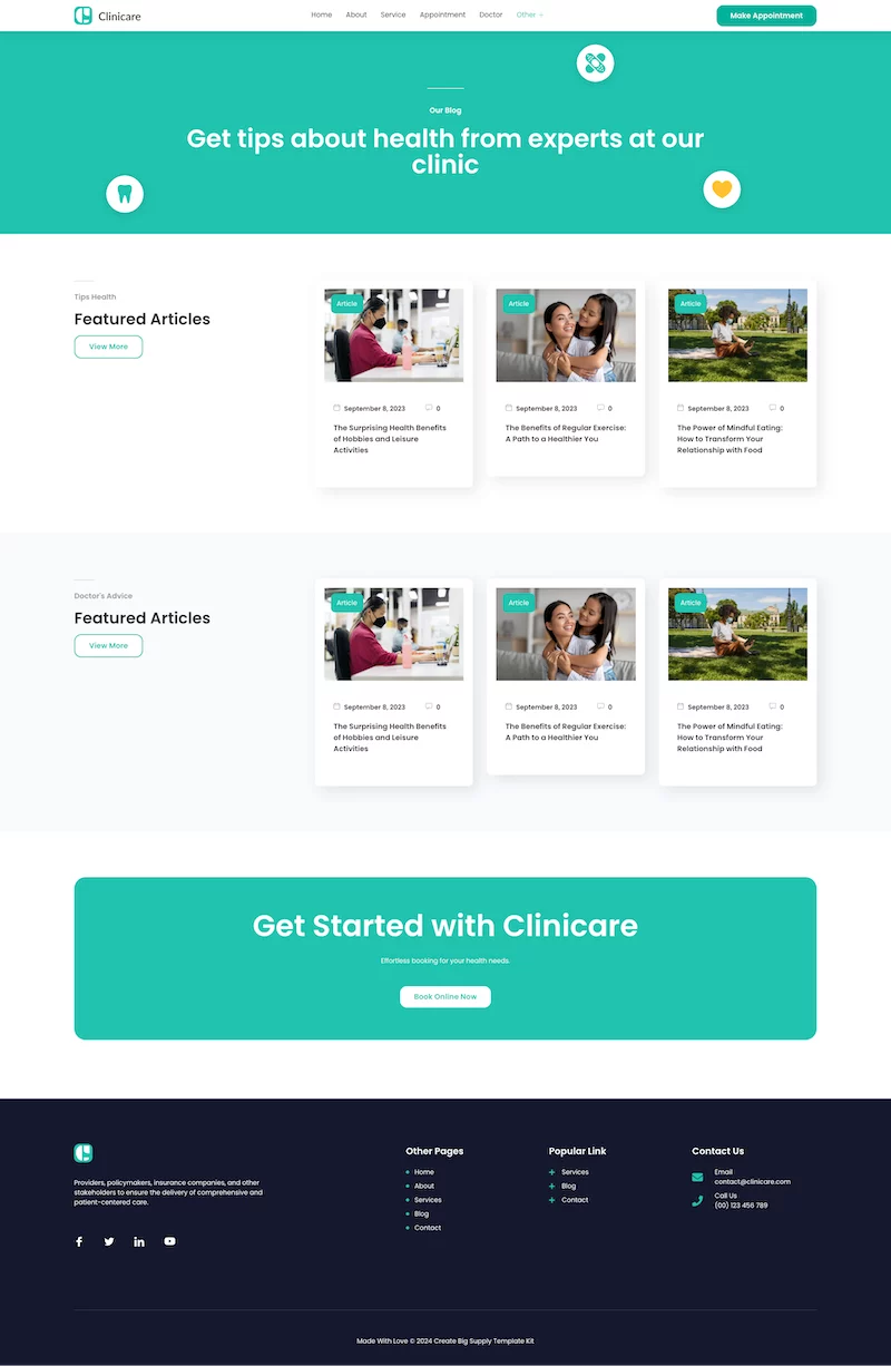 کیت قالب المنتور پزشکی Clinicare برای ایجاد وبسایتهای پزشکی و بهداشتی ایدهآل است که به کاربران امکان میدهد خدمات، پزشکان، و اطلاعات مهم دیگر را بهطور کامل به نمایش بگذارند. این کیت با طراحی واکنشگرا و سازگاری با مرورگرهای مختلف، تجربه کاربری مناسبی را ارائه میدهد. قالبهای مختلف موجود در این کیت، به شما اجازه میدهند تا بخشهای مختلفی از وبسایت خود را بهسادگی سفارشیسازی کنید و به اطلاعات مورد نیاز بیماران و بازدیدکنندگان دسترسی آسانی فراهم کنید.