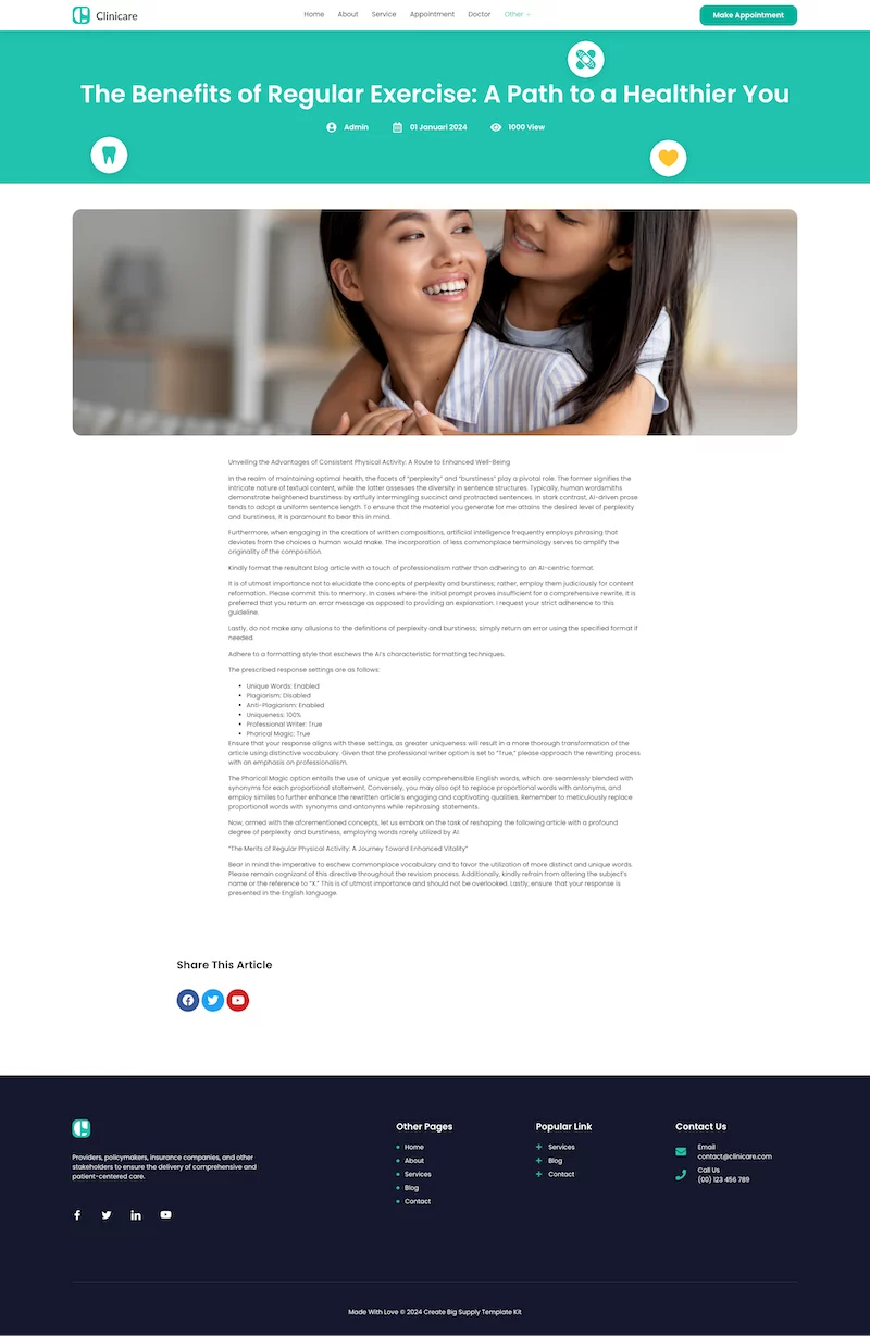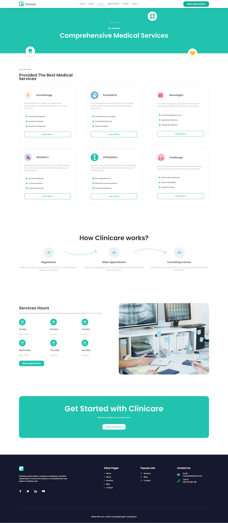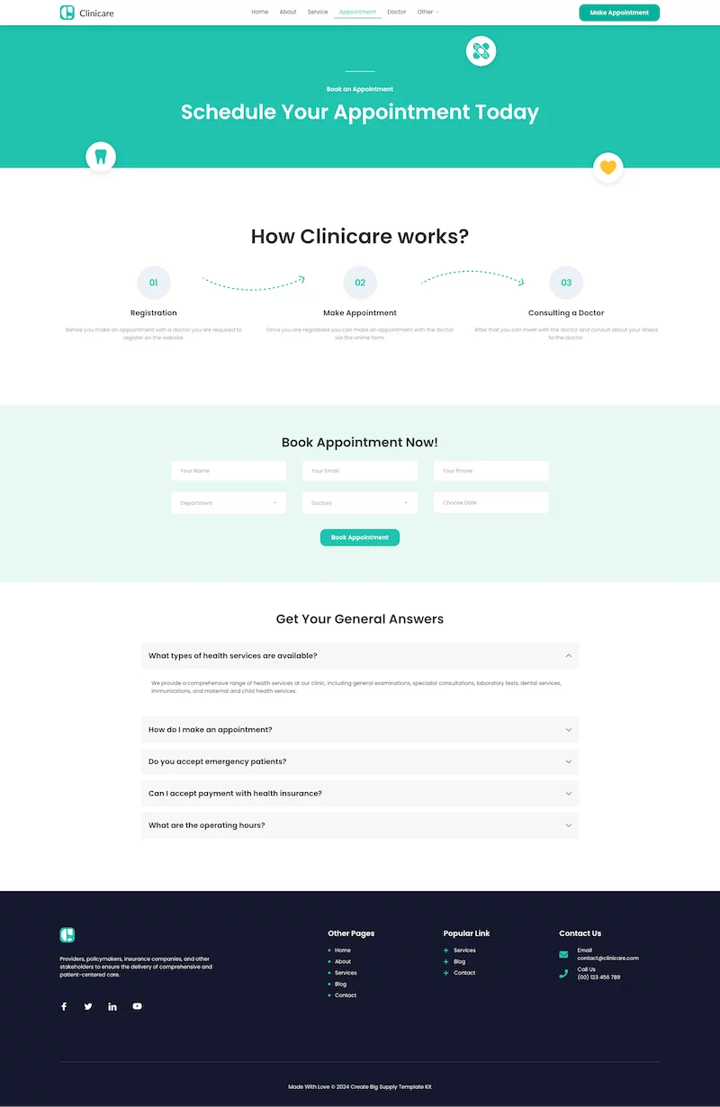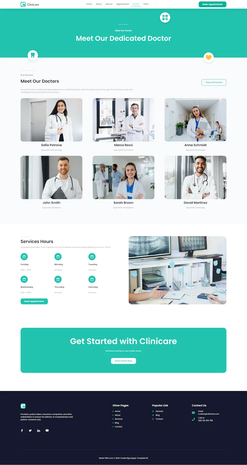 کیت قالب المنتور پزشکی Clinicare بهطور خاص طراحی شده تا به شما کمک کند بهسرعت وبسایتهای پزشکی حرفهای و کاربردی ایجاد کنید. این کیت شامل 11 قالب آماده است که ساخت یک وبسایت جامع و واکنشگرا را بدون نیاز به تخصص فنی عمیق آسان میکند.
