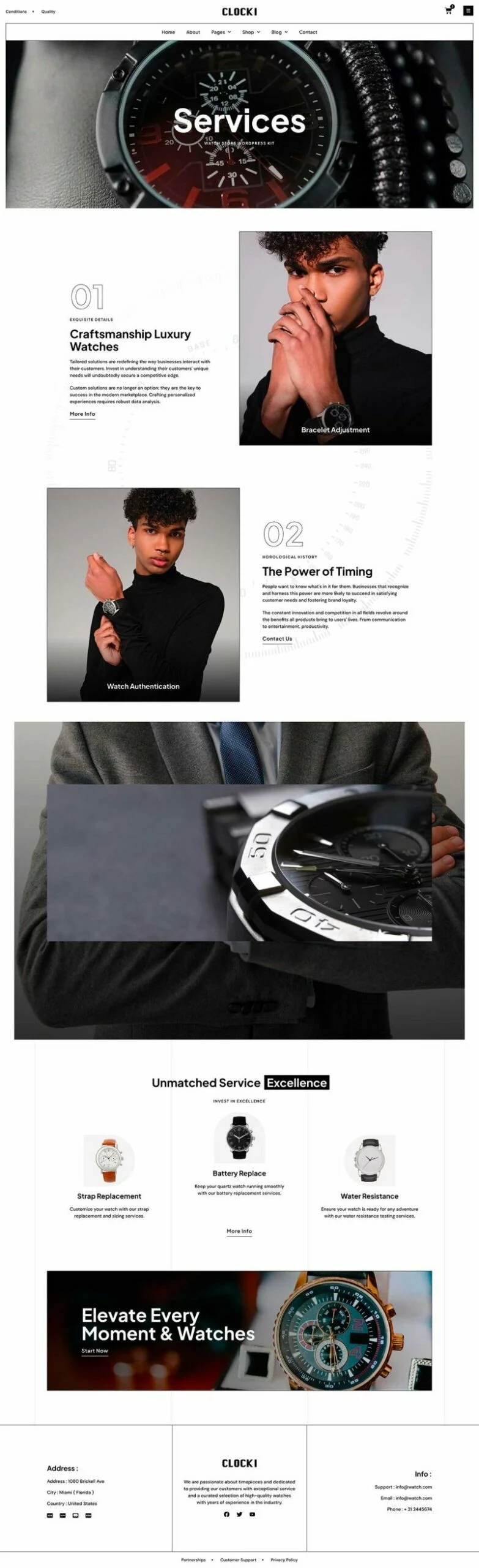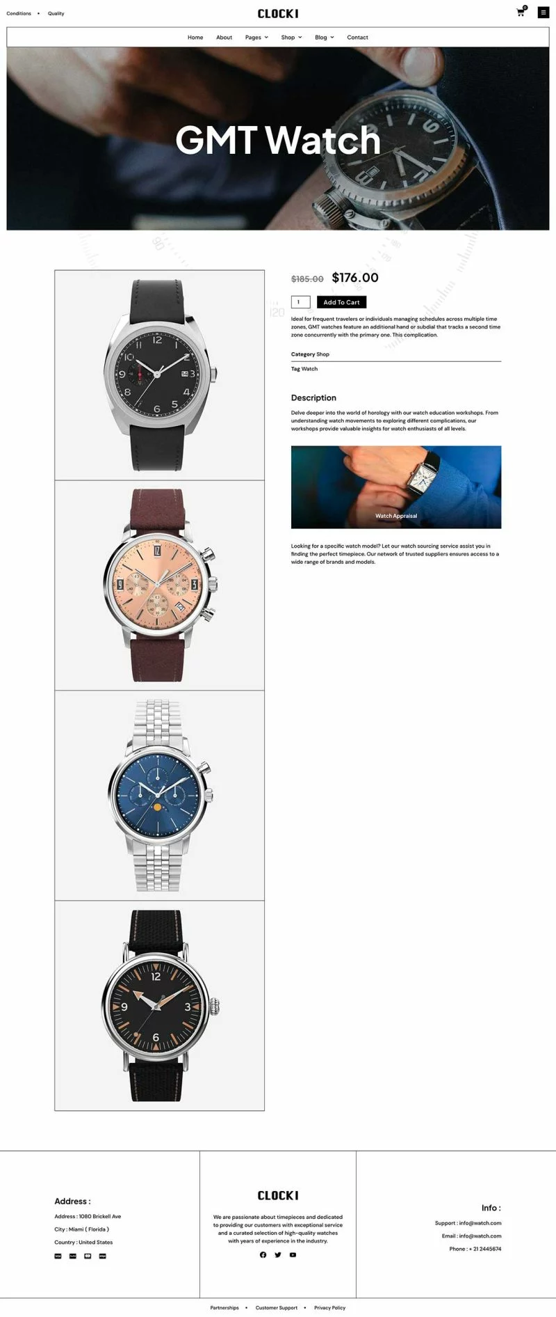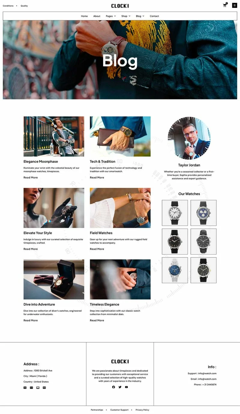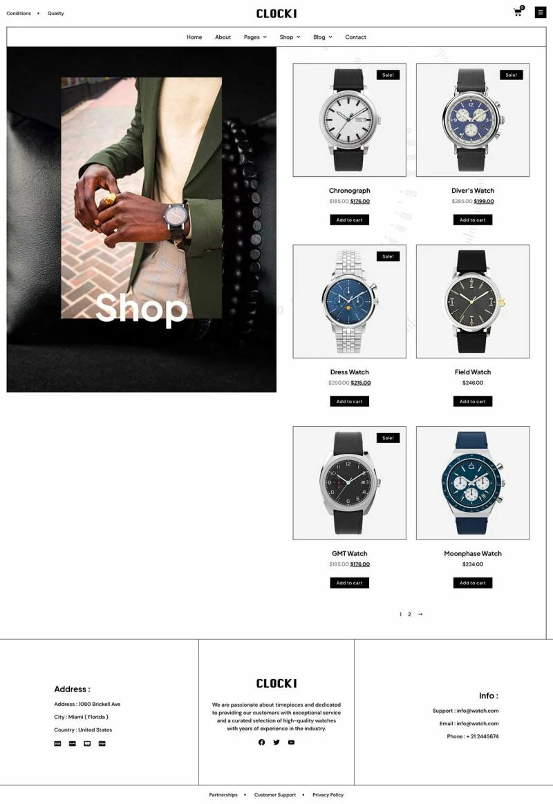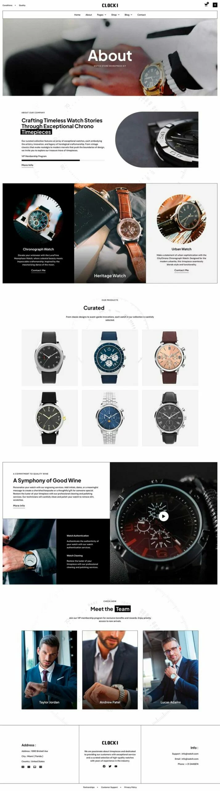 کیت قالب المنتور فروشگاه ساعت Clocki برای ایجاد سریع و آسان وبسایتهای کسبوکاری شما با استفاده از افزونه صفحهساز المنتور برای وردپرس است. این یک تم وردپرس نیست. کیتهای قالب شامل محتوای صفحه برای صفحهساز المنتور هستند. این کیت برای استفاده با تم رایگان Hello Elementor بهینه شده است، اما ممکن است با بیشتر تمهای سازگار با المنتور استفاده شود.