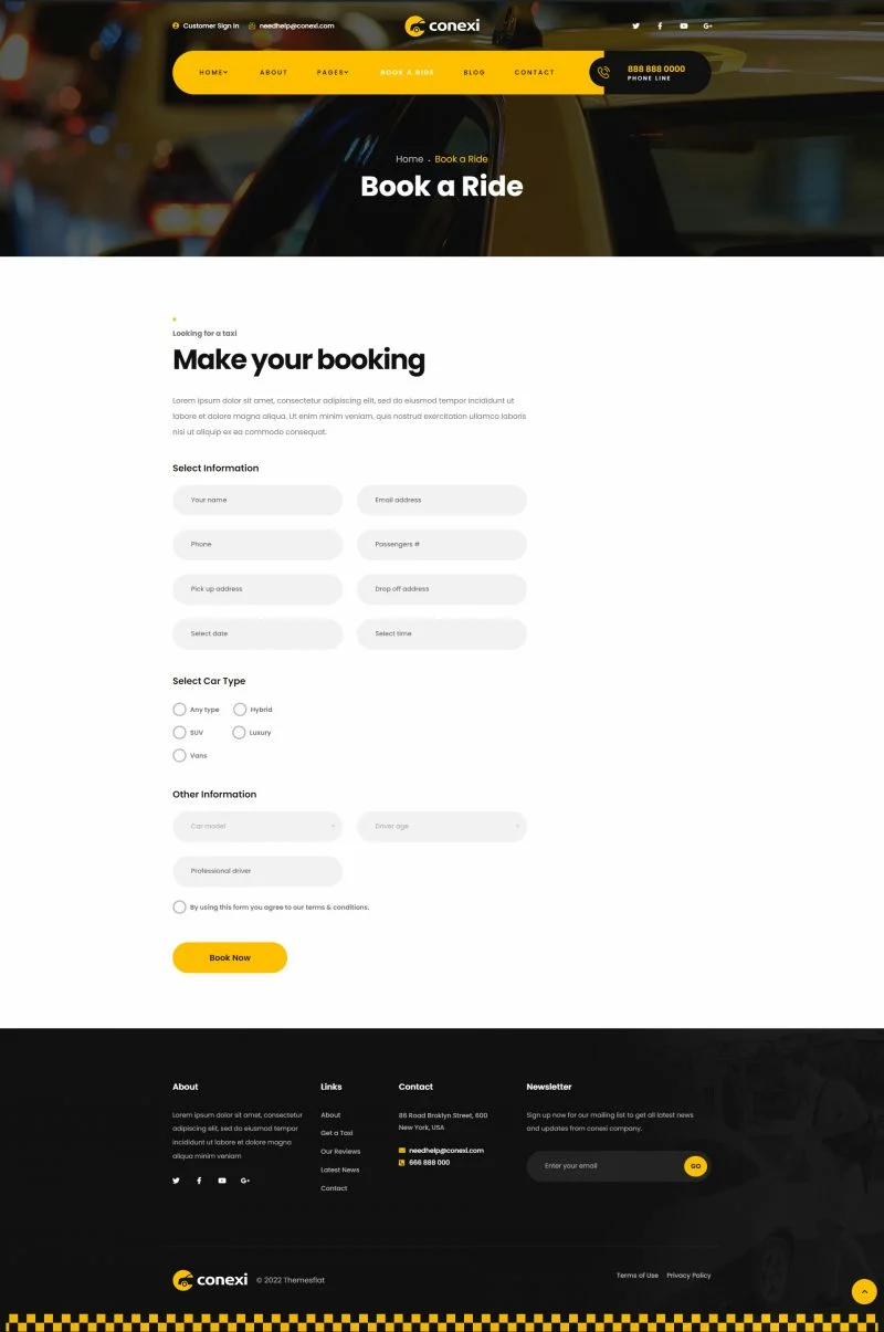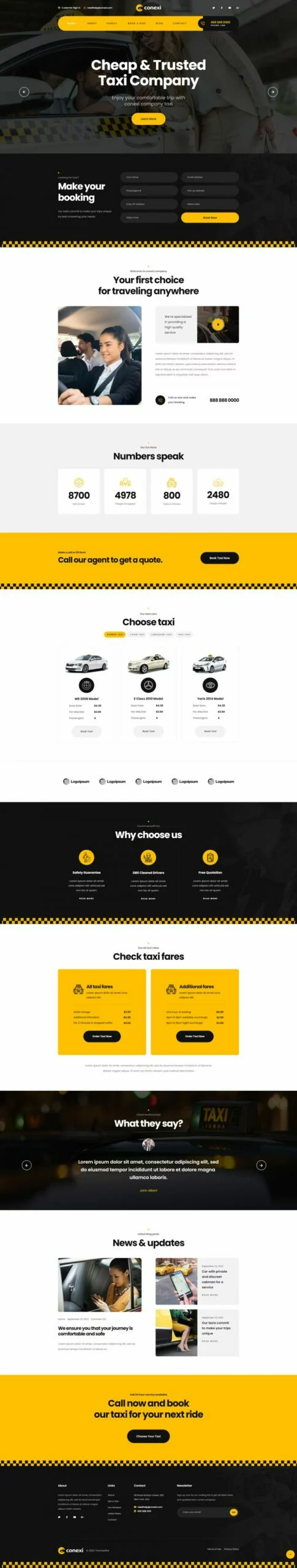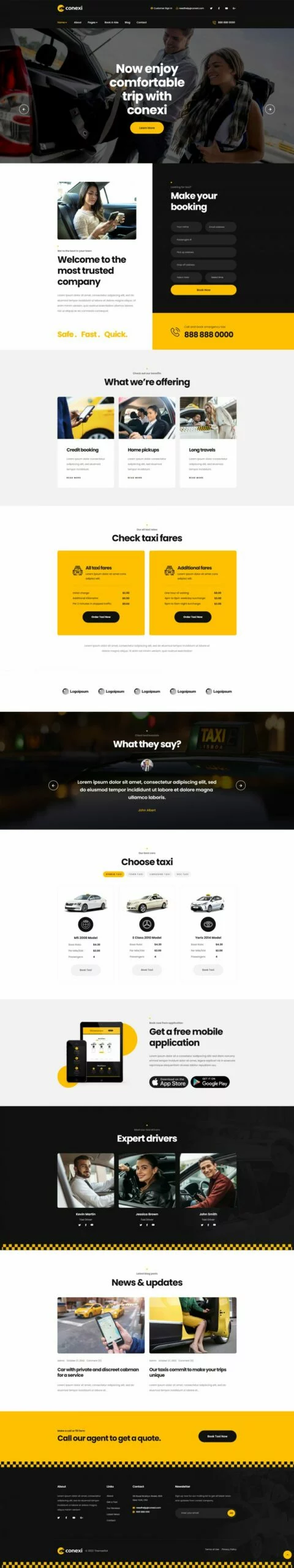 کیت قالب المنتور سرویس رزرو تاکسی آنلاین Conexi، یک کیت قالب شیک و تازه برای سرویس رزرو تاکسی آنلاین، خدمات تاکسی، اجاره خودرو، شرکتهای خصوصی اجاره خودرو، آژانسهای تاکسی و تعمیرگاههای خودرو است. کیت قالب Conexi با استفاده از افزونه محبوب Elementor ساخته شده است. این قالب بهراحتی قابل سفارشیسازی، کاملاً واکنشگرا و سازگار با تمامی مرورگرها و دستگاههای مدرن میباشد.