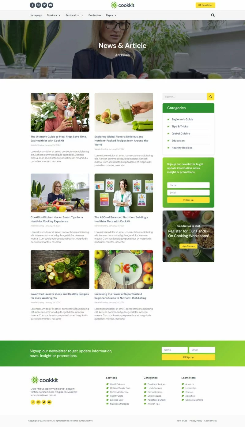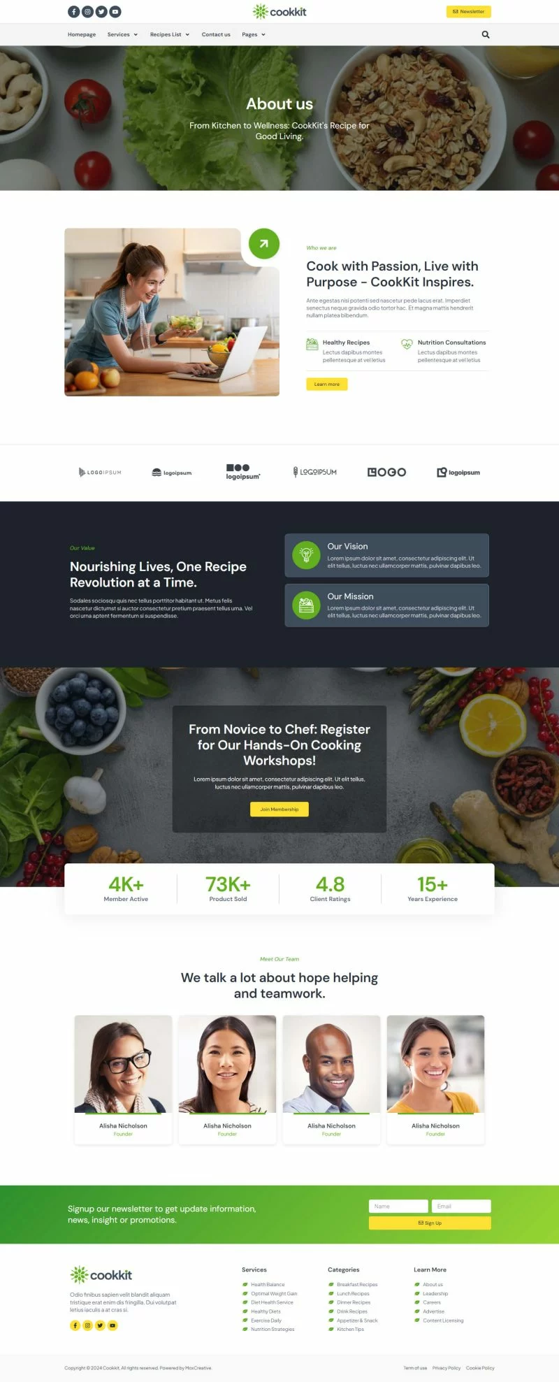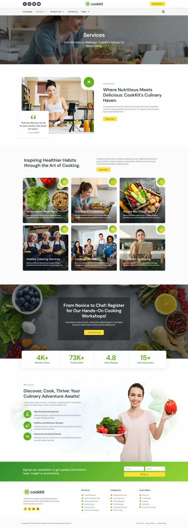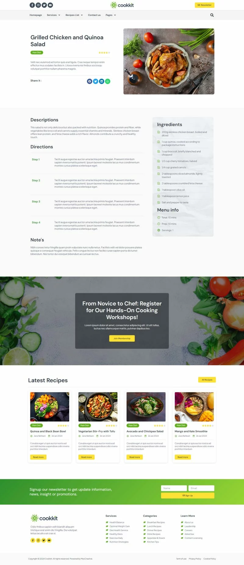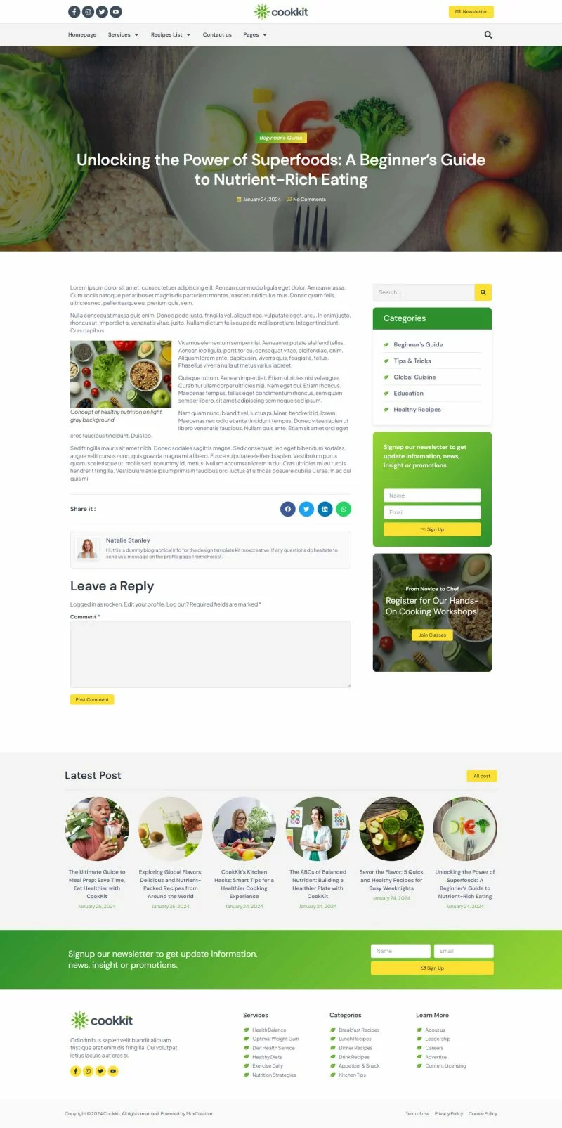 کیت قالب المنتور آشپزی Cookkit برای ساخت وبسایتها و اپلیکیشنهای مرتبط با غذا یا وبلاگهای دستور پخت در وردپرس است. این کیت قالب برای هر کسبوکار یا خدماتی که با دستور پخت مرتبط است، مانند دستور پخت غذا، دستور پخت نوشیدنی، دستور پخت کیک، وبسایتهای دستور پخت سالم و غیره مناسب است. شما همچنین میتوانید وبلاگنویسی کرده و اخبار یا مقالات مرتبط با غذا بنویسید.