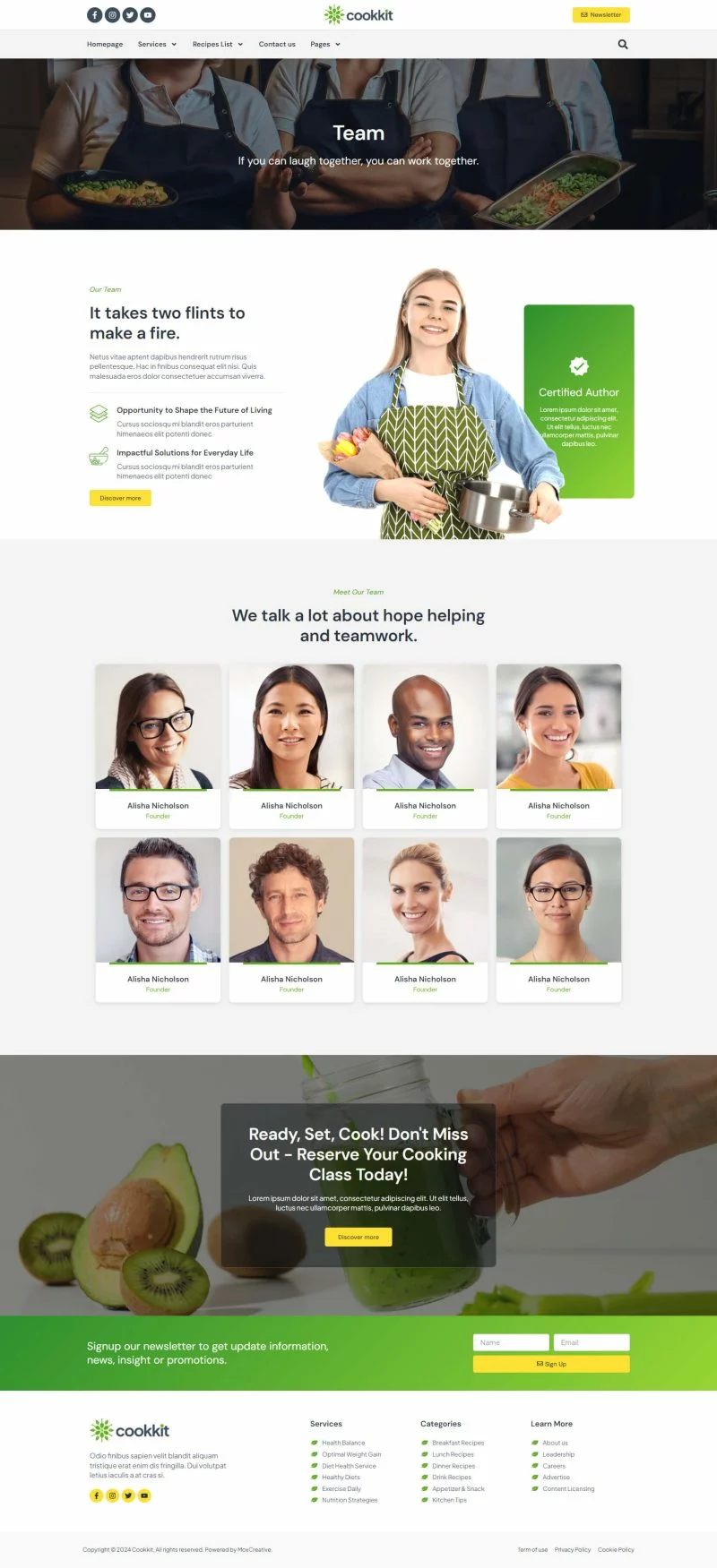 با استفاده از این کیت قالب المنتور، میتوانید وبسایت خدمات دستور پخت و تغذیه خود را به راحتی بسازید. با صفحهساز المنتور، میتوانید به سادگی آن را ویرایش یا سفارشی کنید، بدون نیاز به کدنویسی، فقط با کشیدن و رها کردن.