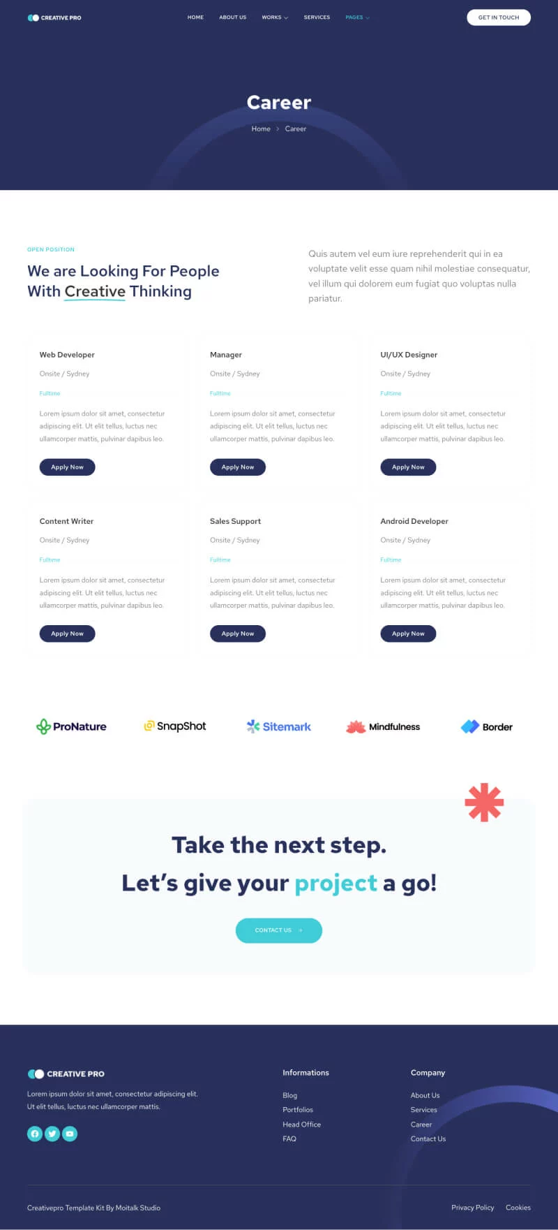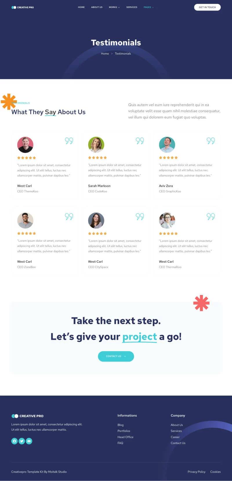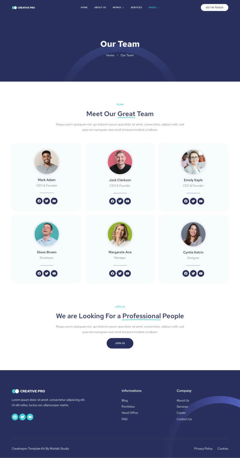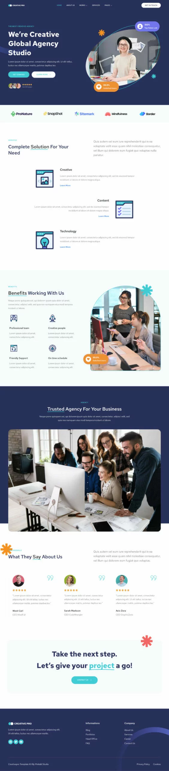 کیت قالب المنتور آژانس خلاقیت Creativepro برای آژانسها، استارتاپها، استودیوها و سایر خدمات مرتبط طراحی شده است. این قالب دارای 10 صفحه مختلف برای وبسایت شما است.