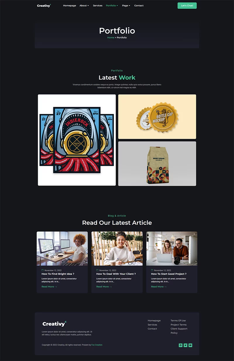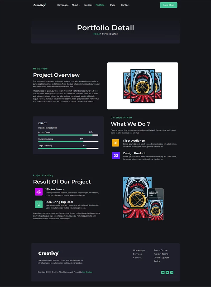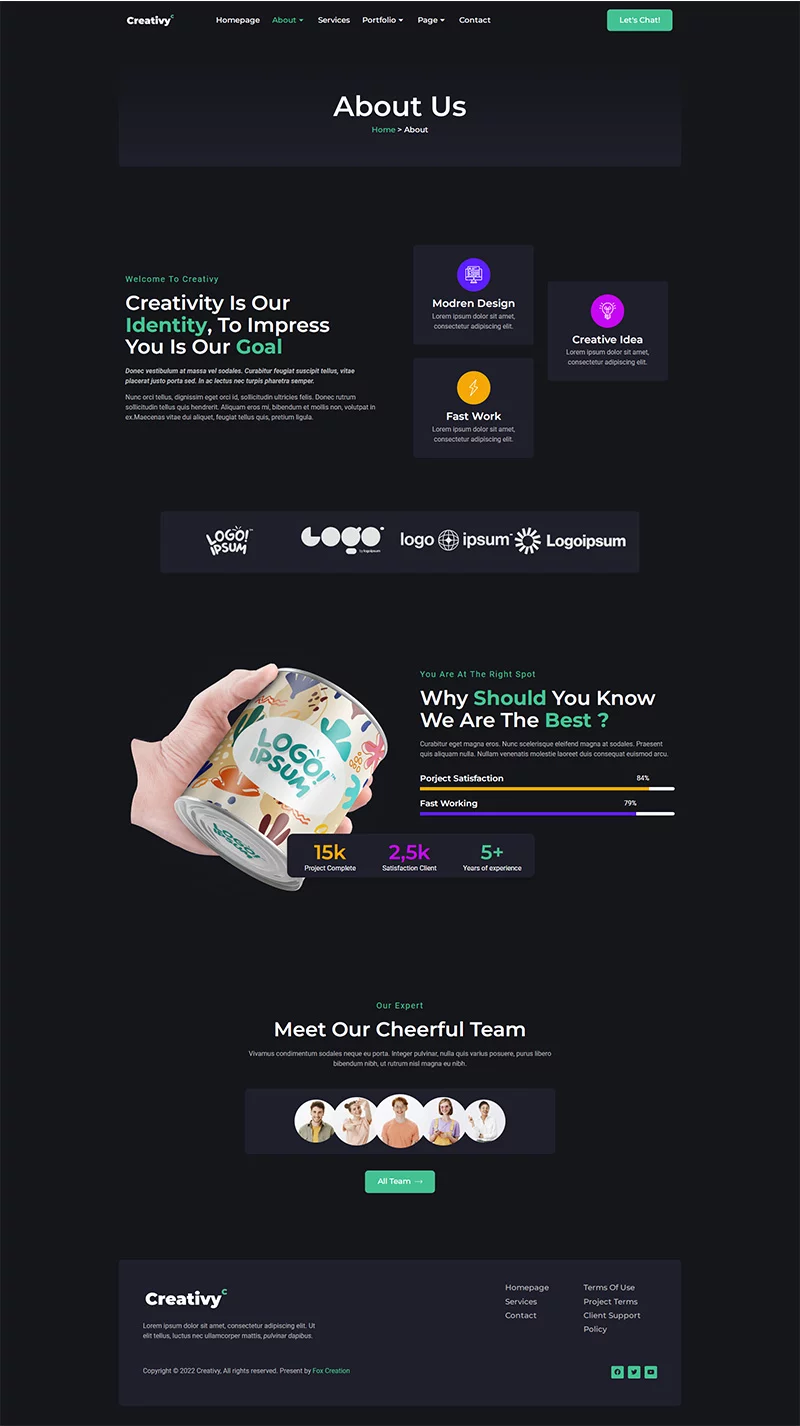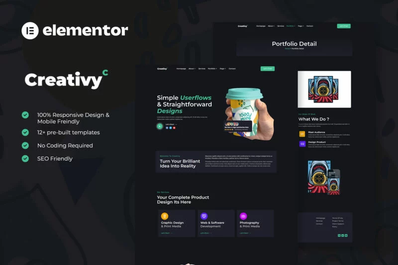 کیت قالب المنتور آژانس خلاقیت و نمونه کار Creativy،یک کیت برای ایجاد سریع و آسان وبسایتهای کسبوکار شما با استفاده از افزونه Elementor Page Builder برای وردپرس است. این قالب دارای طراحی حرفهای، طراحی کاملاً واکنشگرا و رتیانا ردی است و به طرز باورنکردنی ساده برای ویرایش است زیرا از المنتور استفاده میکند و نیازی به کدنویسی ندارد.