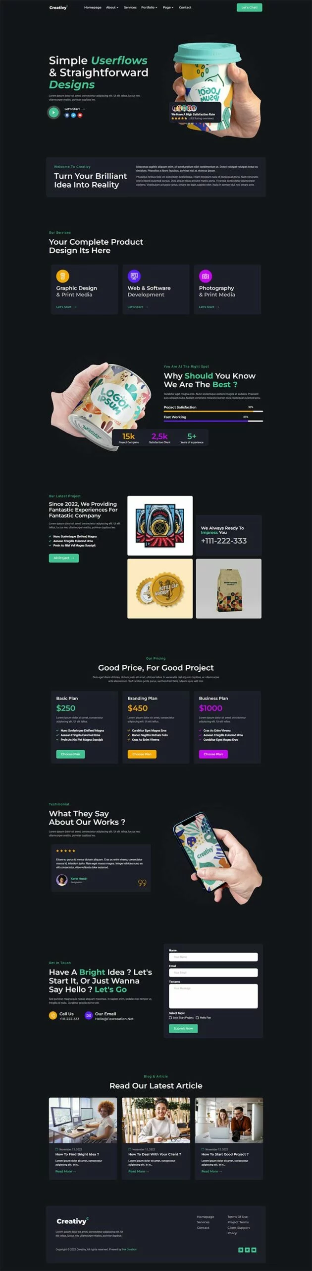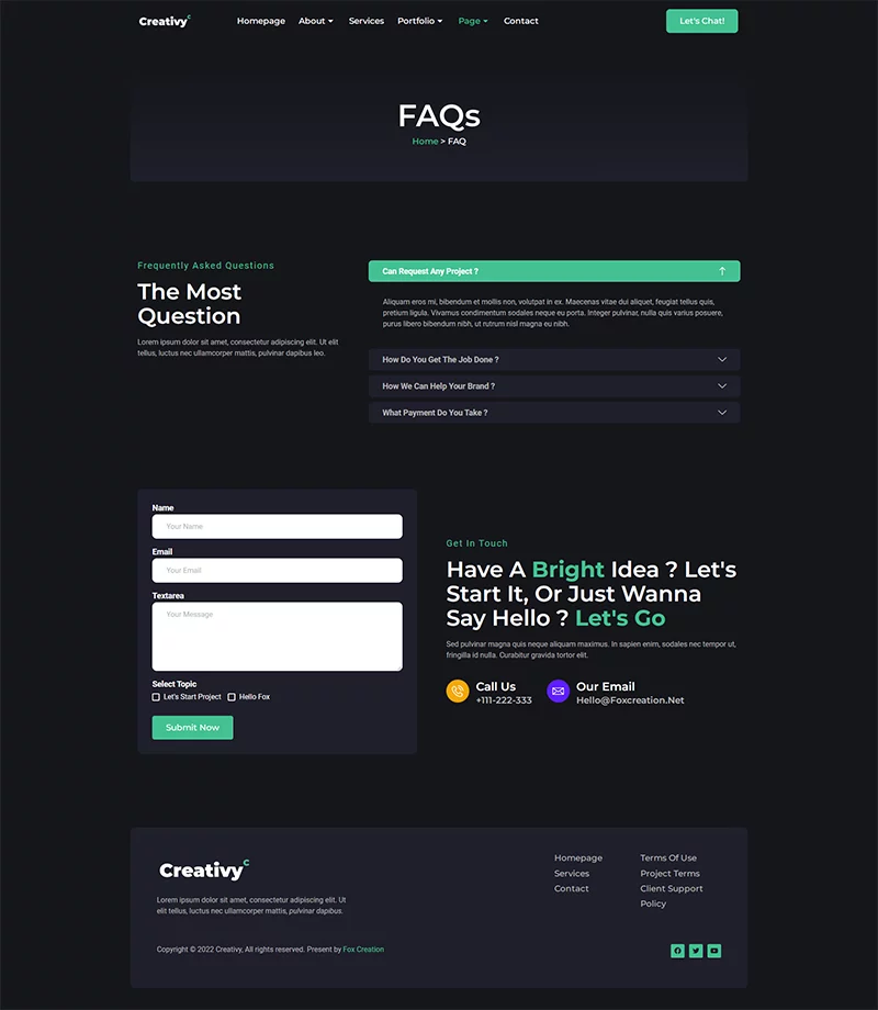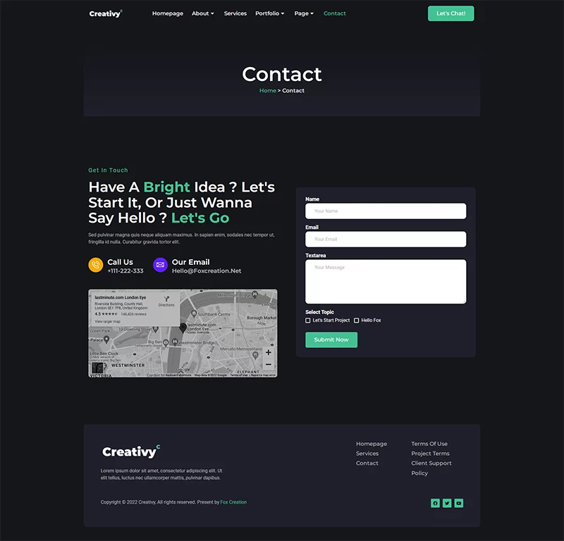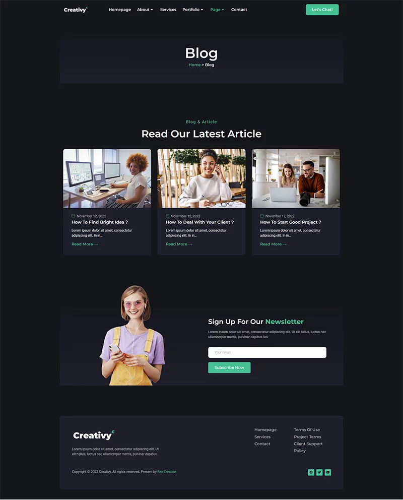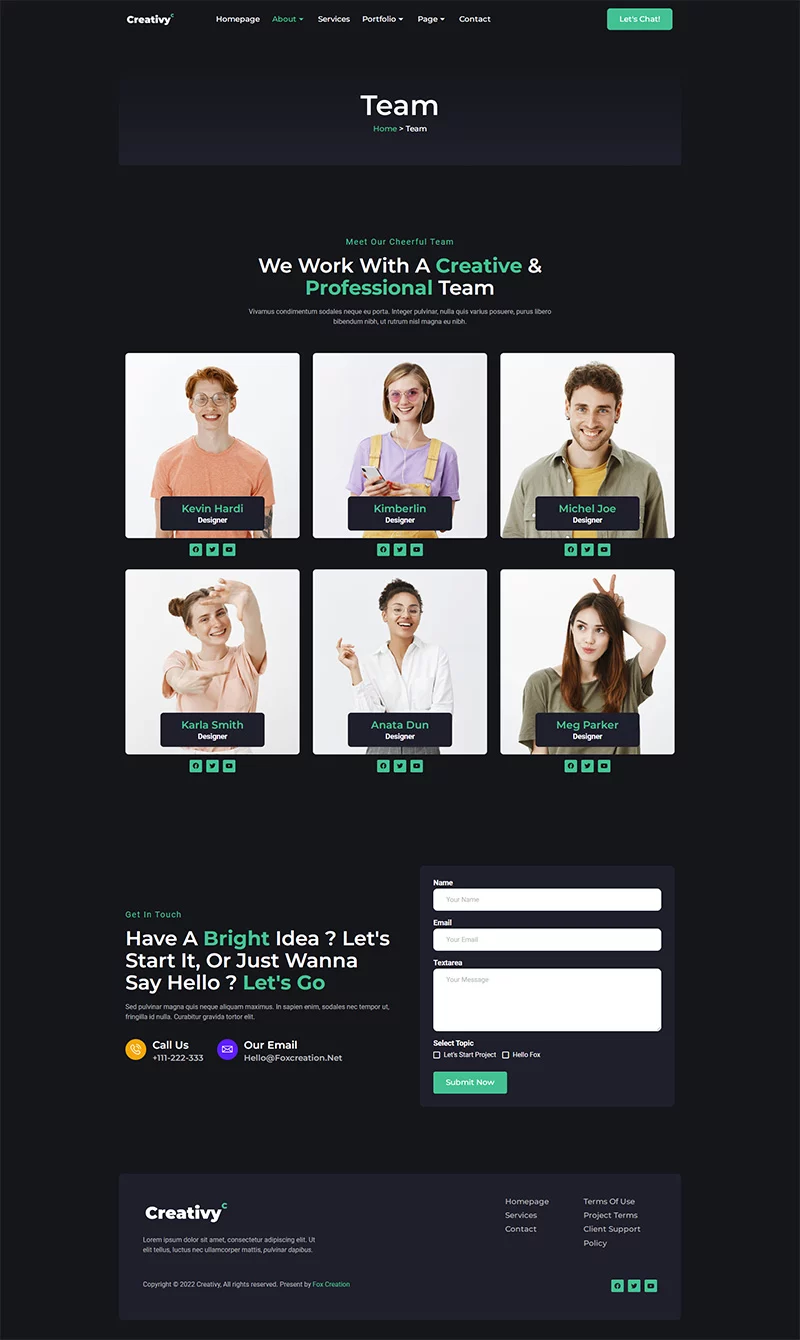 کیت قالب المنتور آژانس خلاقیت و نمونه کار Creativy،یک کیت برای ایجاد سریع و آسان وبسایتهای کسبوکار شما با استفاده از افزونه Elementor Page Builder برای وردپرس است. این قالب دارای طراحی حرفهای، طراحی کاملاً واکنشگرا و رتیانا ردی است و به طرز باورنکردنی ساده برای ویرایش است زیرا از المنتور استفاده میکند و نیازی به کدنویسی ندارد.