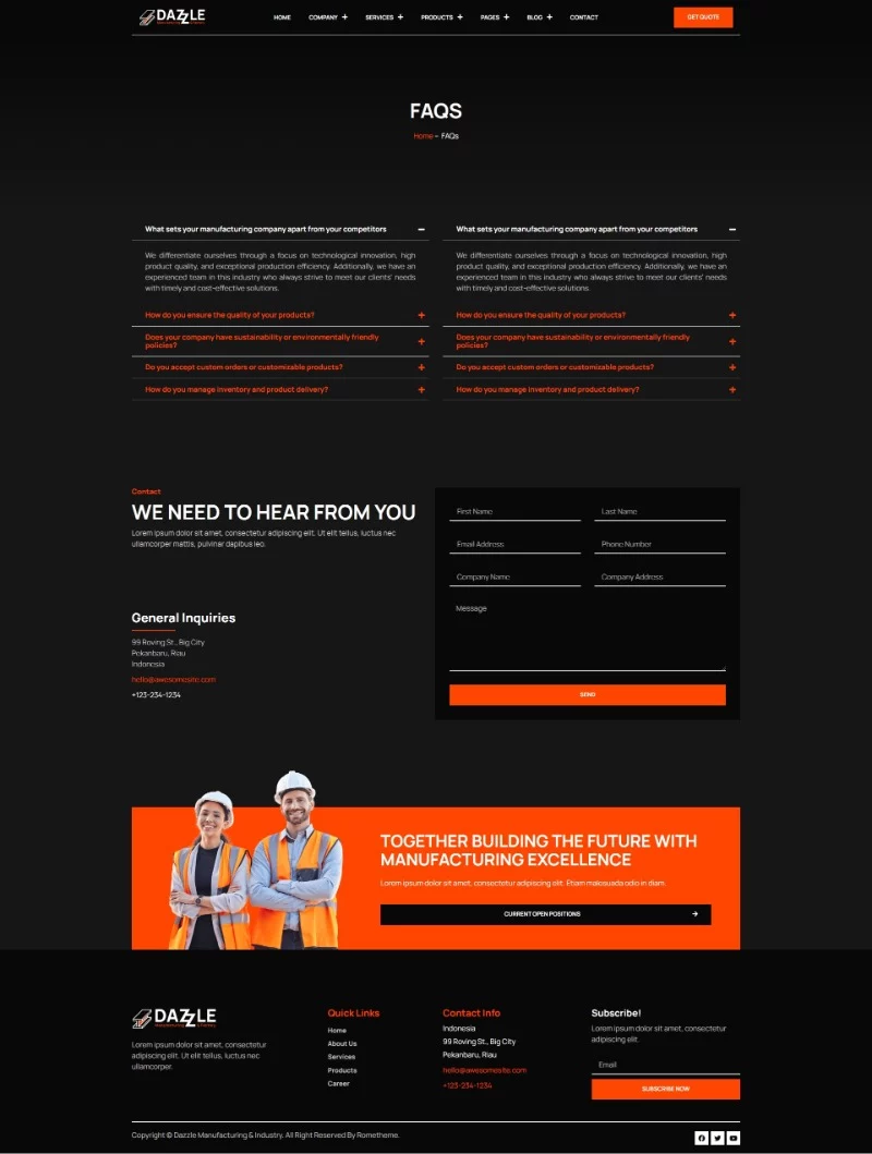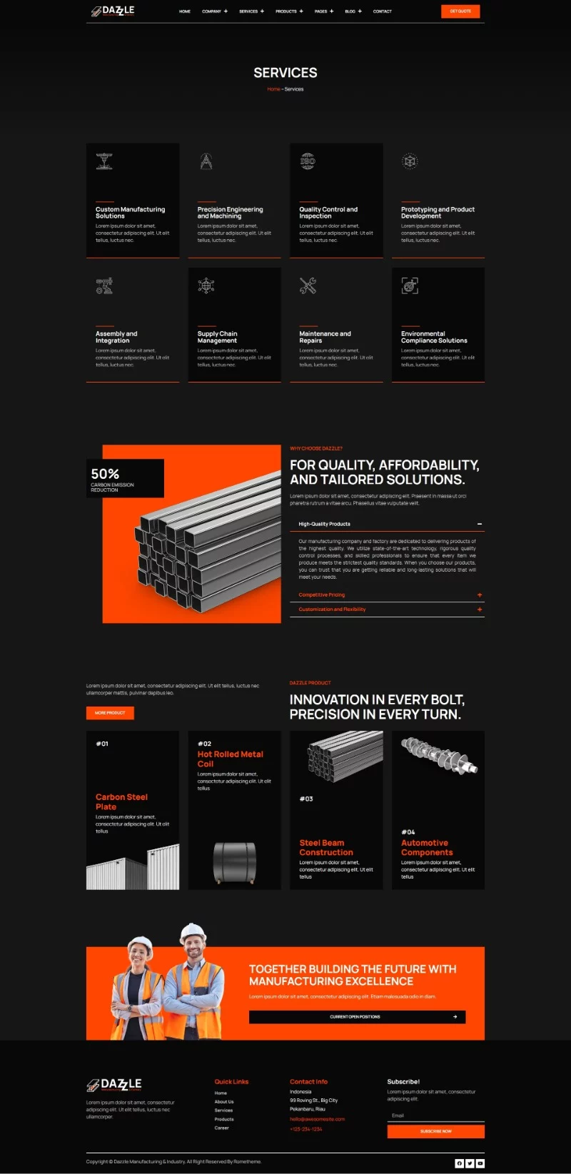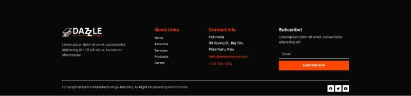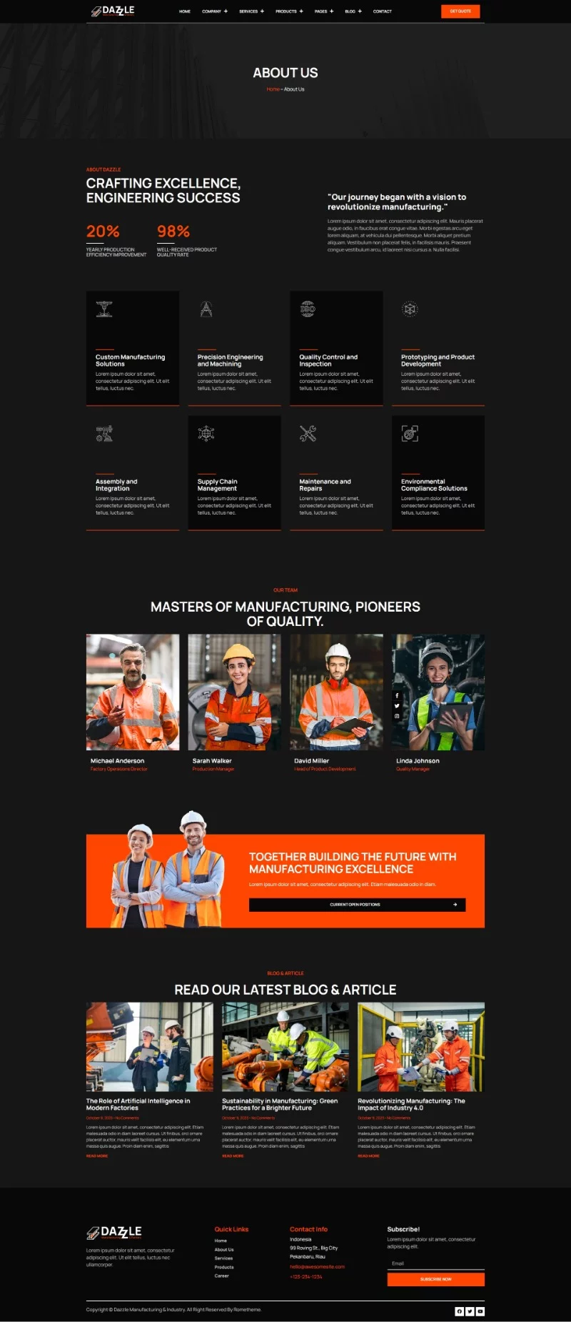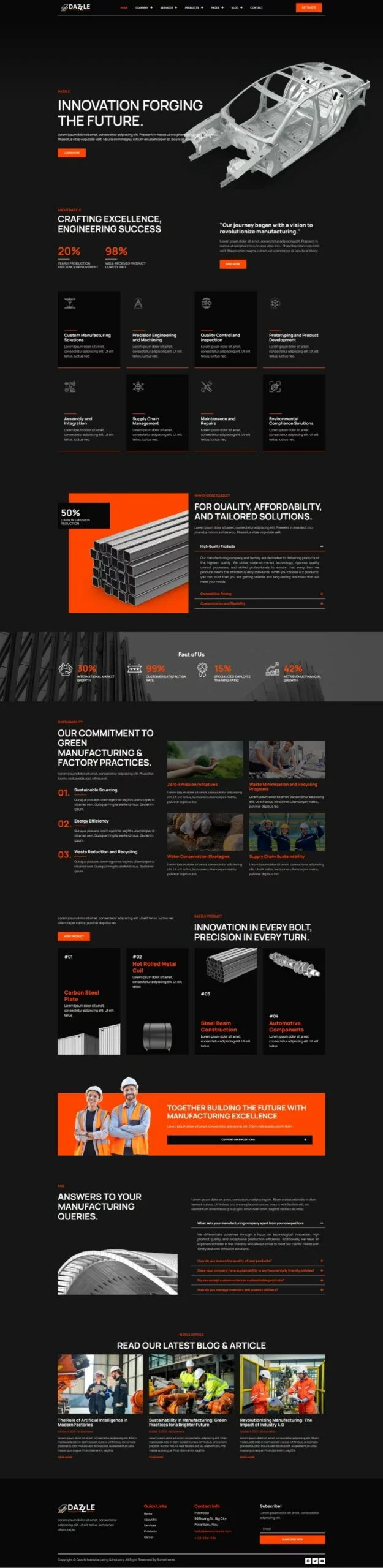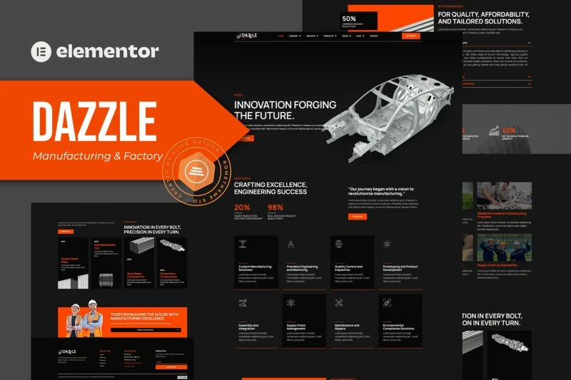 با استفاده از کیت قالب المنتور کارخانه و تولید Dazzle، میتوانید به سرعت و بهراحتی یک وبسایت حرفهای و کارآمد برای کسبوکارهای صنعتی خود ایجاد کنید.