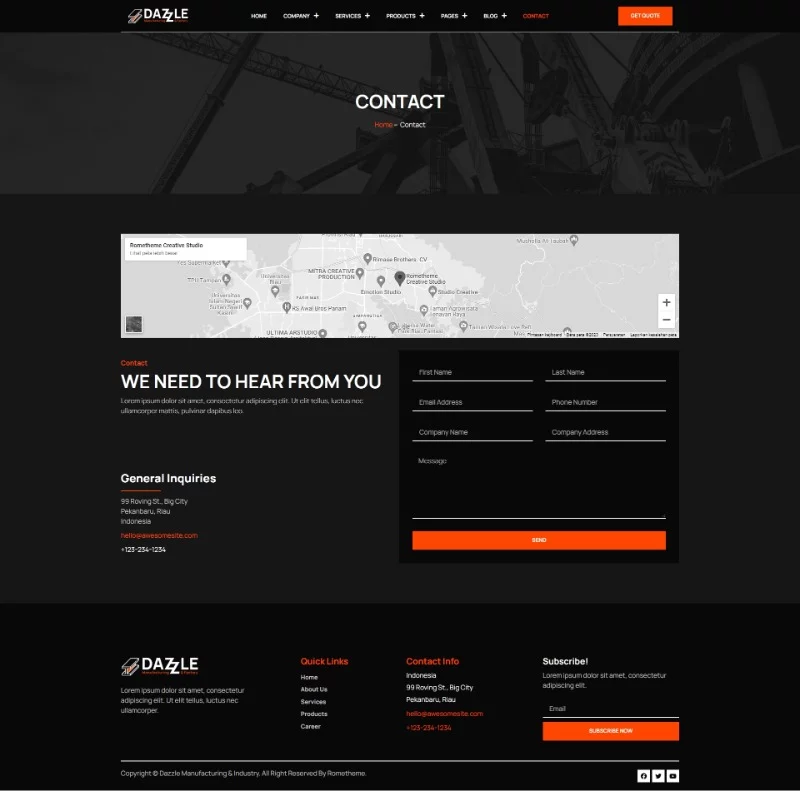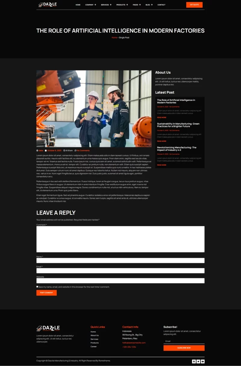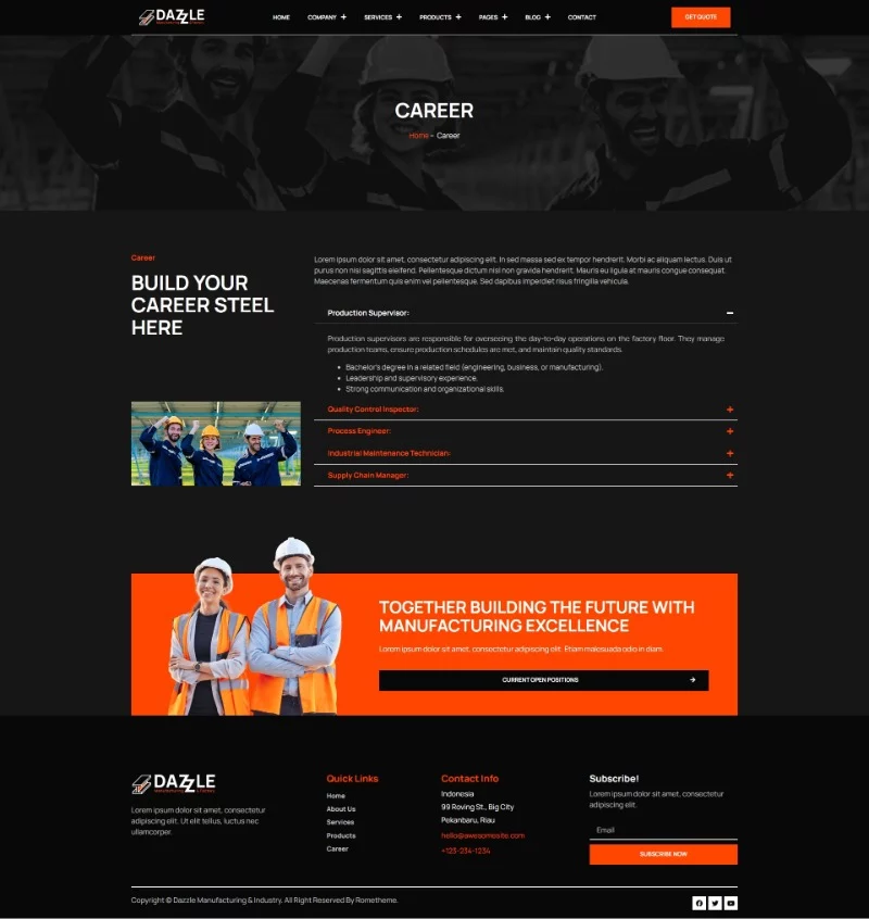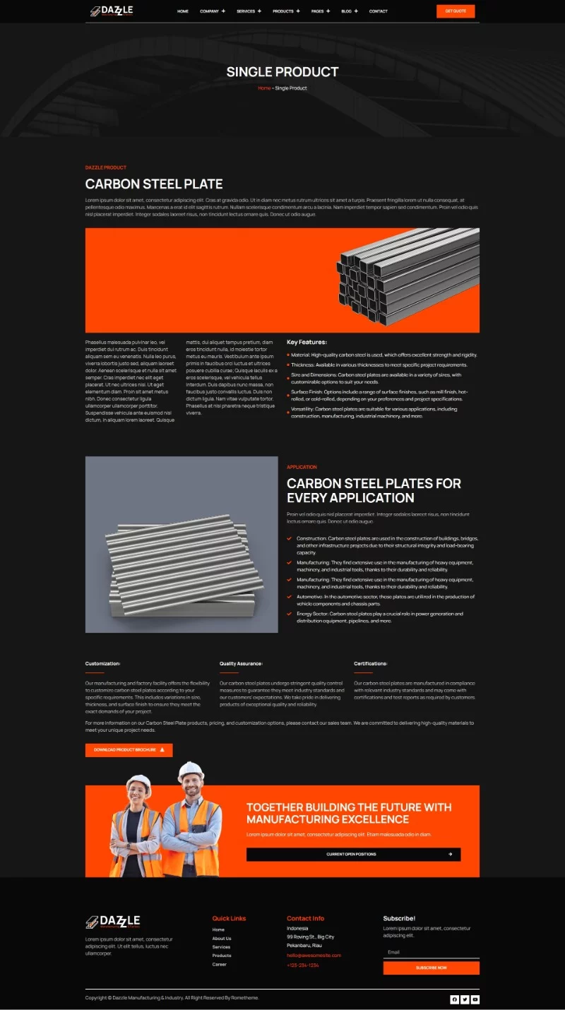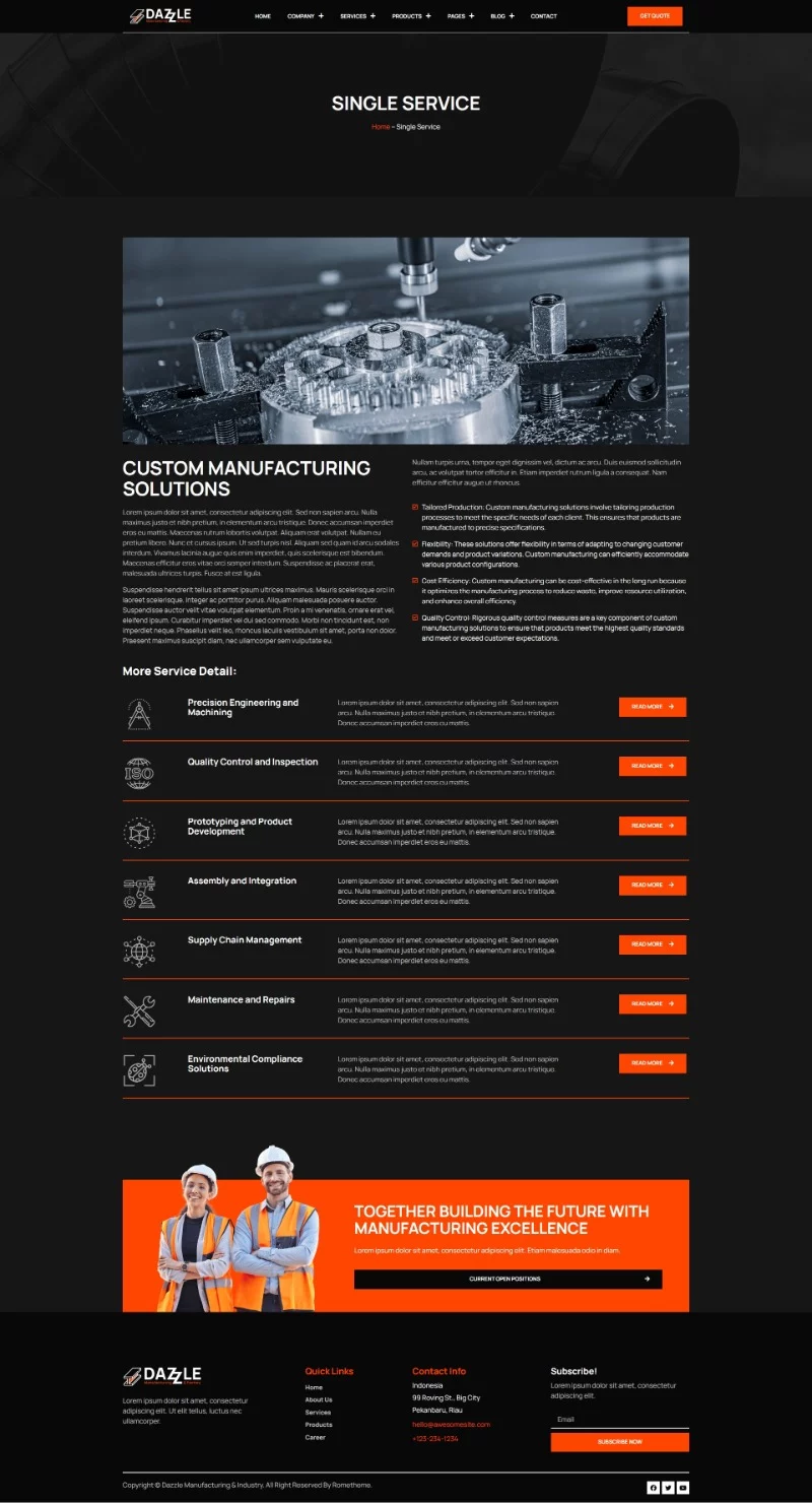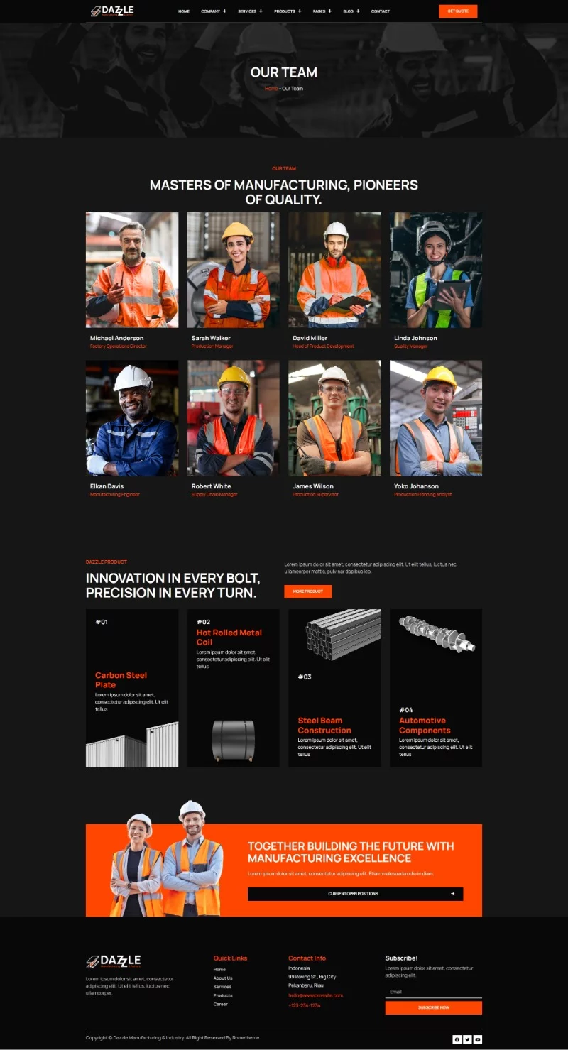 با استفاده از کیت قالب المنتور کارخانه و تولید Dazzle، میتوانید به سرعت و بهراحتی یک وبسایت حرفهای و کارآمد برای کسبوکارهای صنعتی خود ایجاد کنید.