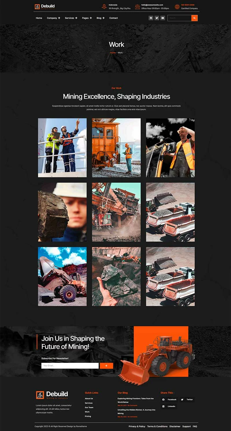 کیت قالب المنتور معدن و صنعت Debuild شامل انتخاب ایدهآلی از قالبها برای وبسایتهای معدن، صنعت، پروفایل شرکت، شرکتهای معدنی و ساخت و ساز است. این کیت دارای طراحی مدرن و منحصر به فرد با طرحبندی 100% کاملاً واکنشگرا، نصب آسان و بسیار ساده برای سفارشیسازی است، زیرا از المنتور استفاده میکند و نیازی به یک خط کدنویسی ندارد!