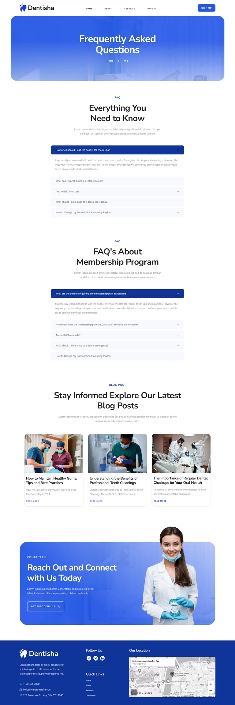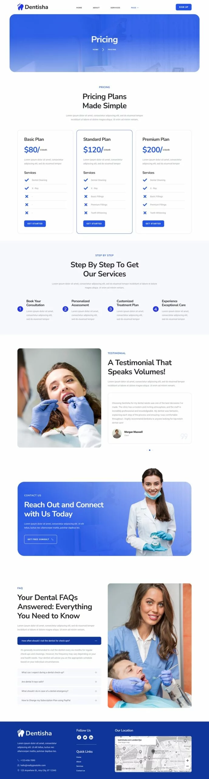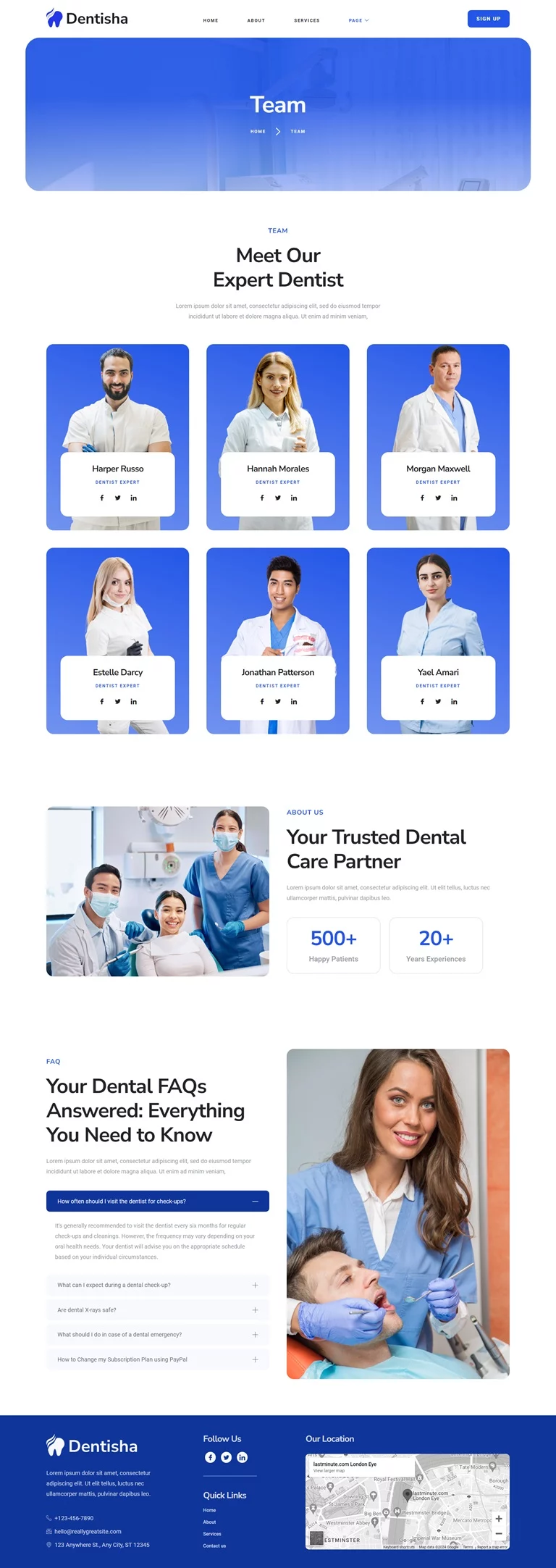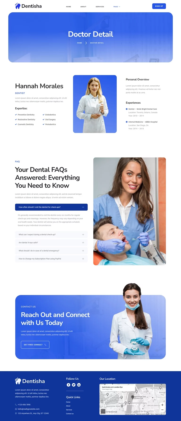 سبک کیت تم جهانی، صفحه اصلی، درباره ما، خدمات، تیم، جزئیات پزشک، قیمتگذاری، نظرات مشتریان، سوالات متداول، خطای 404، پست وبلاگ، پست تکی، تماس با ما، هدر، فوتر