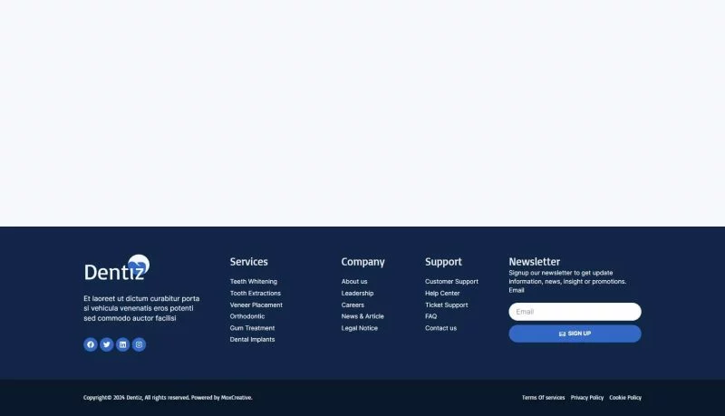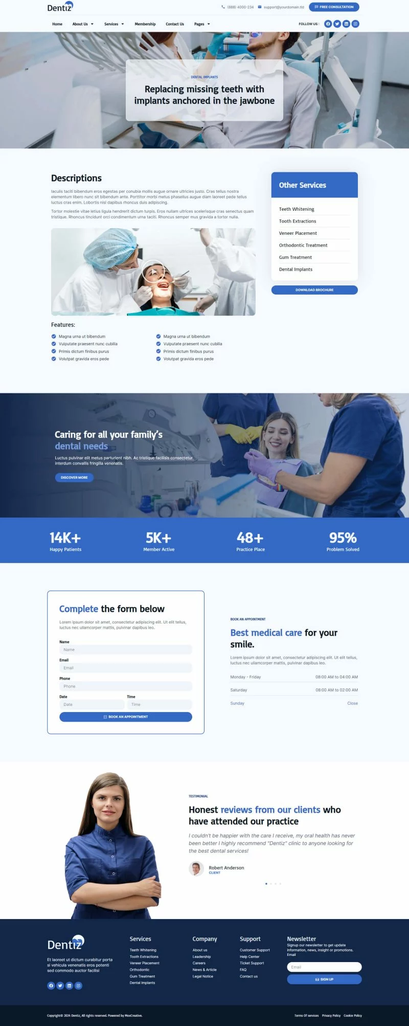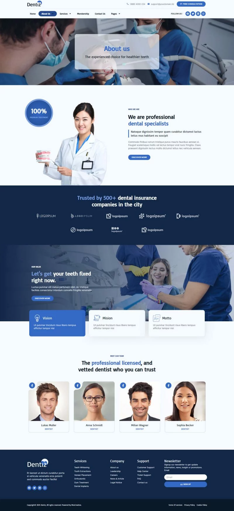 کیت قالب المنتور دندانپزشکی Dentiz شامل بیش از 12 قالب پیشساخته با طراحی مدرن و لایهبندی حرفهای است. شما میتوانید از این کیت خلاقانه برای هر نوع خدمات دندانپزشکی و پزشکی از جمله کلینیک دندانپزشکی، پزشک دندان، مراقبتهای بهداشتی، وبسایت پزشکان، وبسایت پزشکی و غیره استفاده کنید.