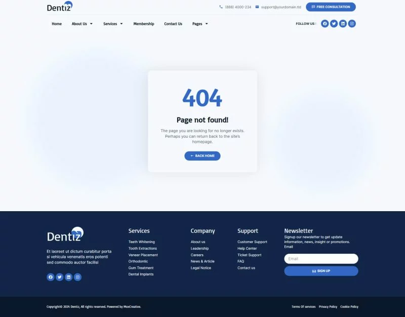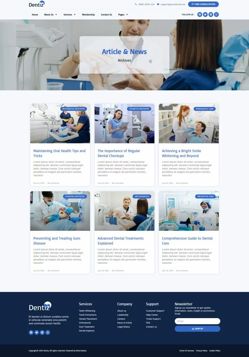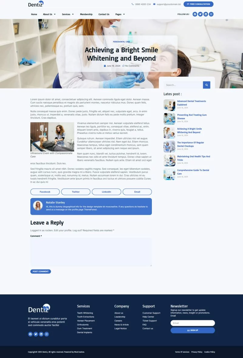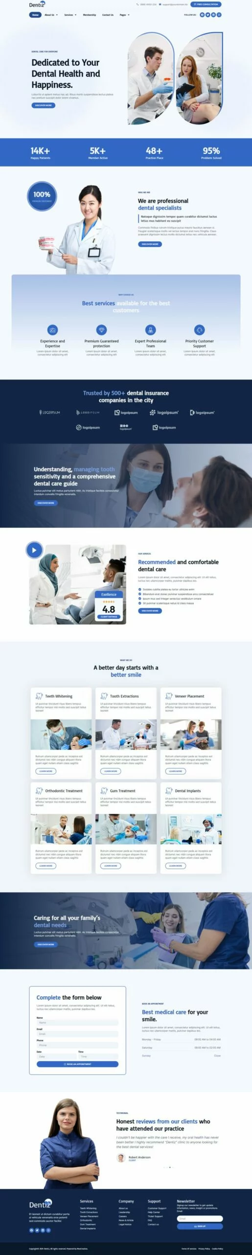 با استفاده از کیت قالب المنتور دندانپزشکی Dentiz، وقت خود را برای ساخت وبسایت خدمات دندانپزشکی و مراقبت دندان ذخیره کنید. با استفاده از سازنده صفحات Elementor، میتوانید به راحتی آن را ویرایش یا سفارشیسازی کنید، بدون نیاز به کدنویسی، فقط با کشیدن و رها کردن.