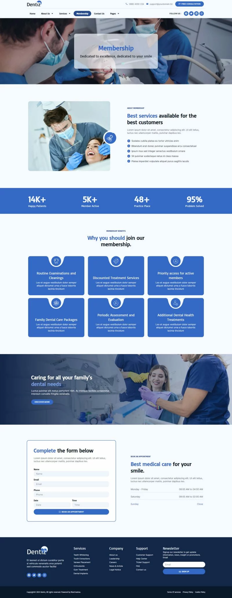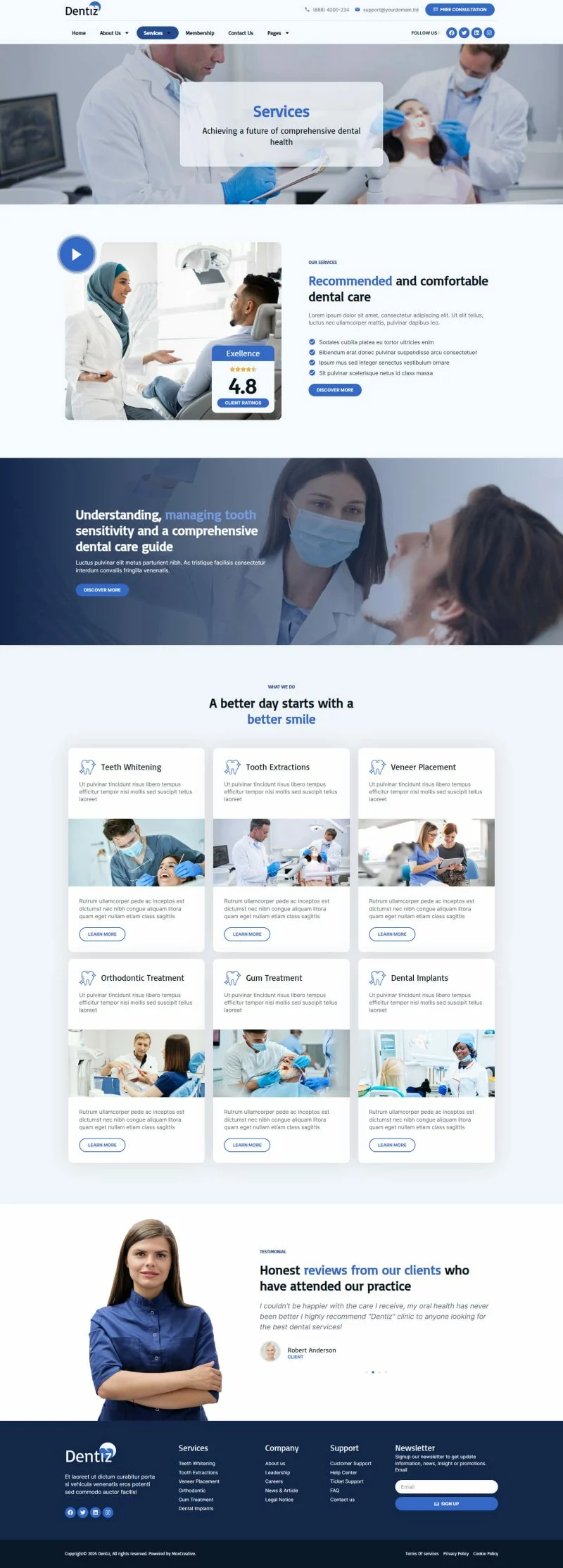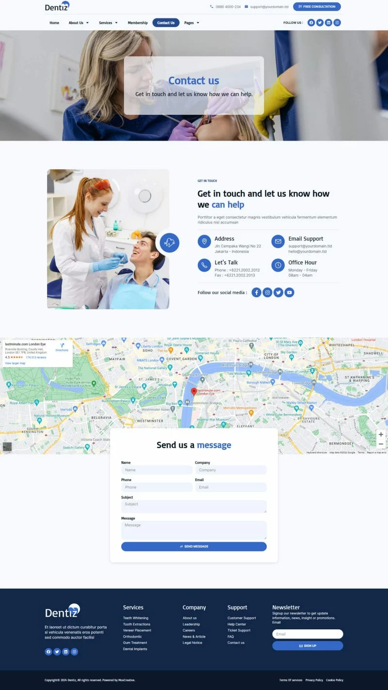 با استفاده از کیت قالب المنتور دندانپزشکی Dentiz، وقت خود را برای ساخت وبسایت خدمات دندانپزشکی و مراقبت دندان ذخیره کنید. با استفاده از سازنده صفحات Elementor، میتوانید به راحتی آن را ویرایش یا سفارشیسازی کنید، بدون نیاز به کدنویسی، فقط با کشیدن و رها کردن.