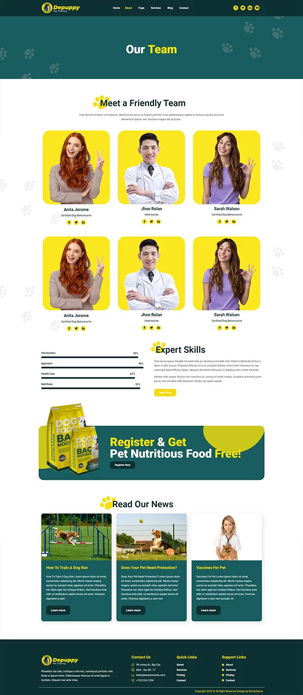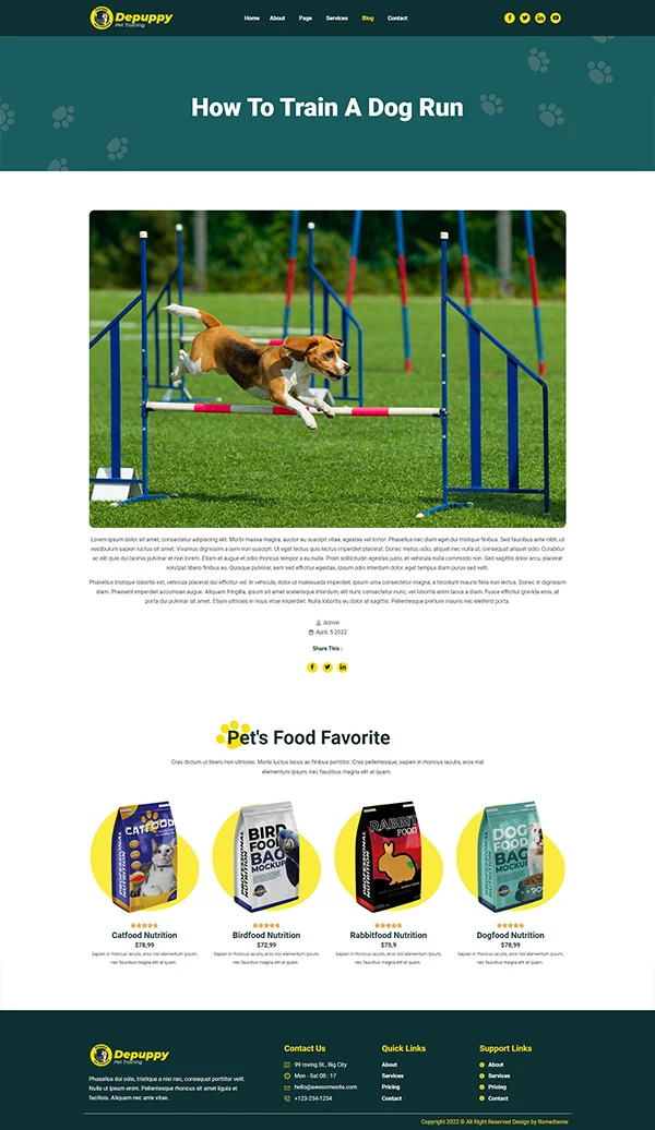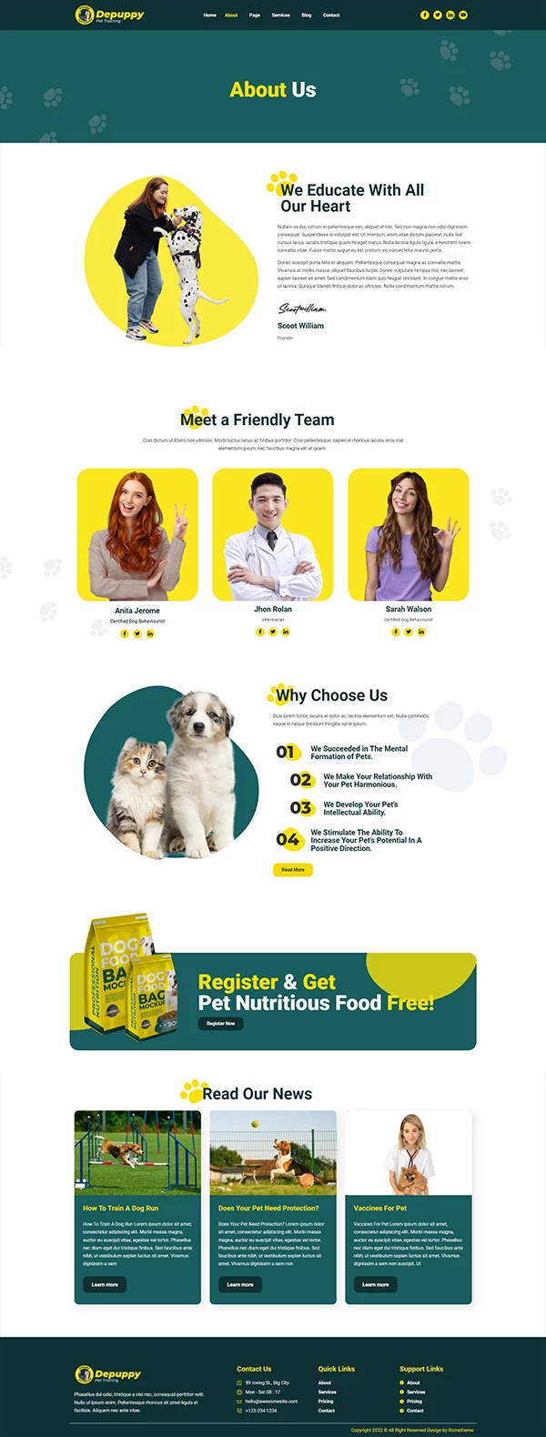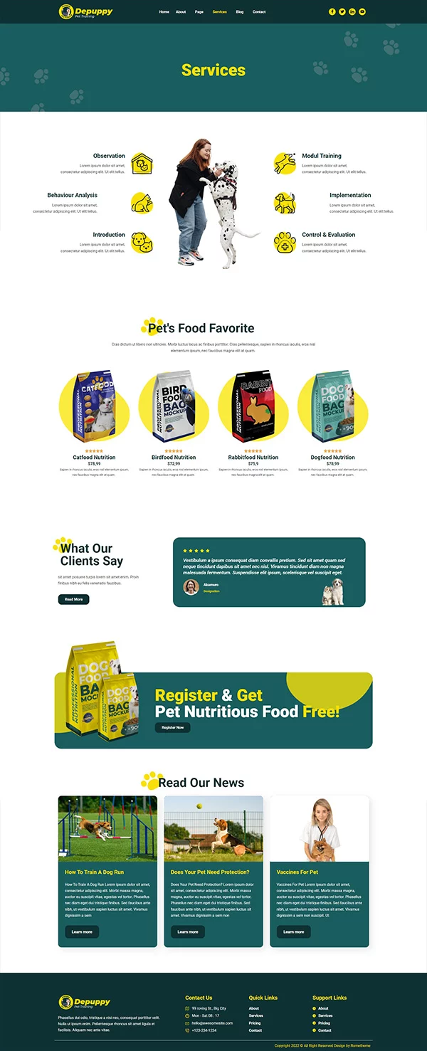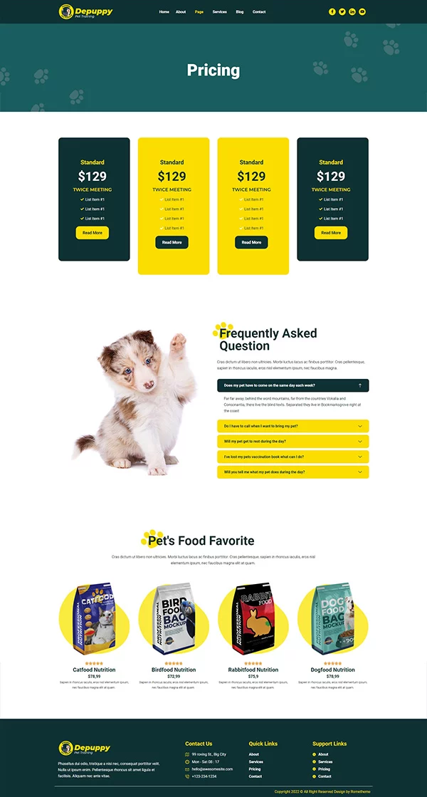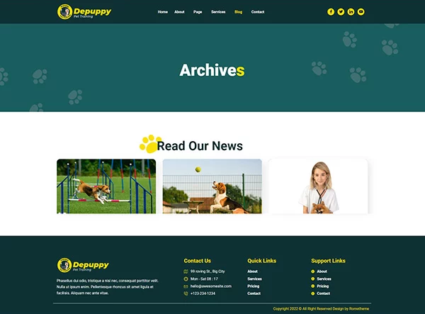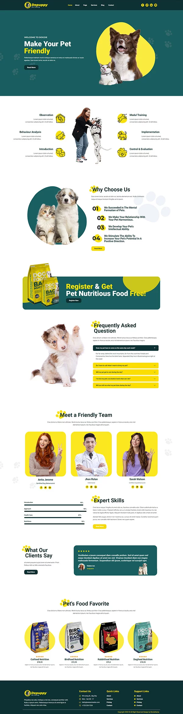 “کیت قالب المنتور حیوانات خانگی Depuppy” یک کیت قدرتمند و واکنشگرا برای آموزش حیوانات خانگی، مدارس حیوانات خانگی، فروشگاه حیوانات خانگی، مراقبت از حیوانات و دامپزشکی است. “کیت قالب المنتور حیوانات خانگی Depuppy” به شکلی زیبا، مدرن و شیک طراحی شده است که در عرض چند دقیقه میتوانید یک سایت خلاق و واکنشگرا کاملاً مطابق با نیازهای آموزش حیوانات خانگی خود ایجاد کنید. استفاده از این قالب بسیار آسان است. تنها کاری که باید انجام دهید این است که عکس و عنوان مورد نظر خود را تغییر دهید. فقط همین!