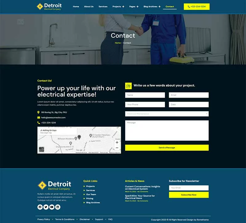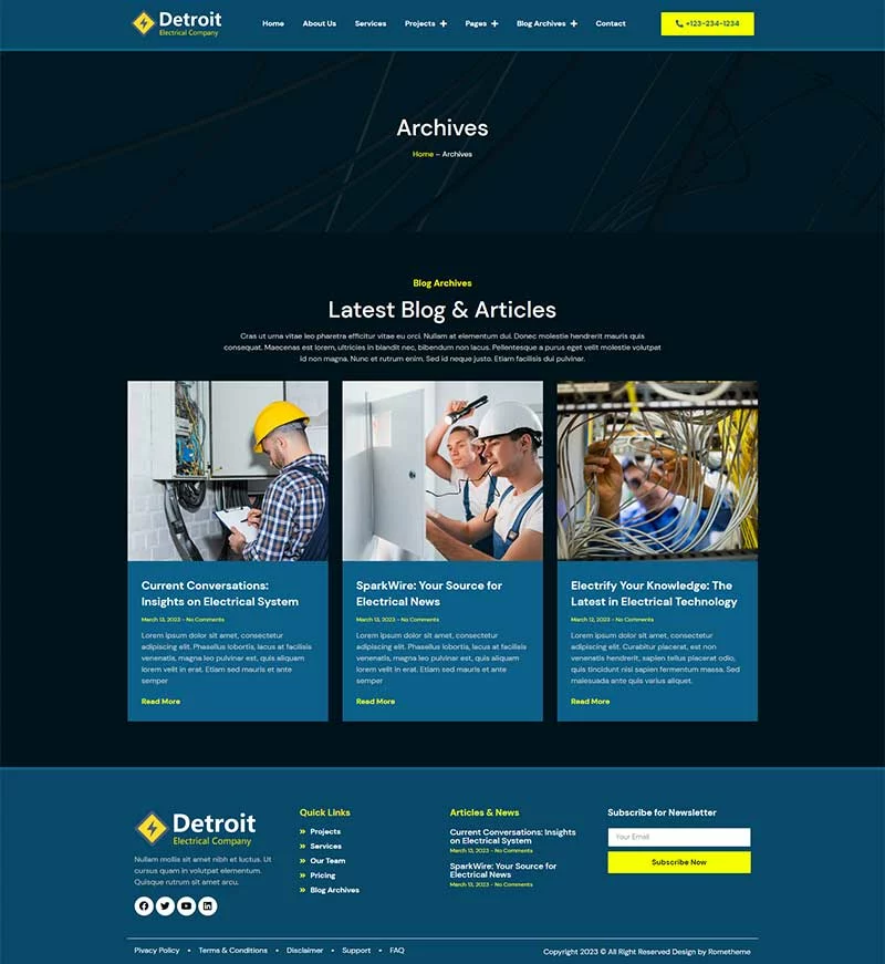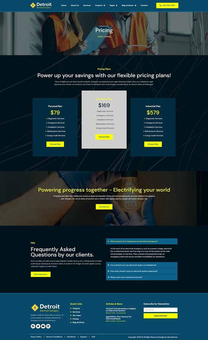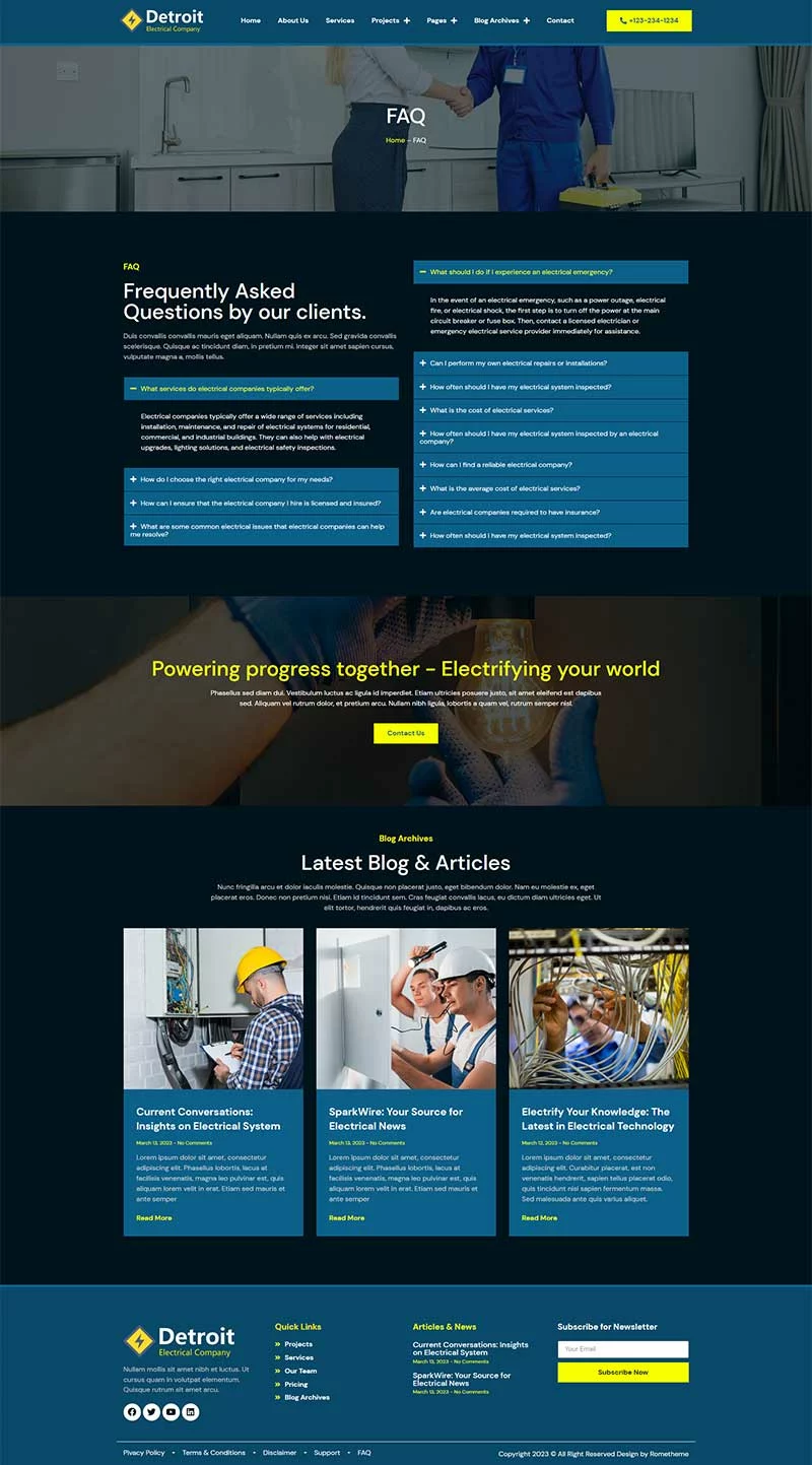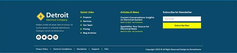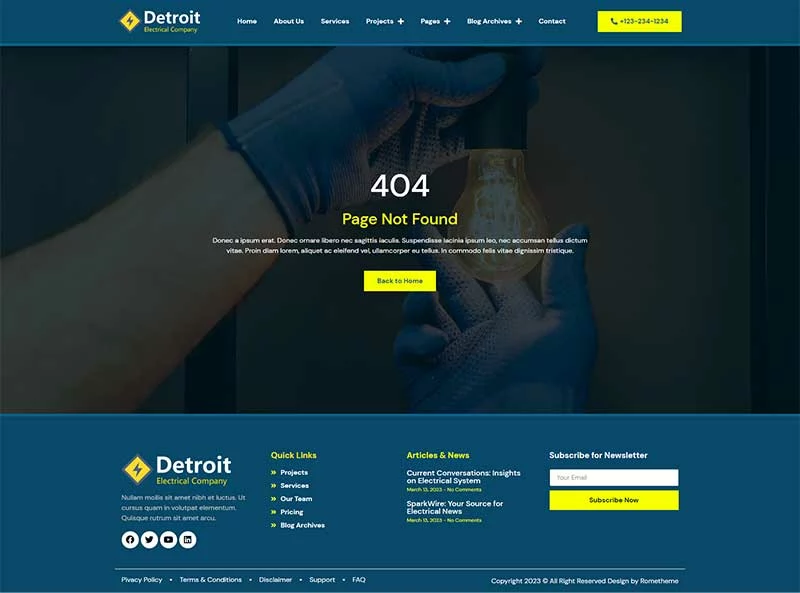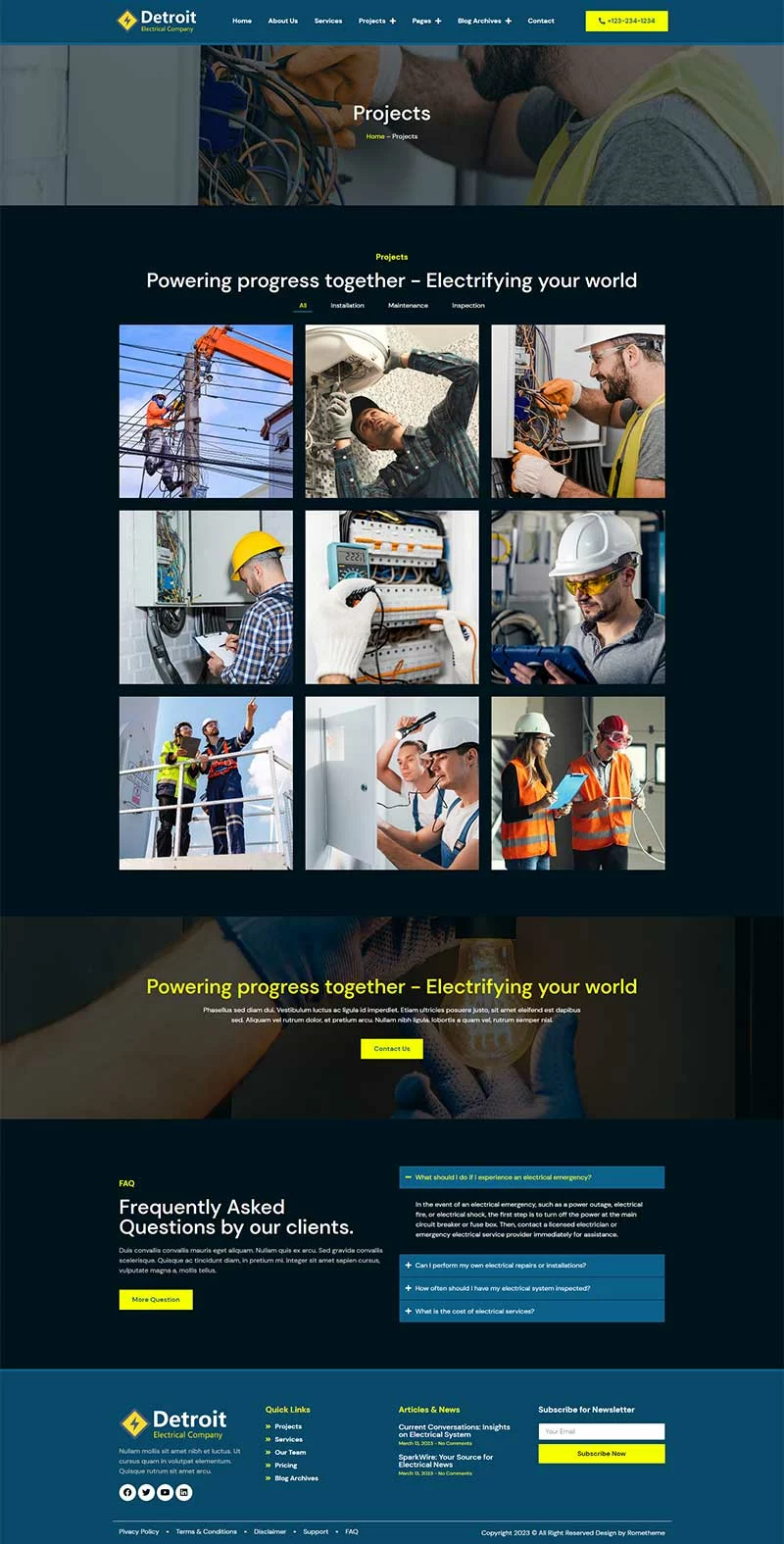 با استفاده از کیت قالب المنتور شرکت خدمات برق Detroit، میتوانید به سرعت و آسانی یک وبسایت حرفهای برای خود ایجاد کنید. این کیت تمامی ابزارهای لازم برای نمایش خدمات، پروژهها، تیم ما و ارتباط با ما را در اختیار شما قرار میدهد. با قابلیت سفارشیسازی آسان و بدون نیاز به کدنویسی، Detroit انتخابی عالی برای ایجاد یک حضور آنلاین برجسته و حرفهای برای کسبوکار شما است.