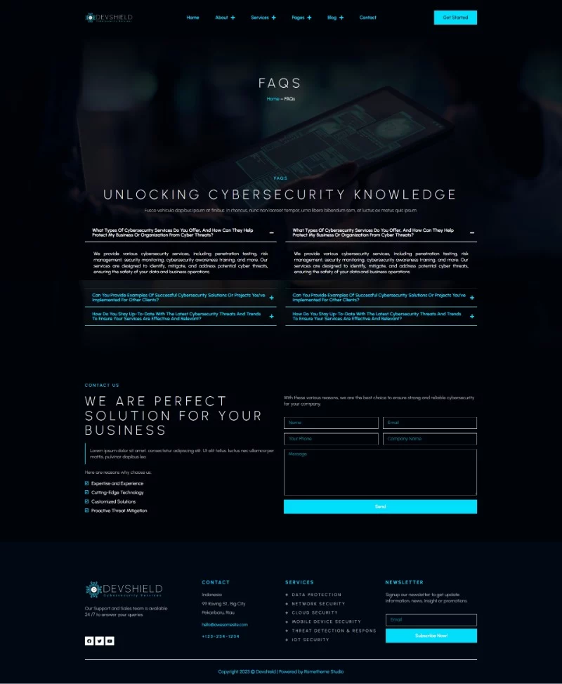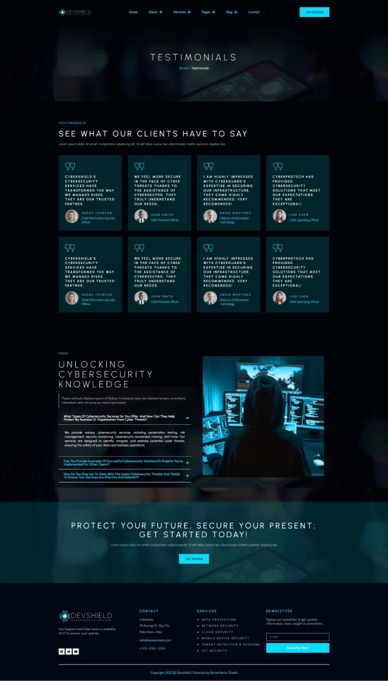 کیت قالب المنتور خدمات امنیت سایبری Devshield دارای مجموعهای ایدهآل از قالبها برای شرکت یا ارائهدهندگان فردی خدمات امنیت سایبری، مشاوره امنیت دیجیتال، آژانس امنیت سایبری، تطابق ریسک و امنیت IT یا هر کسبوکار مرتبط دیگر است.