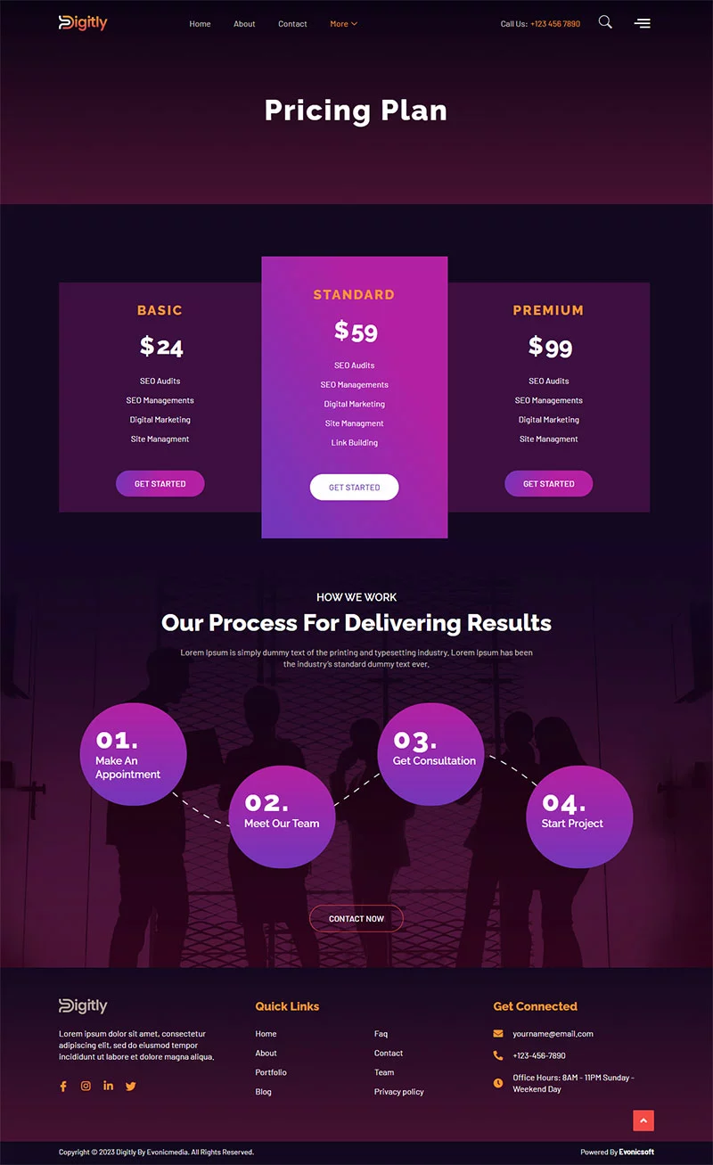 یک وبسایت مدرن و جذاب برای شرکت خود با کیت قالب المنتور آژانس خدمات دیجیتال Digitly ایجاد کنید. کیت قالب المنتور آژانس خدمات دیجیتال Digitly شما را قادر میسازد تا یک وبسایت خیرهکننده بسازید که تخصص شما در توسعه وب، راهحلهای نرمافزاری، بازاریابی دیجیتال و مشاوره IT را به نمایش بگذارد. با طراحیهای جذاب، ناوبری روان و محتوای جذاب، مخاطبان خود را جذب کنید.