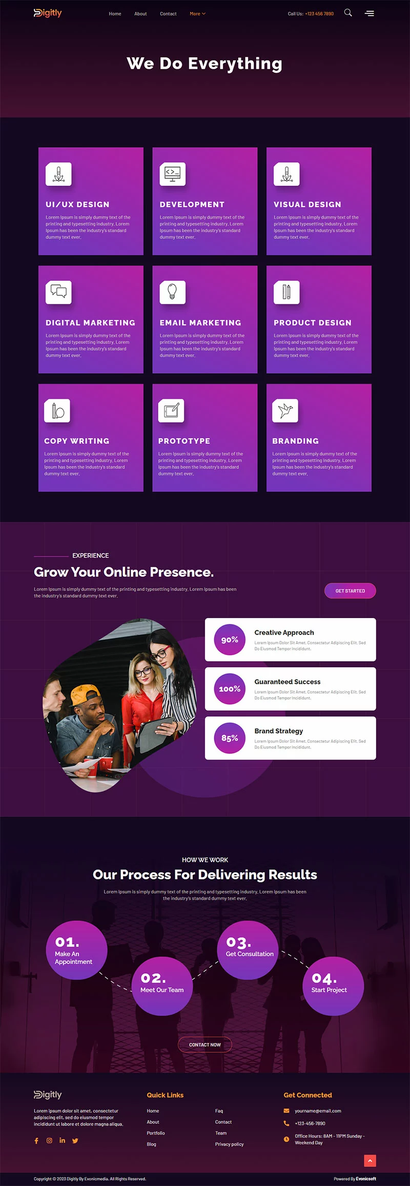 توضیحات بیشتر درباره کیت قالب المنتور آژانس خدمات دیجیتال Digitly